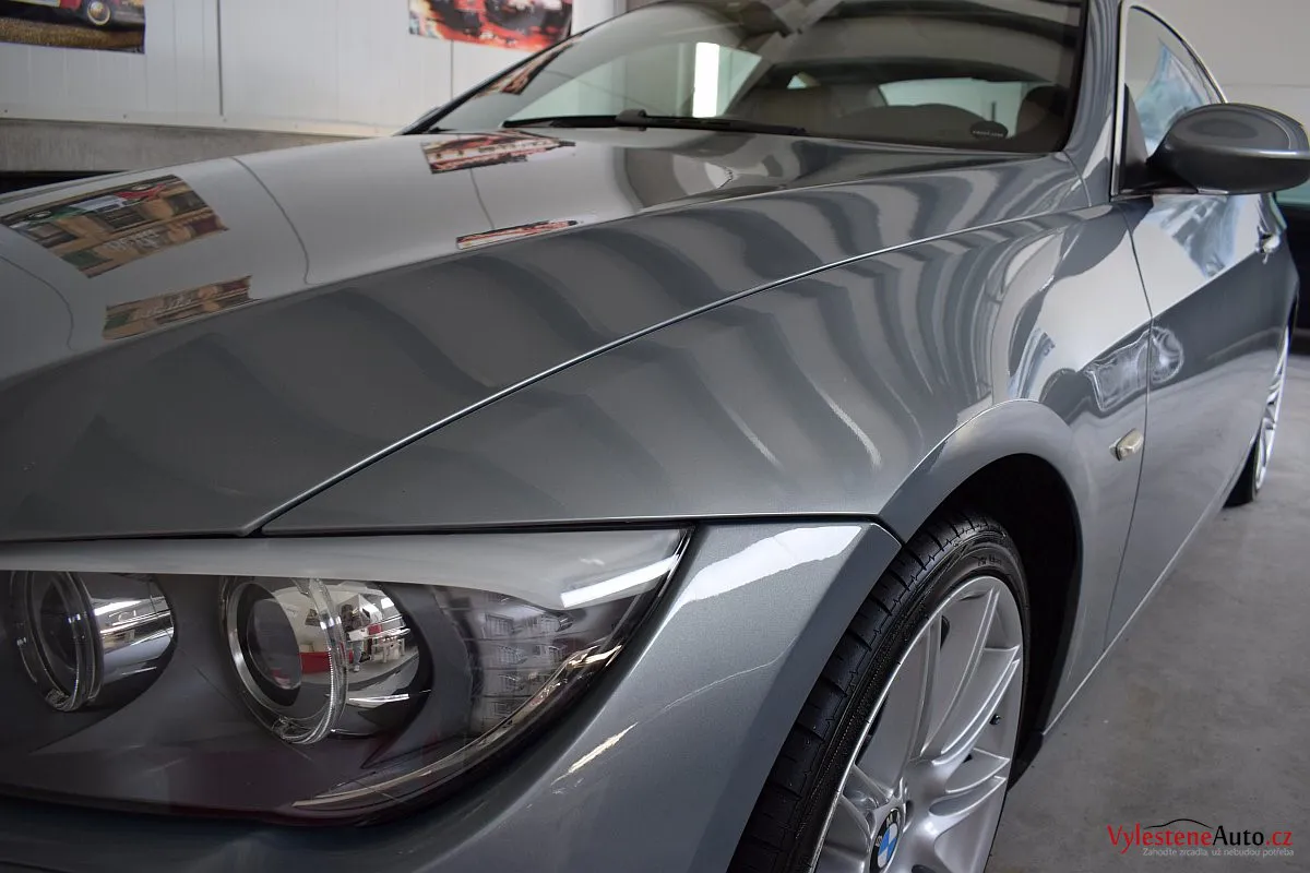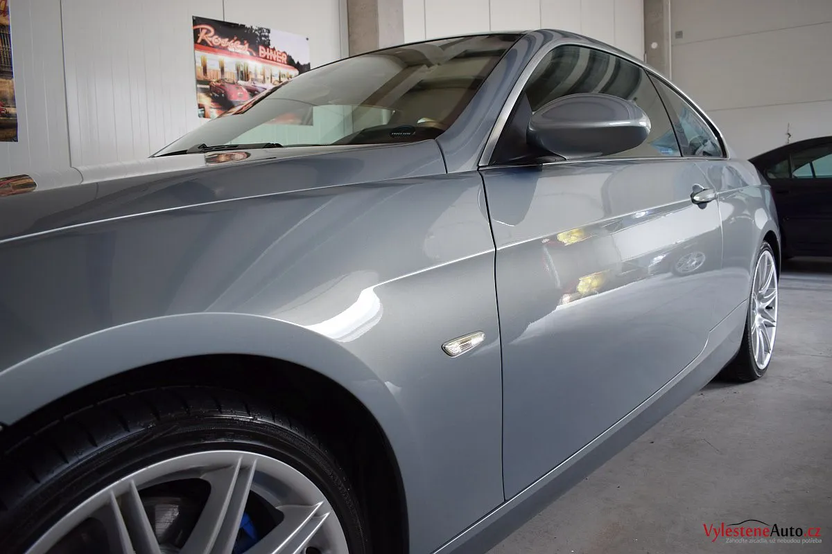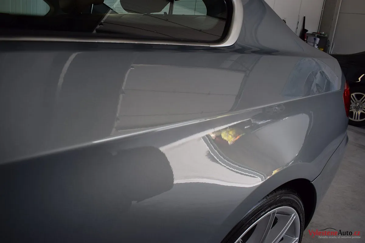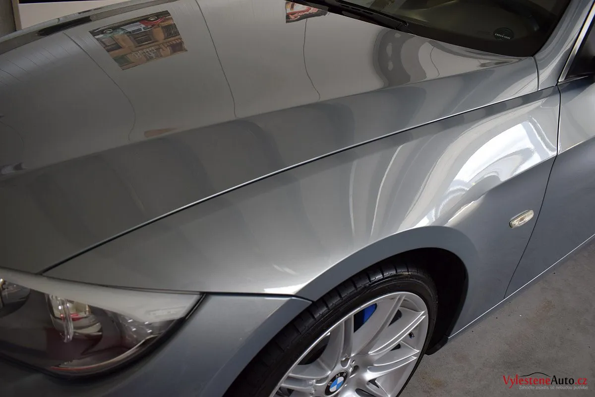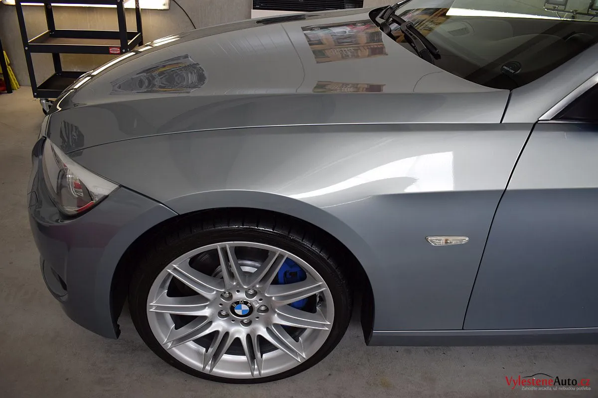 BMW 335i biturbo, nalakované jemnou modrou metalízou, si k nám přijelo pro renovaci laku, špičkovou dvouvrstvou nanokeramiku Gtechniq, kompletní péči o interiér, lakování předního nárazníku a vytažení důlků v levém zadním boku metodou PDR.