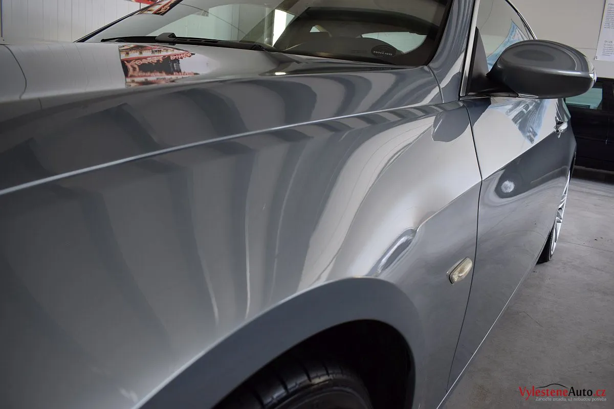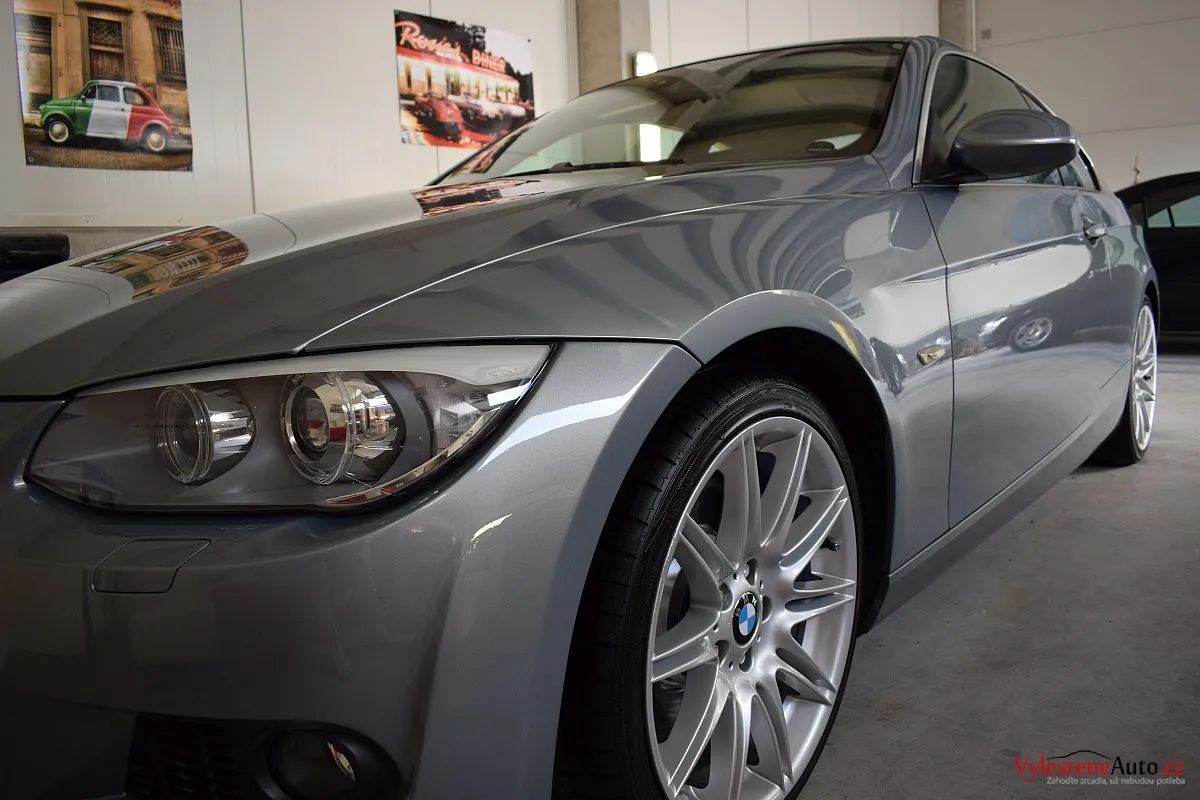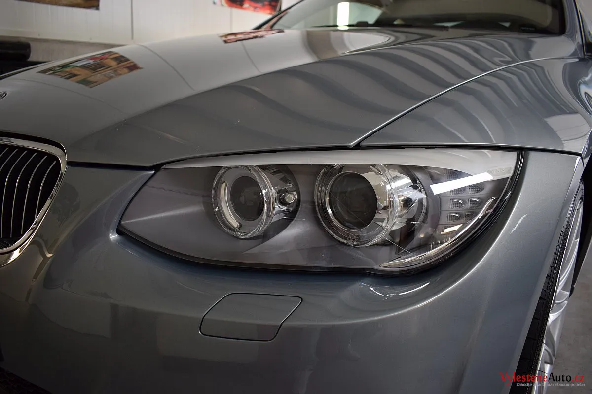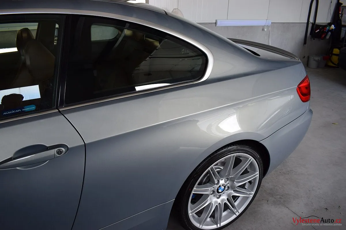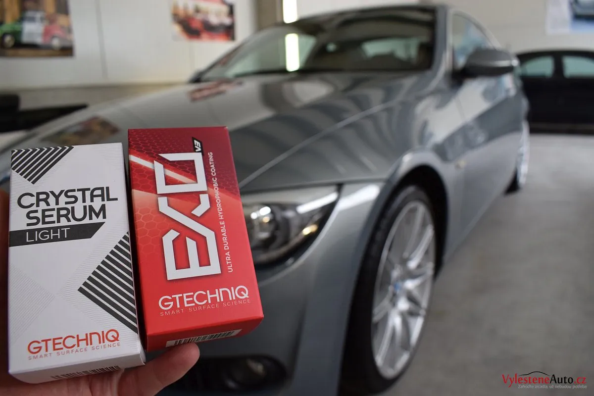 BMW 335i biturbo, nalakované jemnou modrou metalízou, si k nám přijelo pro renovaci laku, špičkovou dvouvrstvou nanokeramiku Gtechniq, kompletní péči o interiér, lakování předního nárazníku a vytažení důlků v levém zadním boku metodou PDR.
