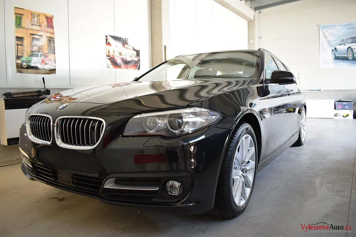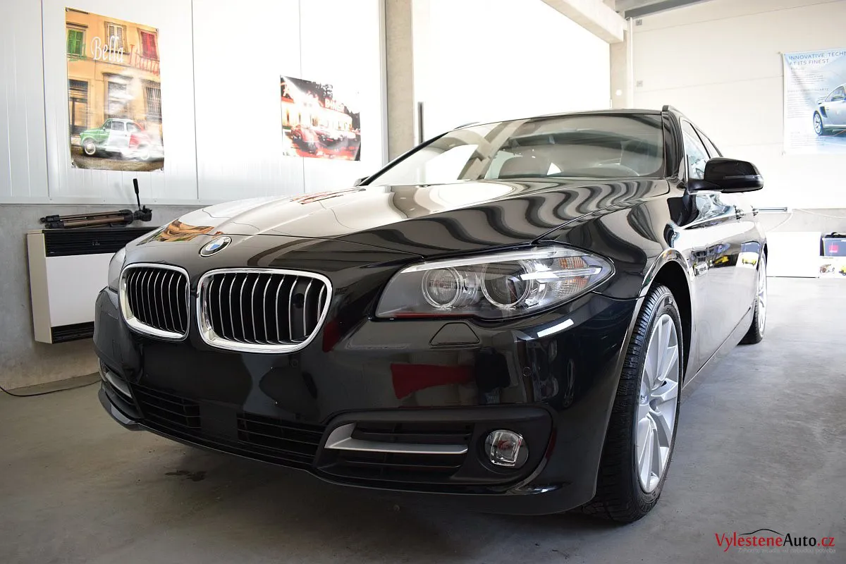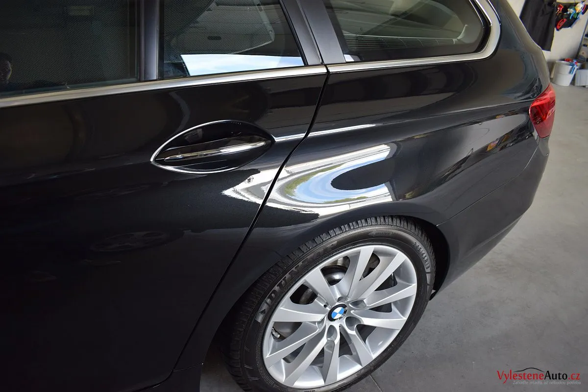 Krásné a sofistikovanými technologiemi nabité BMW 530d kombi s pohonem všech kol a osmistupňovým automatem ZF. K nám si přijelo pro základní renovaci laku a nanokeramickou ochranu špičkovými coatingy od Gtechniq.