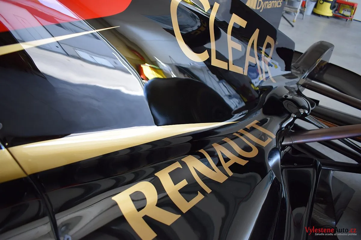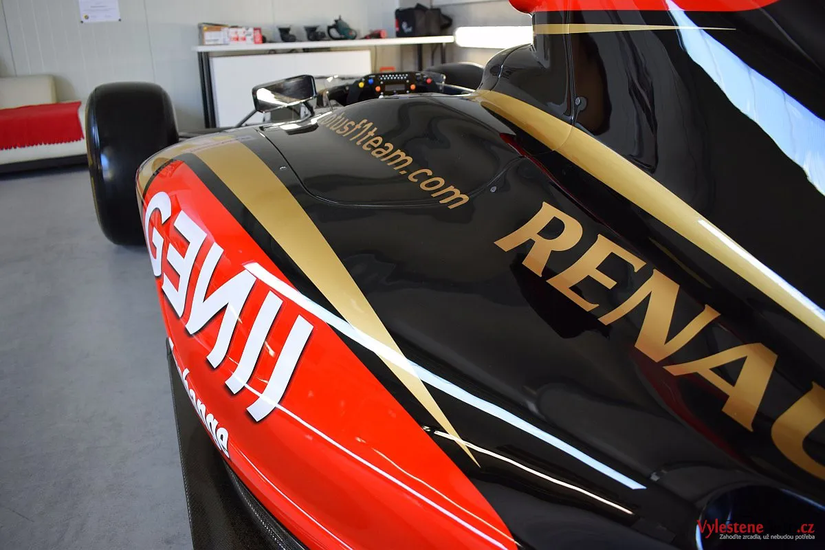 Skvostná Formule 1 Lotus Renault GP (R31) nalakovaná okouzlující kombinací černé a zlaté barvy v designu John Player Special. U obou barev se jedná o nesmírně kvalitní lakování navíc s perletí.