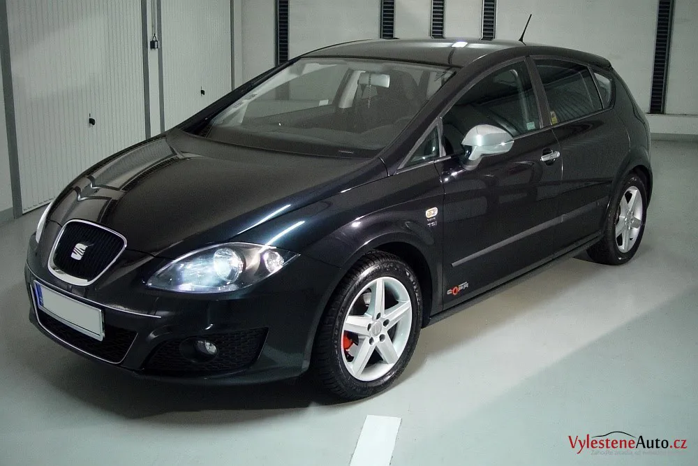 Nádherný a opečovávaný Seat Leon s benzinovým šestnáctiventilem, v černé perleťové metalíze a mnoha doplňky z verze Cupra. Parádní jsou dvojitá koncovka výfuku, originální litá kola a do C sloupků ukryté kliky zadních dveří. Elegantní dravec navržený Walterem de Silvou - bývalým šéfdesignérem Alfy Romeo.
