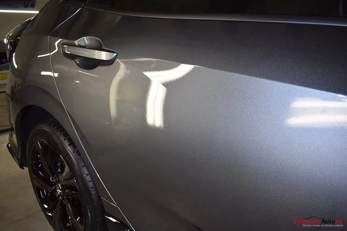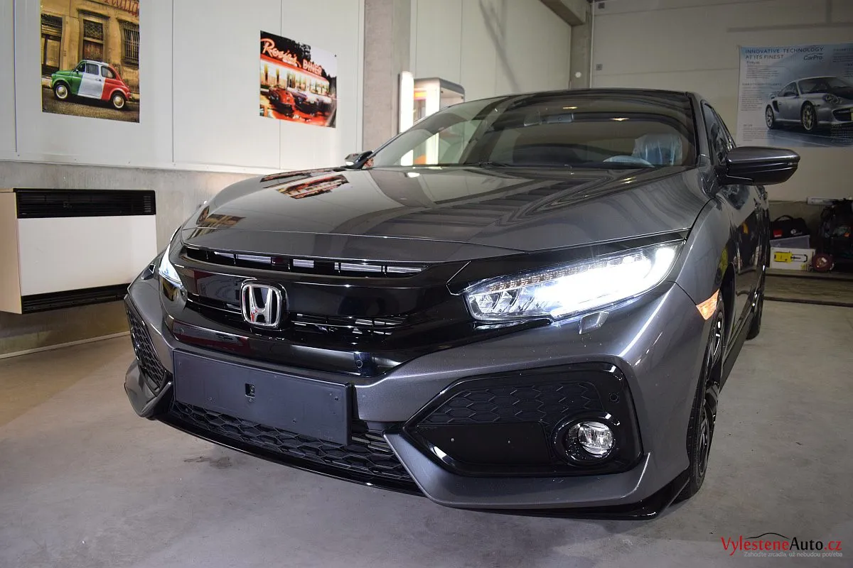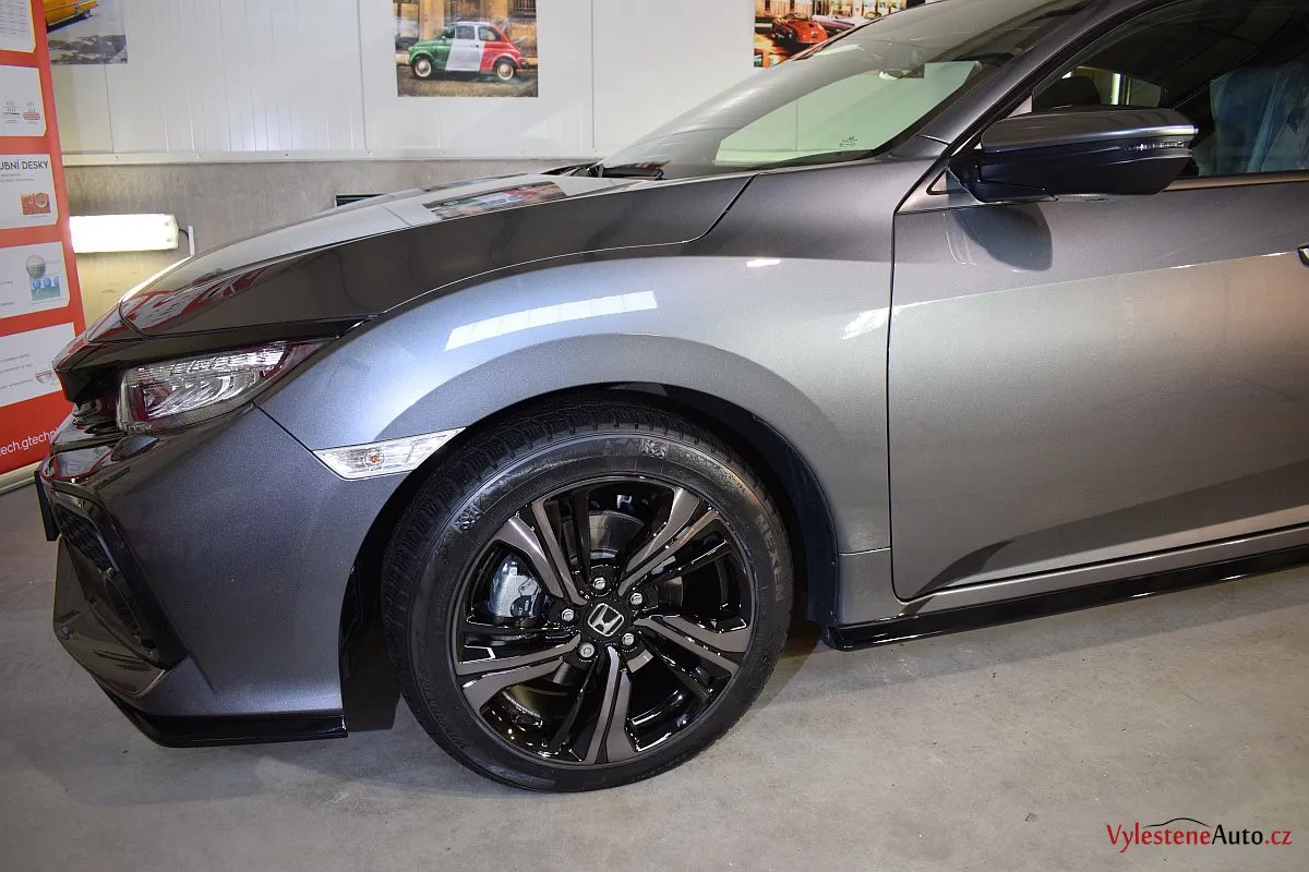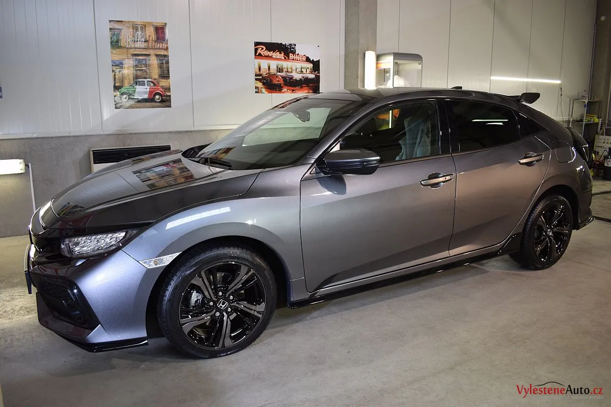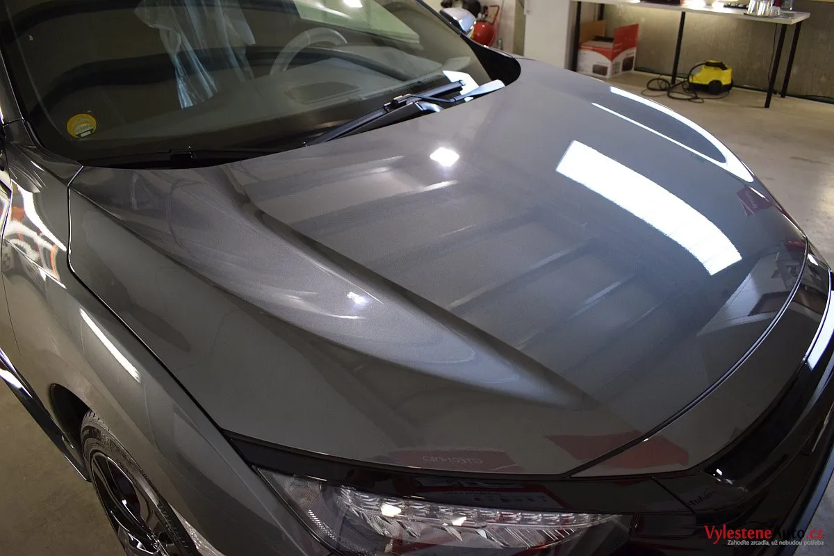 Honda Civic Turbo, poháněná benzinovým turbomotorem a nalakovaná nenápadnou šedou metalízou. K nám si přijela pro renovaci laku a ochranu špičkovým nano voskem od Gtechniq s výdrží až 8 měsíců. Použili jsme rovnou 5 vrstev.