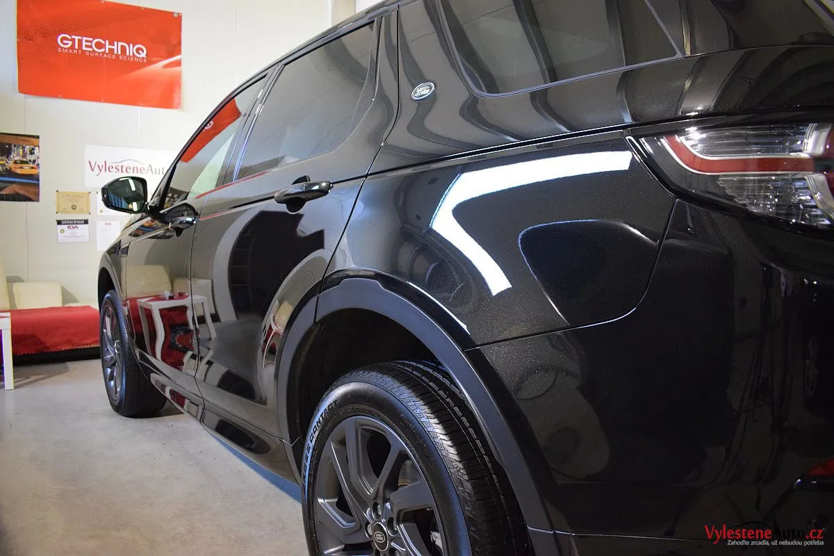 Nádherný Land Rover Discovery Sport, nalakovaný černým perleťovým lakem, se u nás zastavil pro vícekrokovou renovaci laku a komplexní nanokeramickou ochranu karoserie od Gtechniq. Příštích 5 let tak zůstane v perfektním stavu.