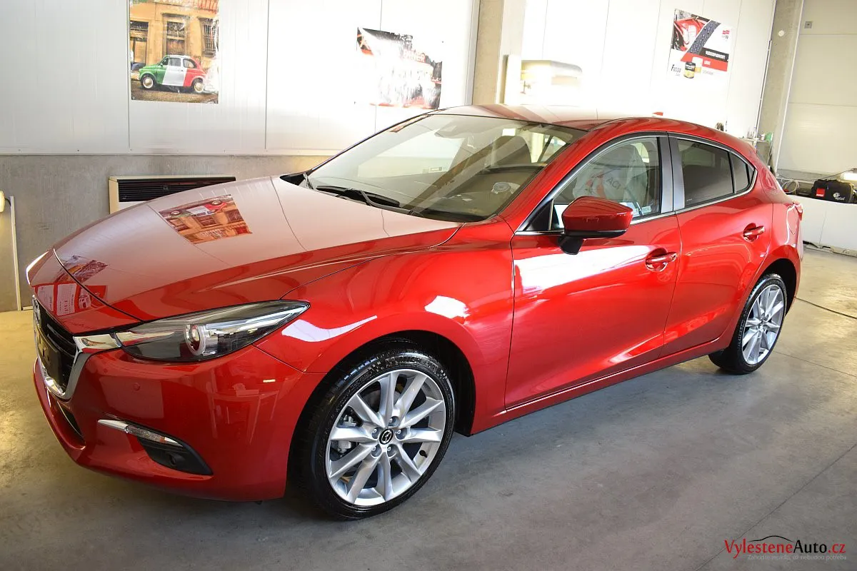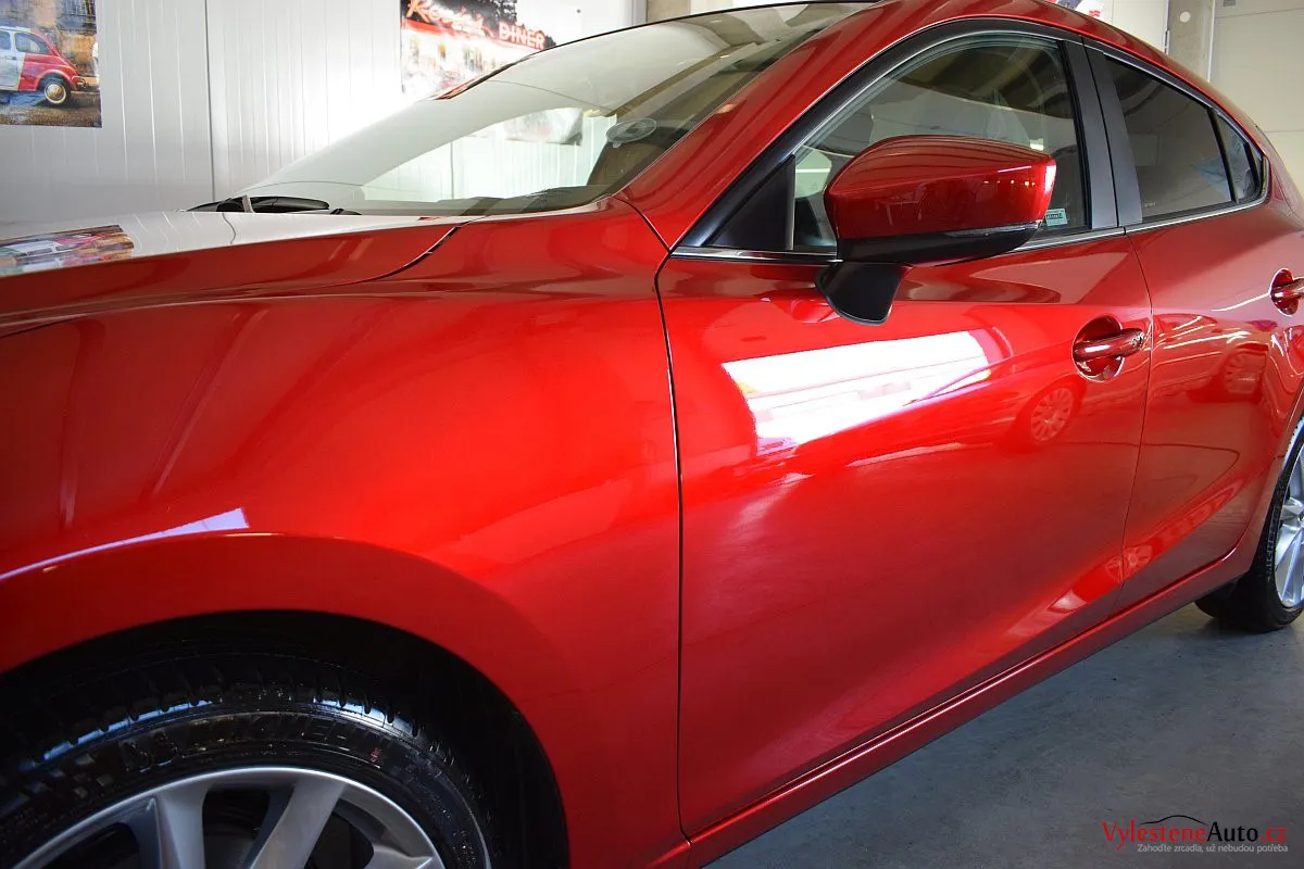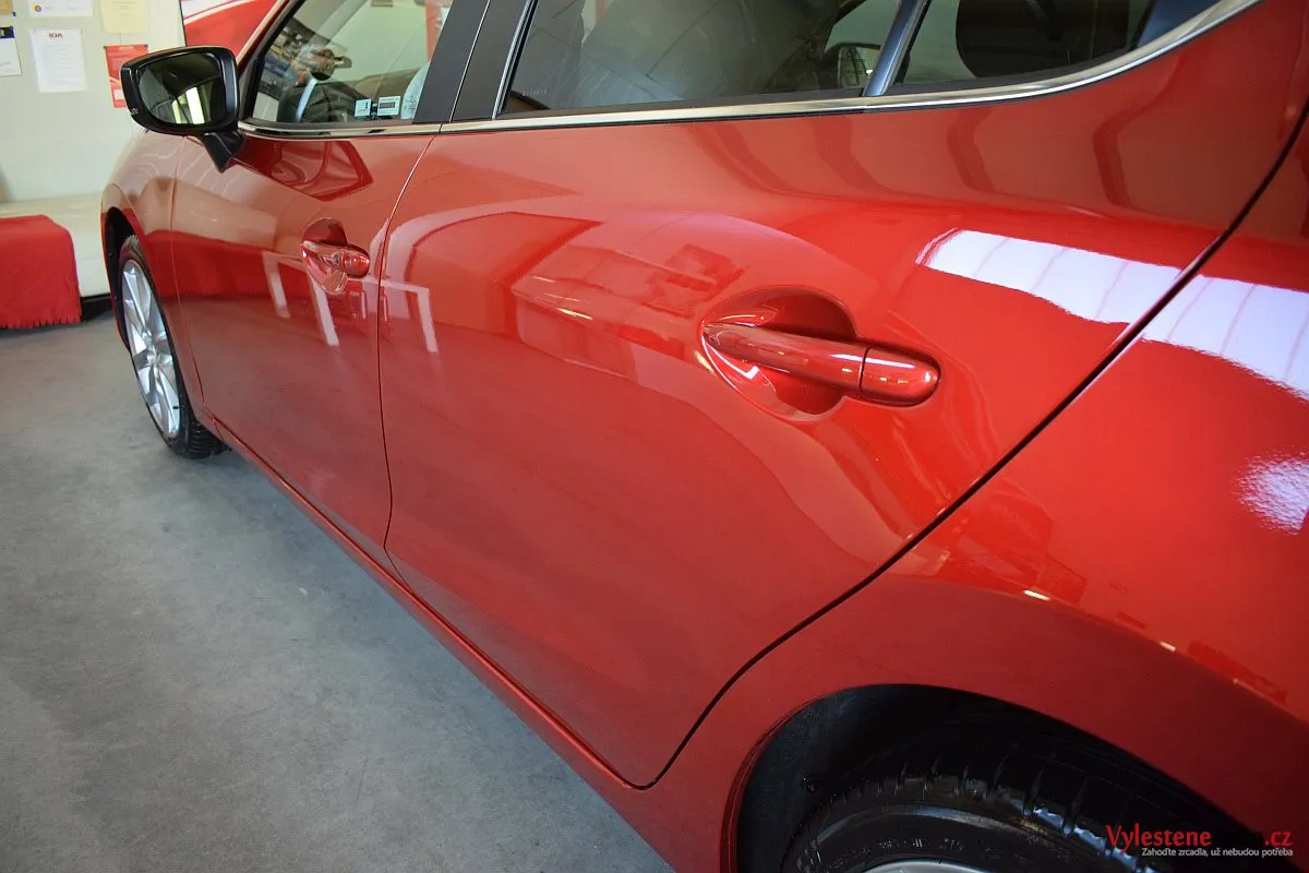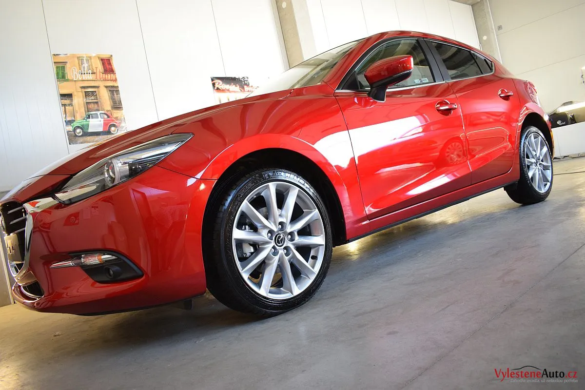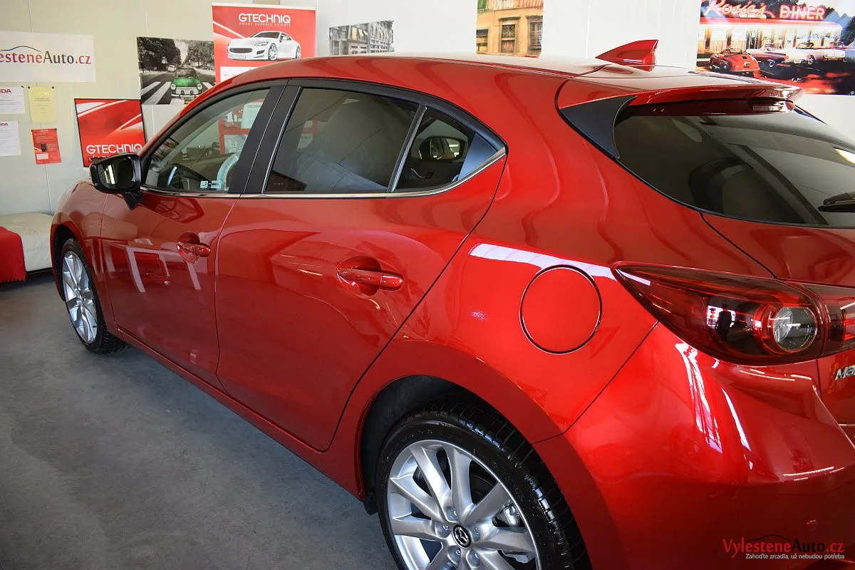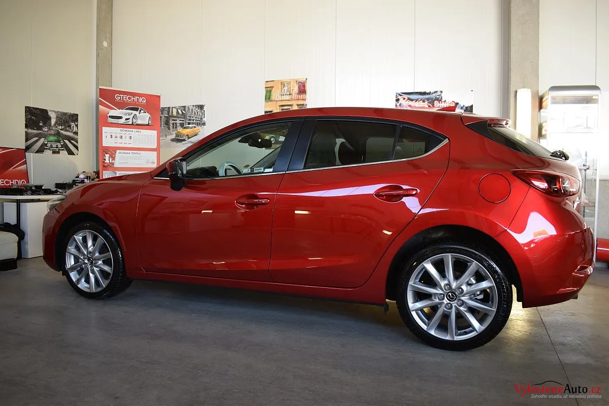 Krásná Mazda 3, poháněná vymazleným motorem Skyactive a nalakovaná krásnou červenou metalízou si k nám přijela pro renovaci a nanokeramickou ochranu laku s výdrží až 5 let od Gtechniq. Nanokeramika si našla cestu také na litá kola, kryt motoru, kryty světlometů, všechna skla, zrcátka i koncovky výfuku.