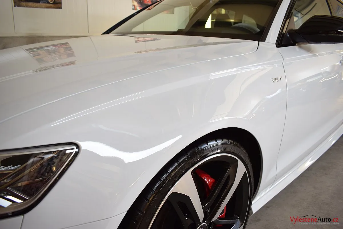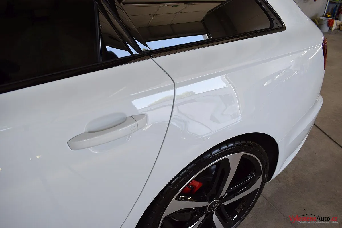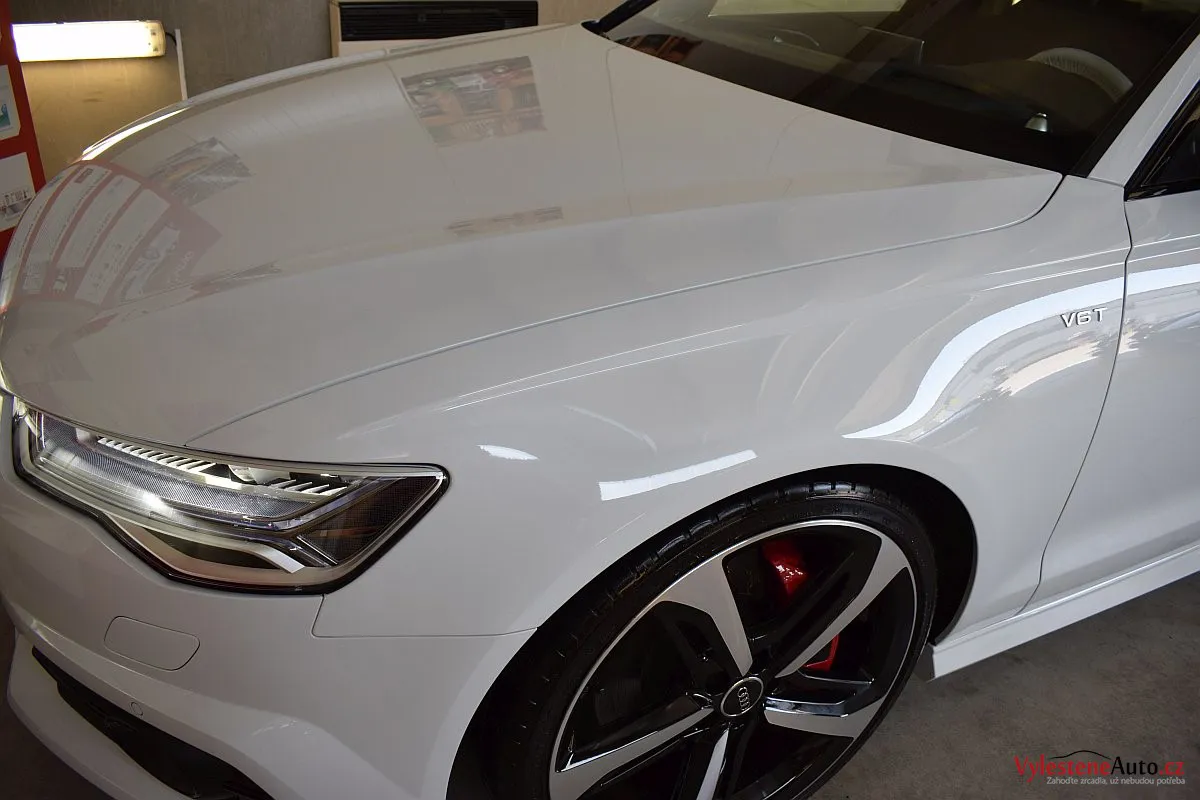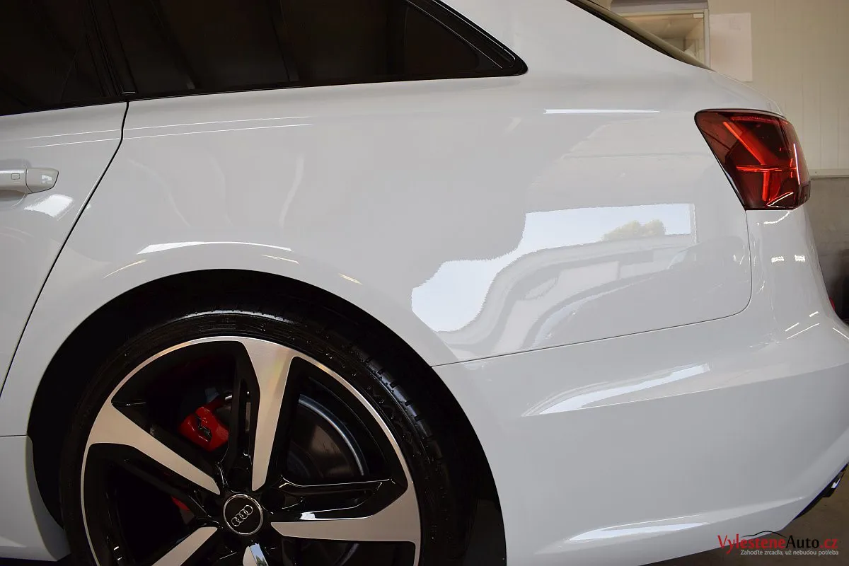 Nádherně postavené kombi Audi A6 s motorem V6T, nalakované bílou perletí. K nám si přijelo pro vícekrokovou renovaci a kvalitní nanokeramickou ochranu laku od Gtechniq s výdrží až 5 let. Kromě karoserie jsme ošetřili také dvě sady litých kol, zádveří, všechna skla a zrcátka, koncovky výfuku, motor, vnitřní stranu kapoty, víčko nádrže, klíček a všechny plastové díly.