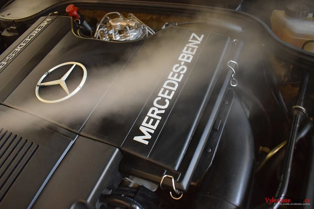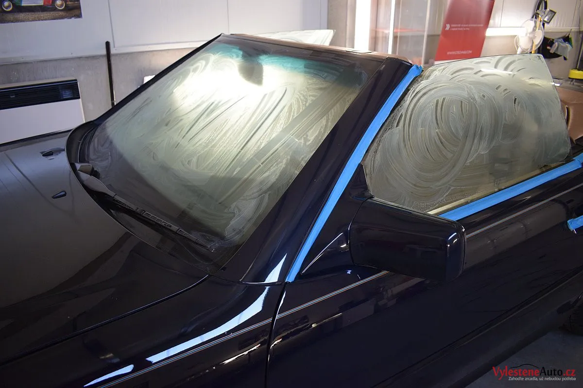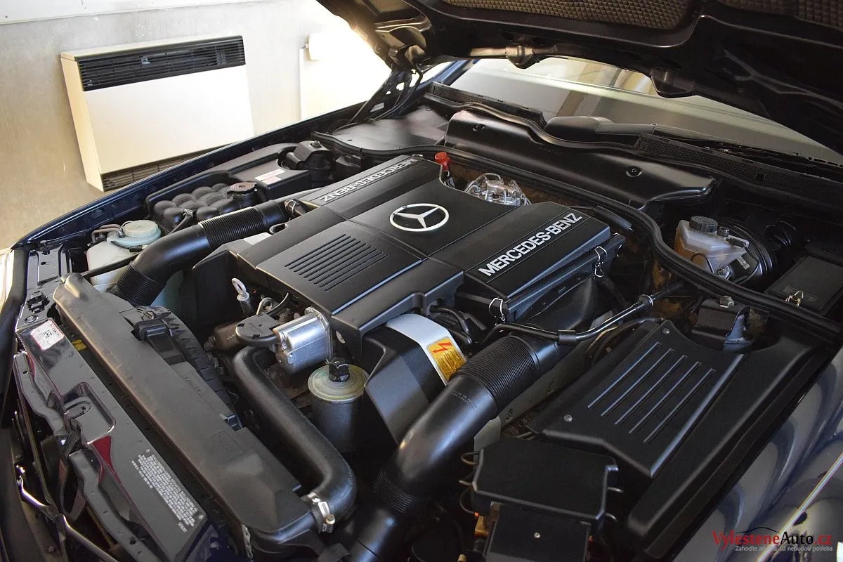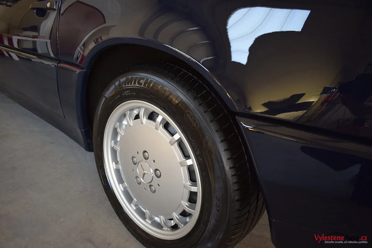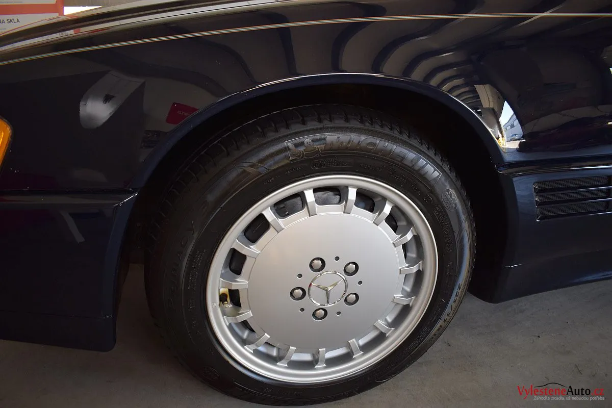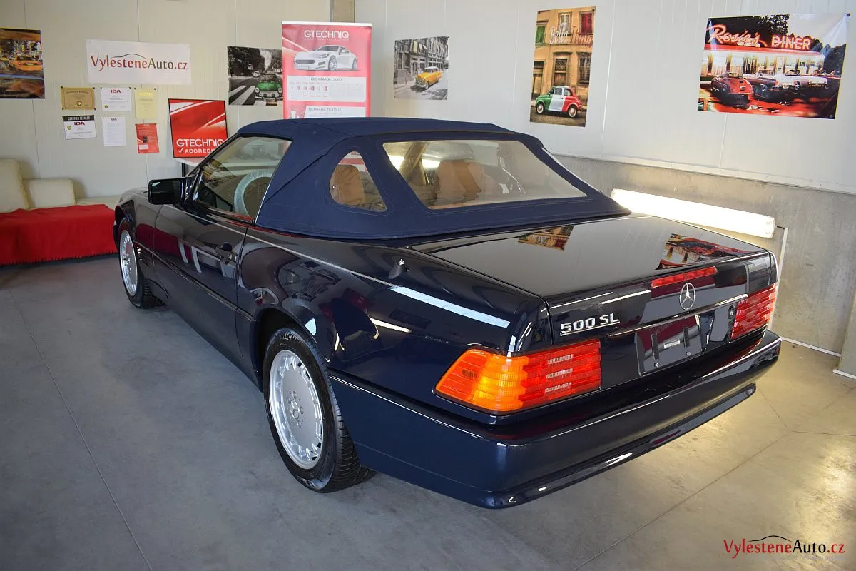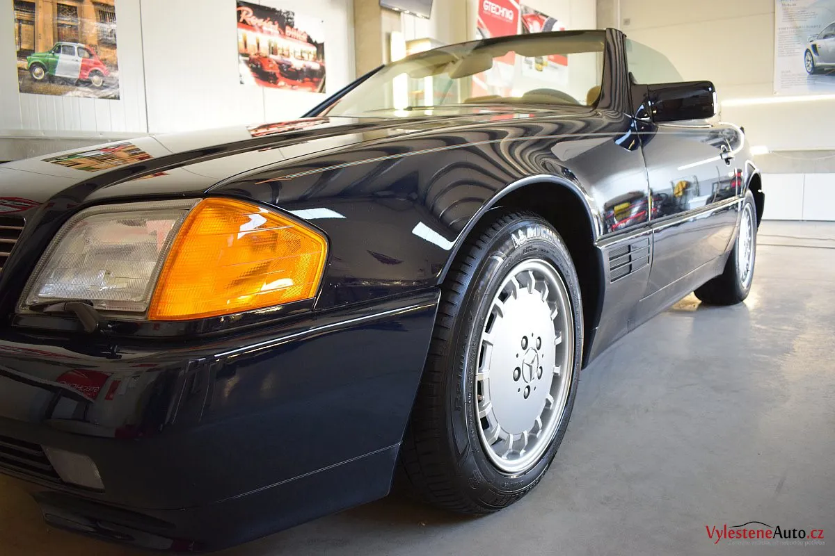 V dnešní době už klasik - nádherný Mercedes 500 SL, nalakovaný nemetalickou modrou barvou, vyšperkovaný světlým koženým interiérem a v tehdejší době ještě úžasnou plátěnou střechou. Pod kapotou se skrývá plnotučný osmiválec o obsahu 5 litrů - tedy dost na 5 moderních "eko" pohonných jednotek. K nám si přijel pro vícekrokovou renovaci a ochranu laku.