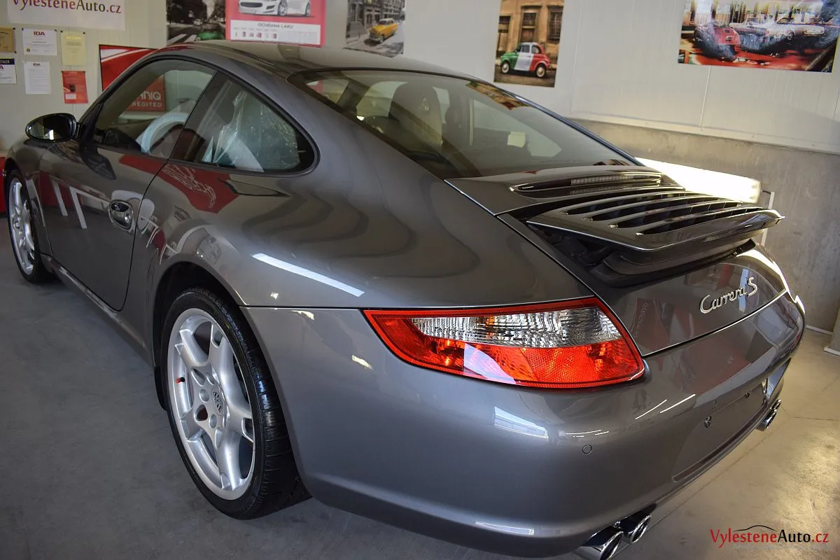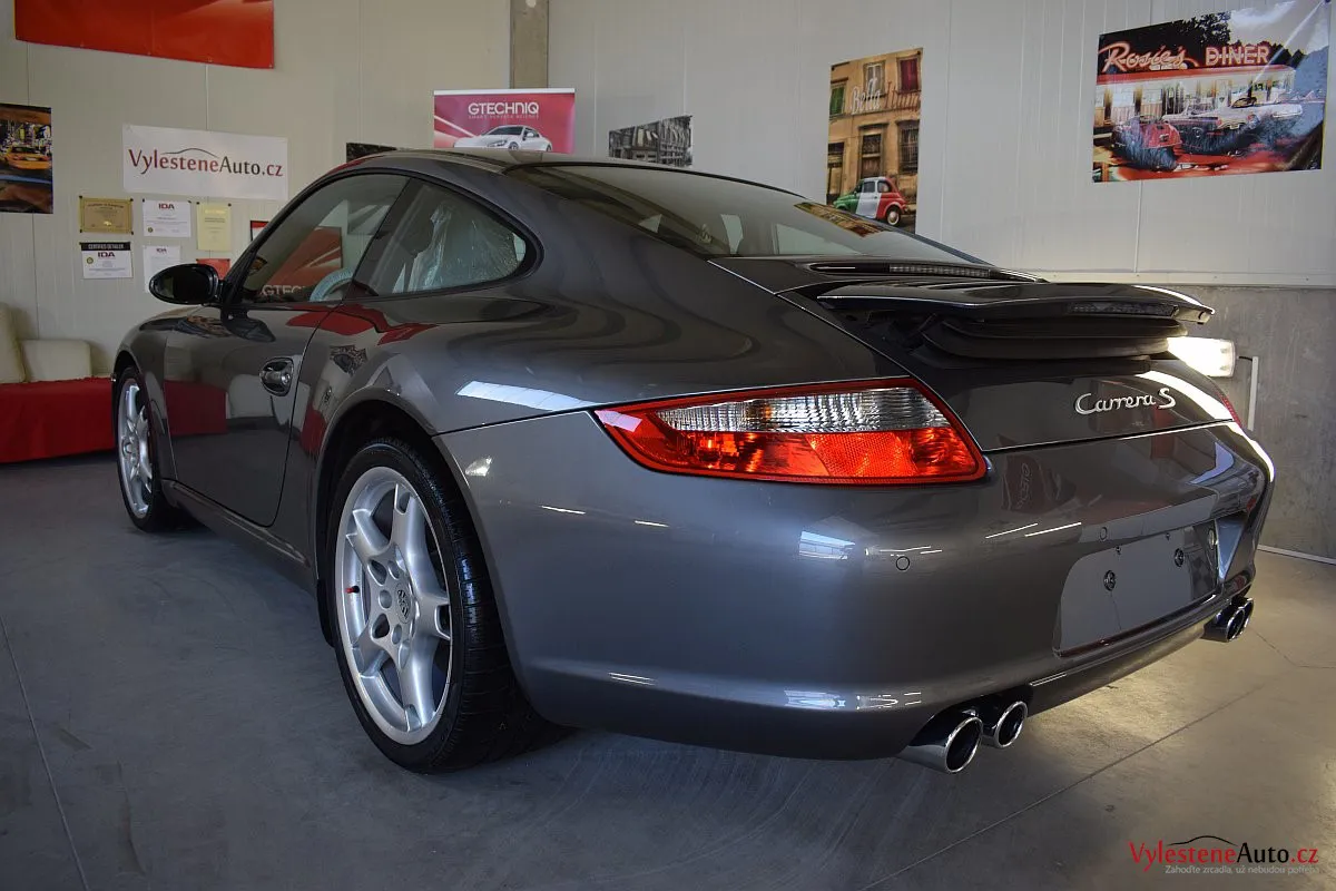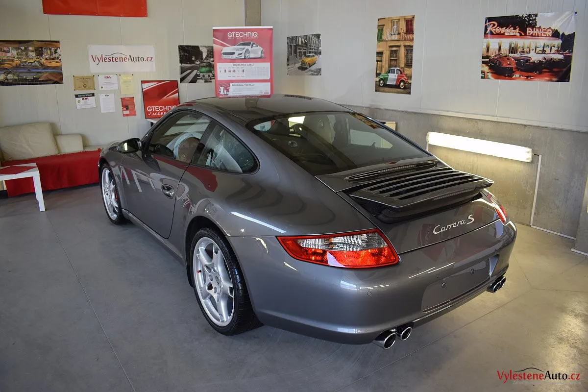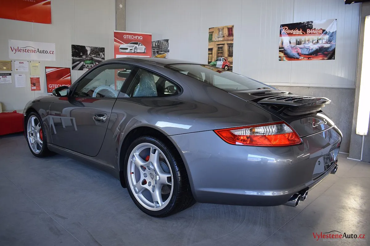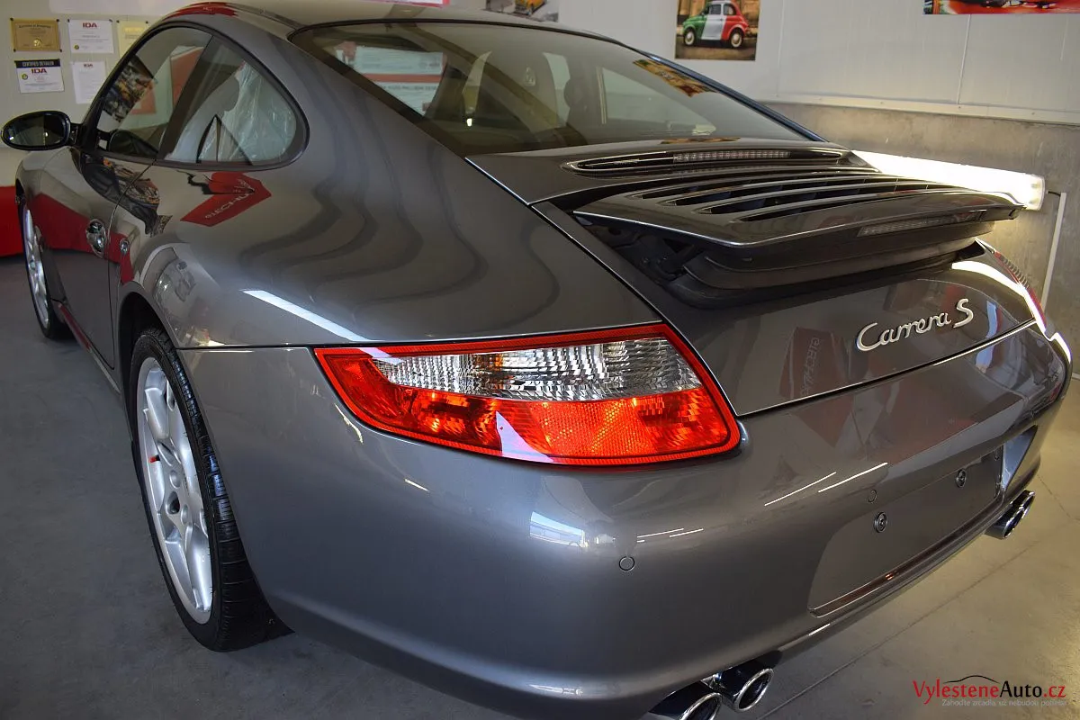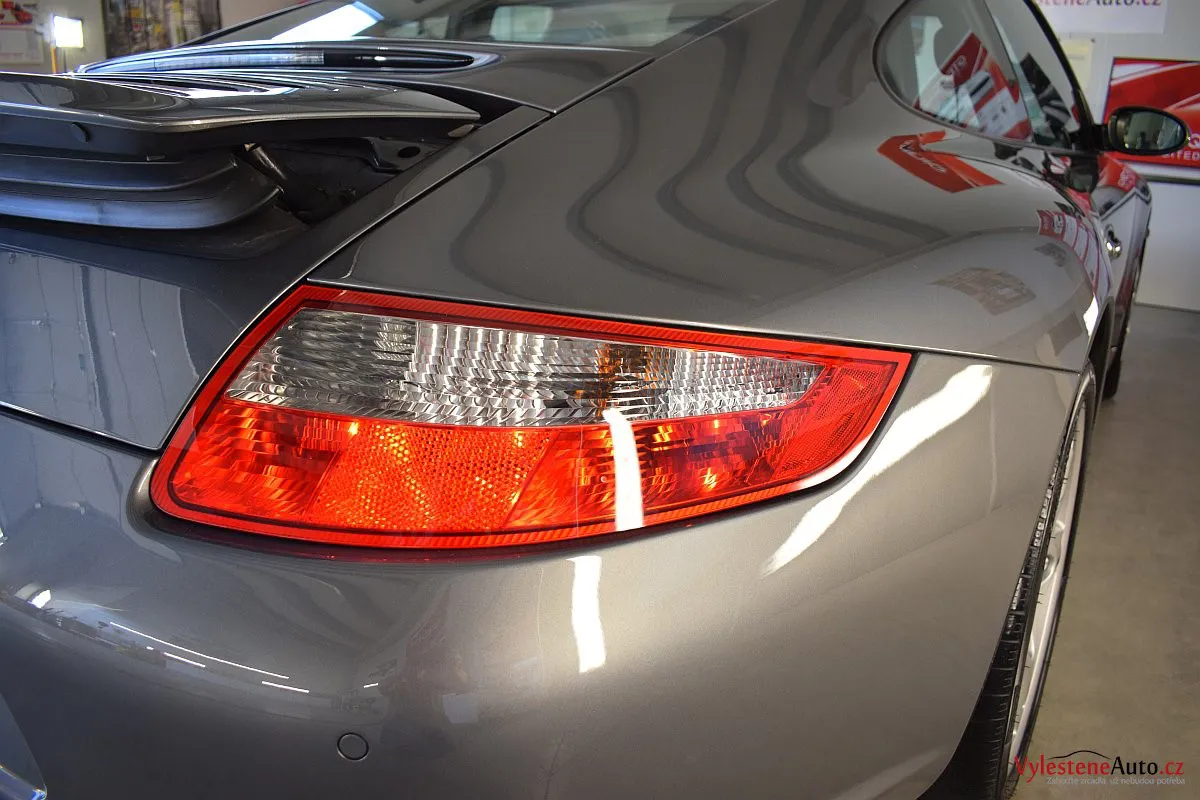 Ikona sportovních automobilů, Porsche 911 Carrera S 997, poháněná ještě atmosférickým šestiválcem 3.8 a vybavená manuální převodovkou. Úžasné tvary, výsuvný spoiler na zádi, čtyři výfuky a skvostný zvuk.