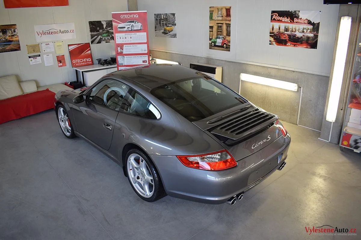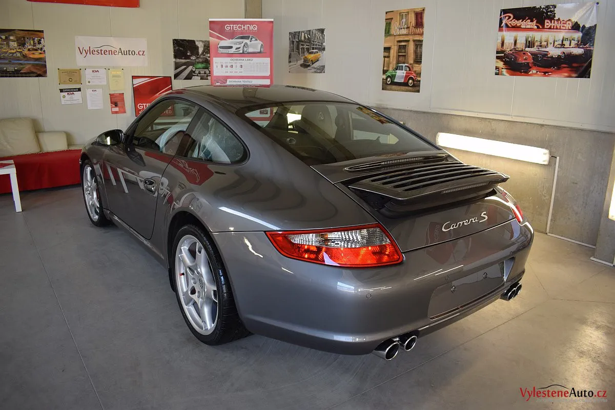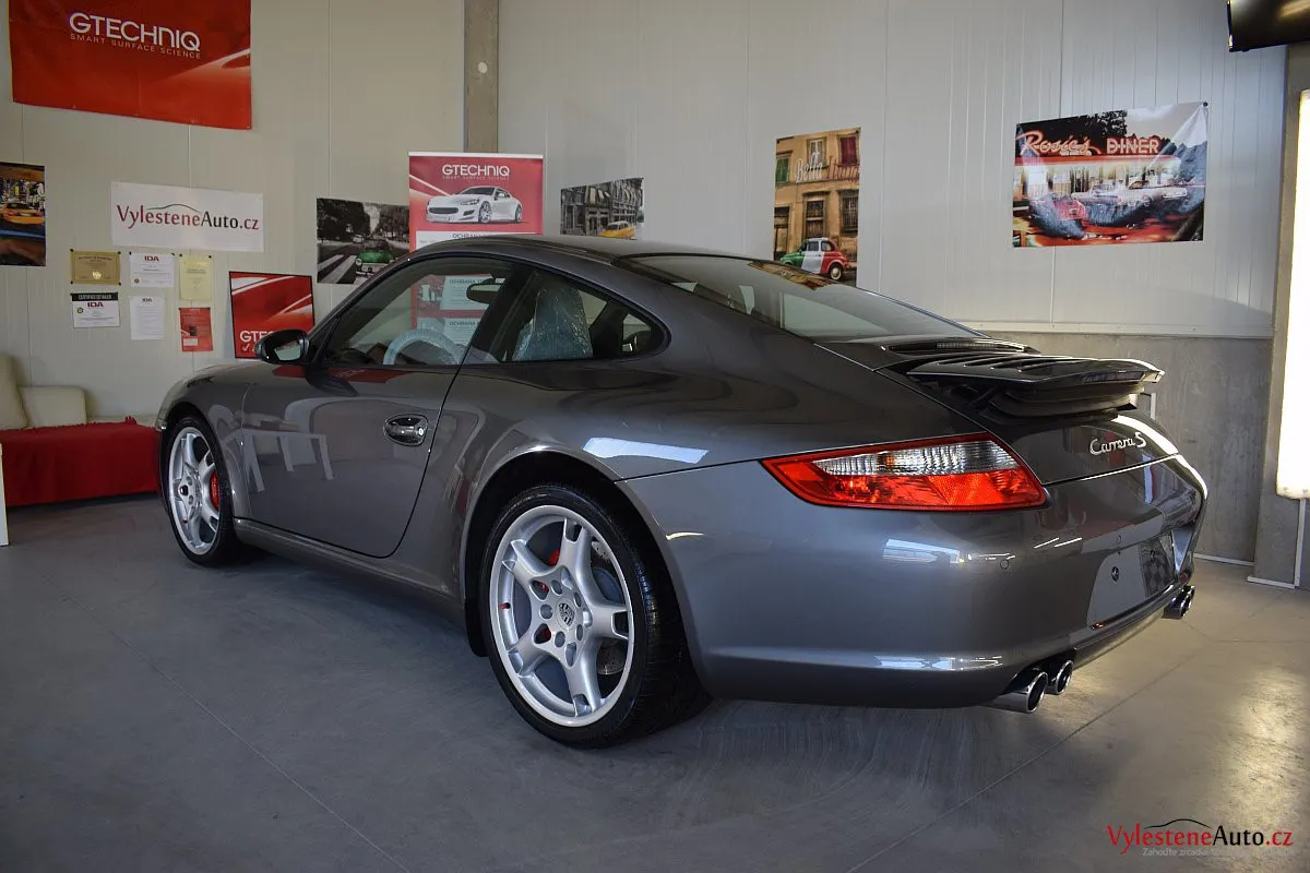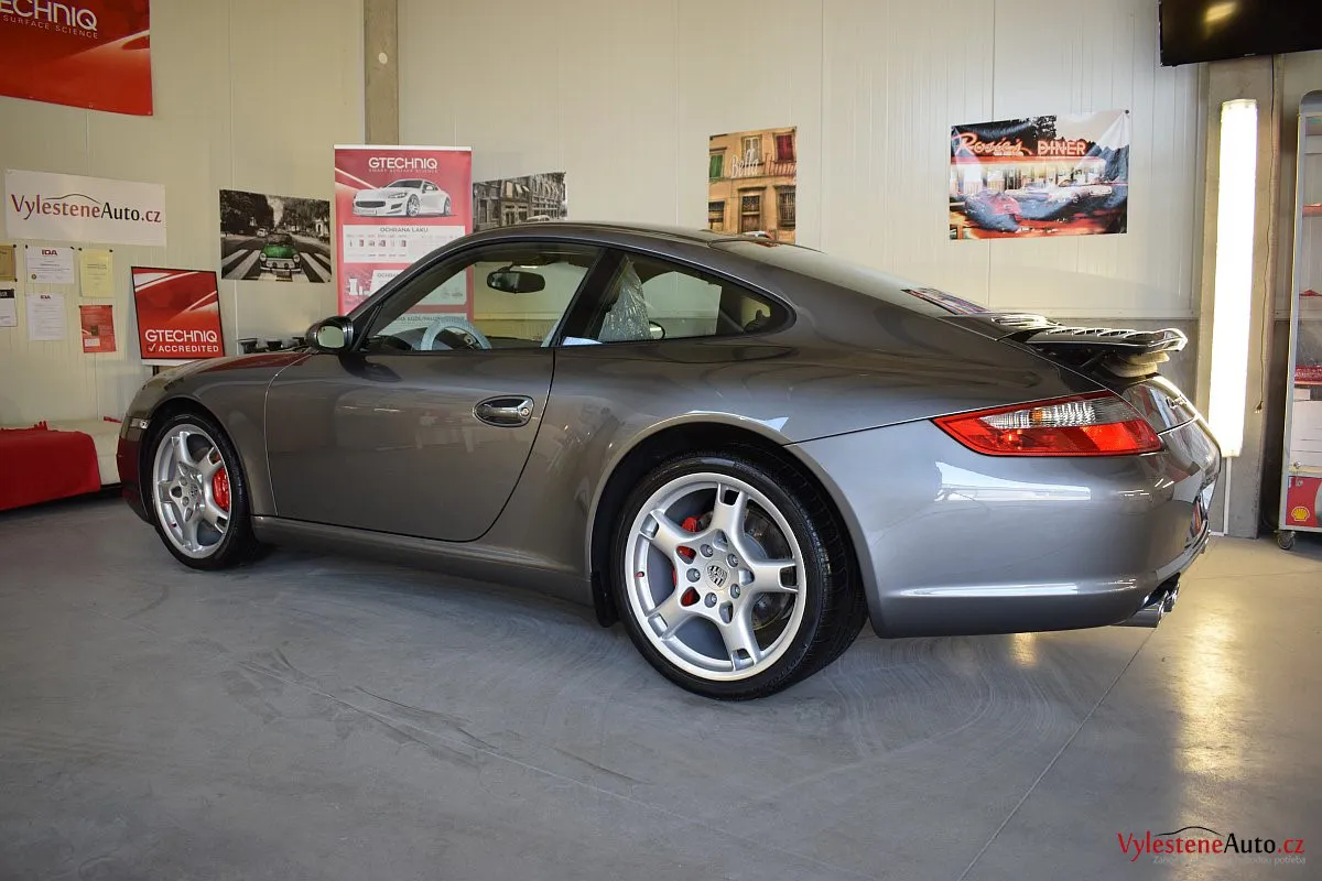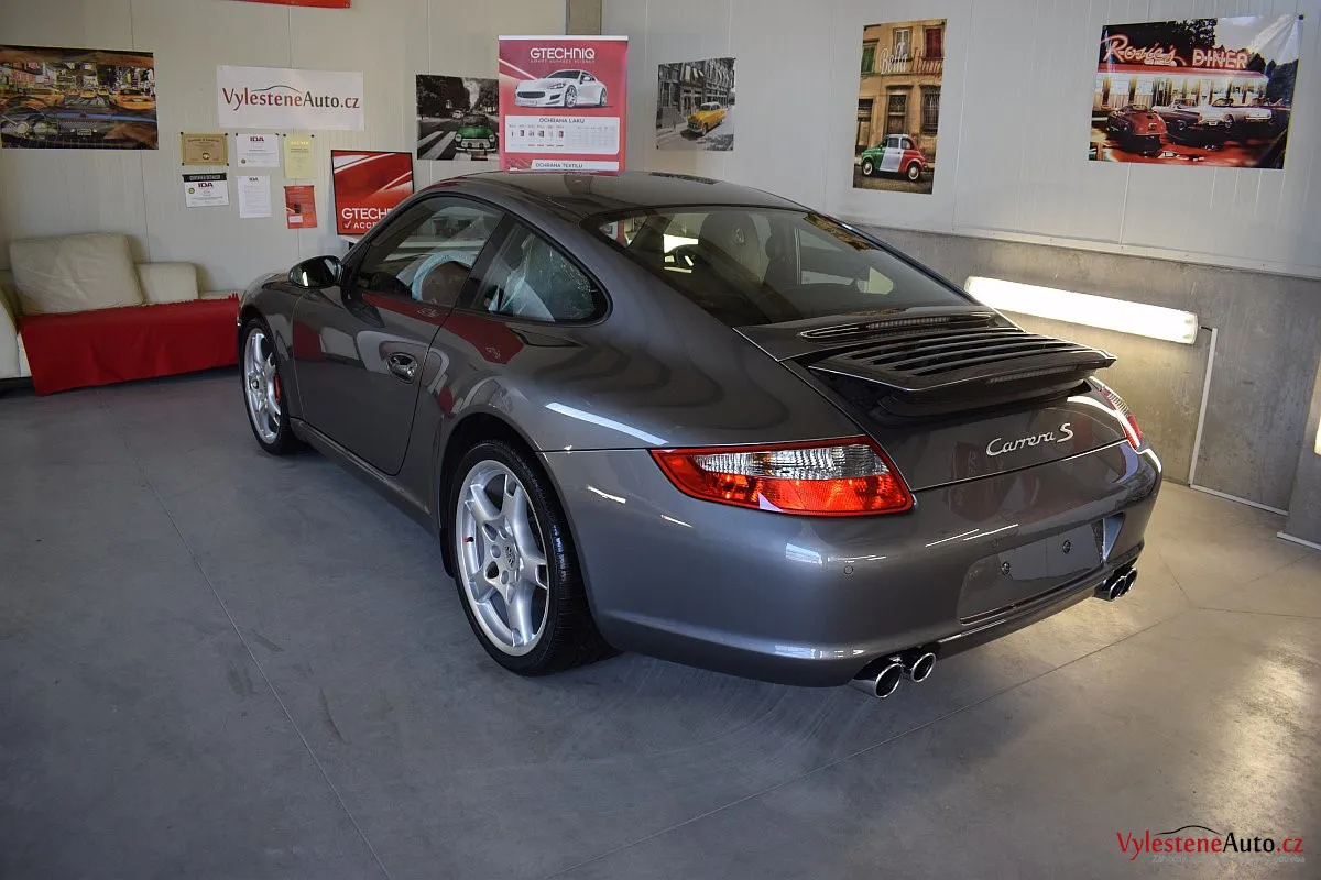 Ikona sportovních automobilů, Porsche 911 Carrera S 997, poháněná ještě atmosférickým šestiválcem 3.8 a vybavená manuální převodovkou. Úžasné tvary, výsuvný spoiler na zádi, čtyři výfuky a skvostný zvuk.