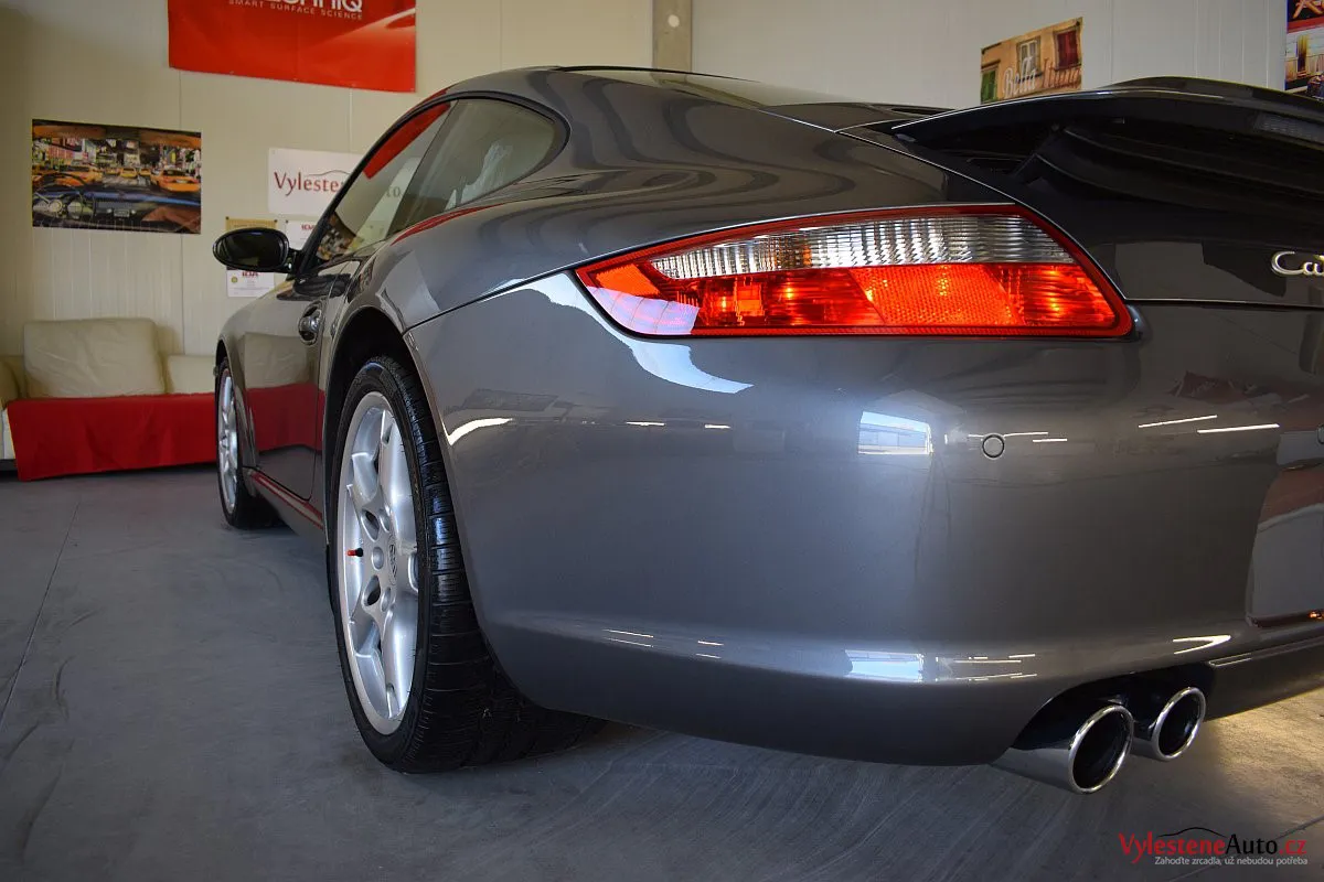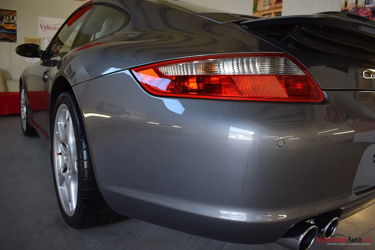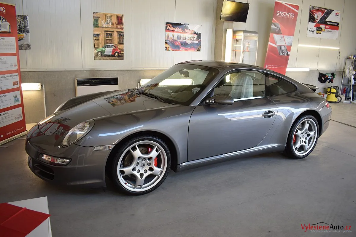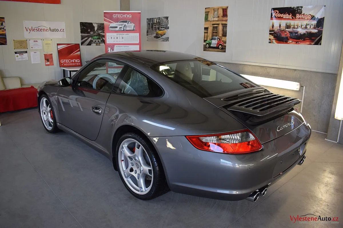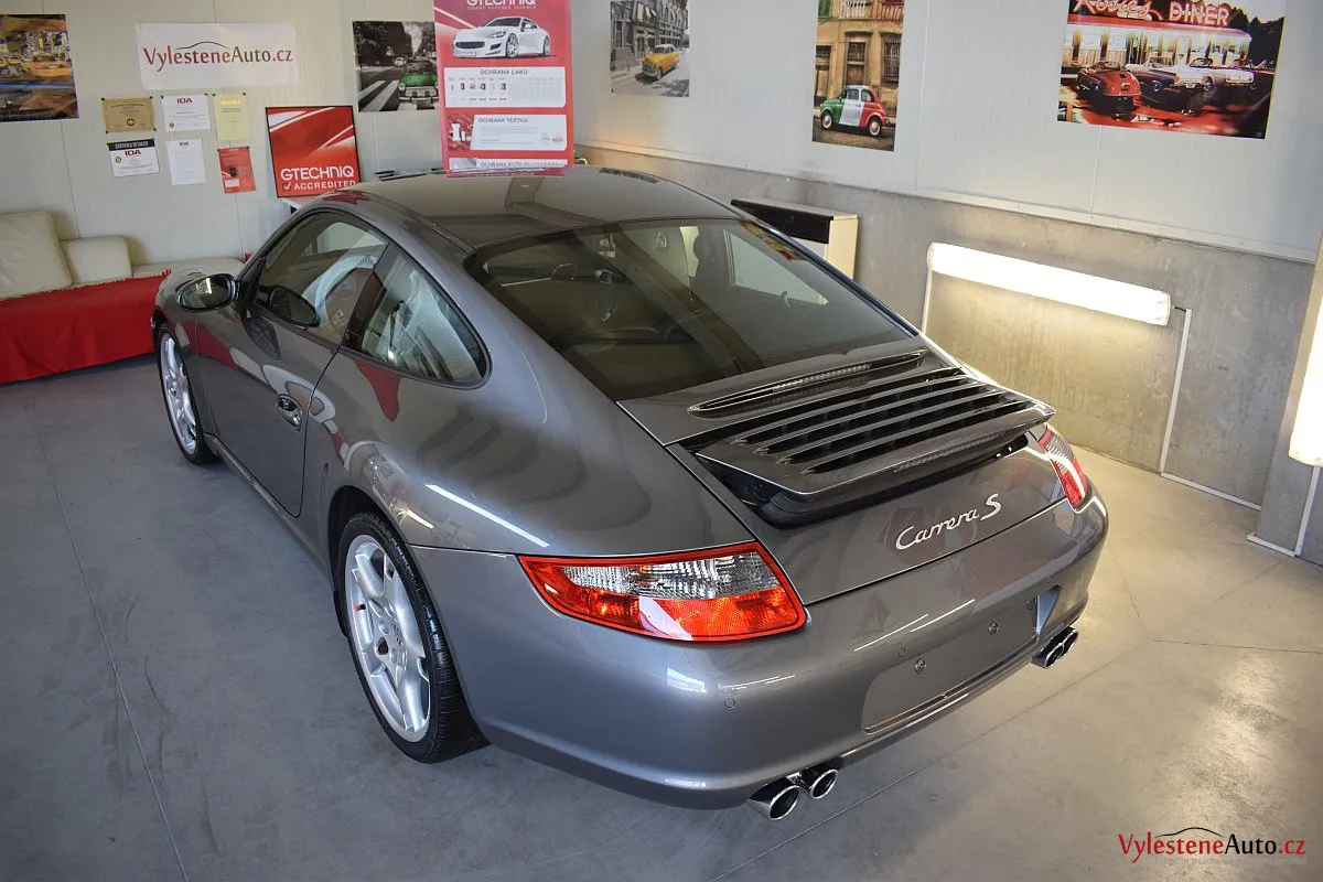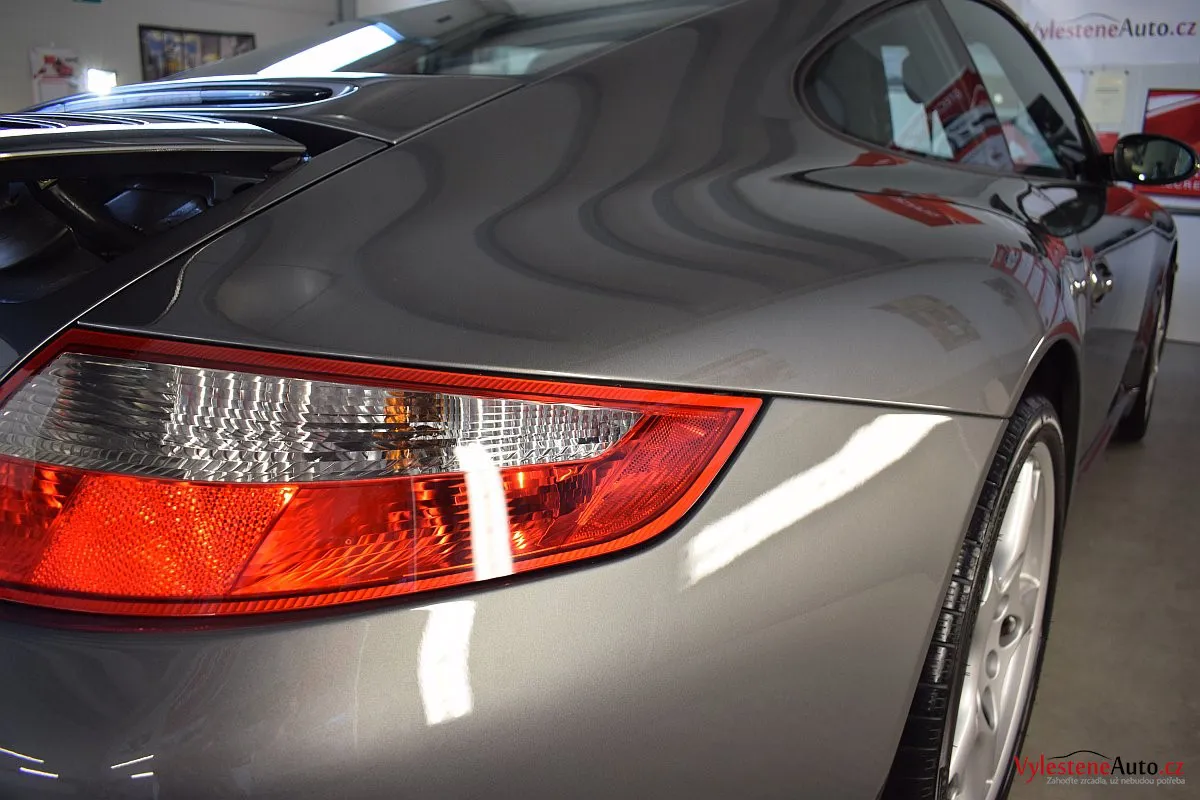 Ikona sportovních automobilů, Porsche 911 Carrera S 997, poháněná ještě atmosférickým šestiválcem 3.8 a vybavená manuální převodovkou. Úžasné tvary, výsuvný spoiler na zádi, čtyři výfuky a skvostný zvuk.