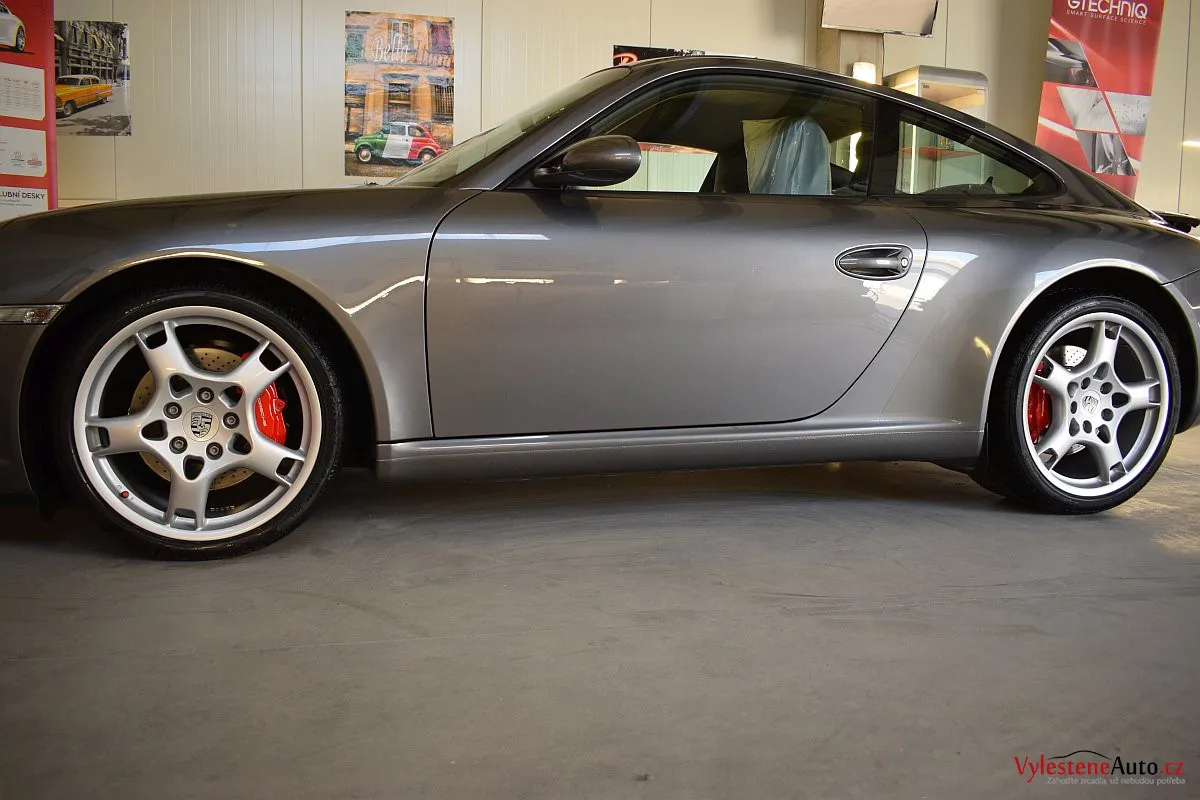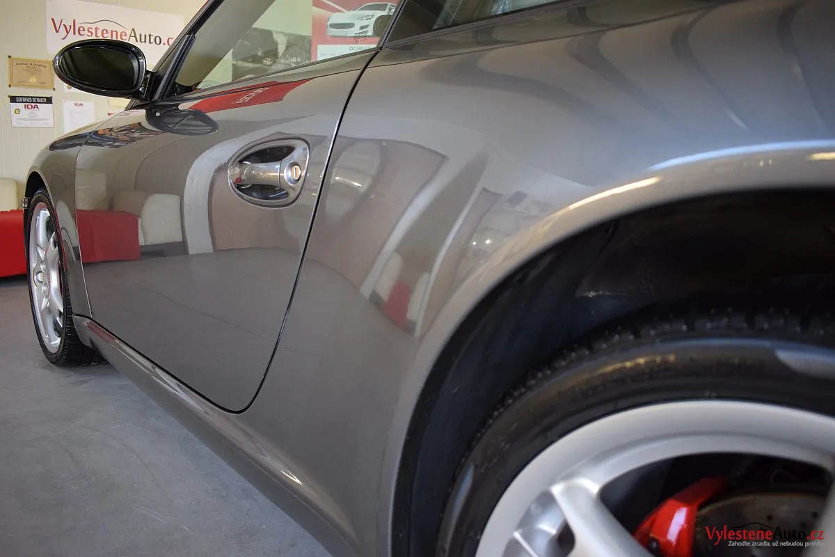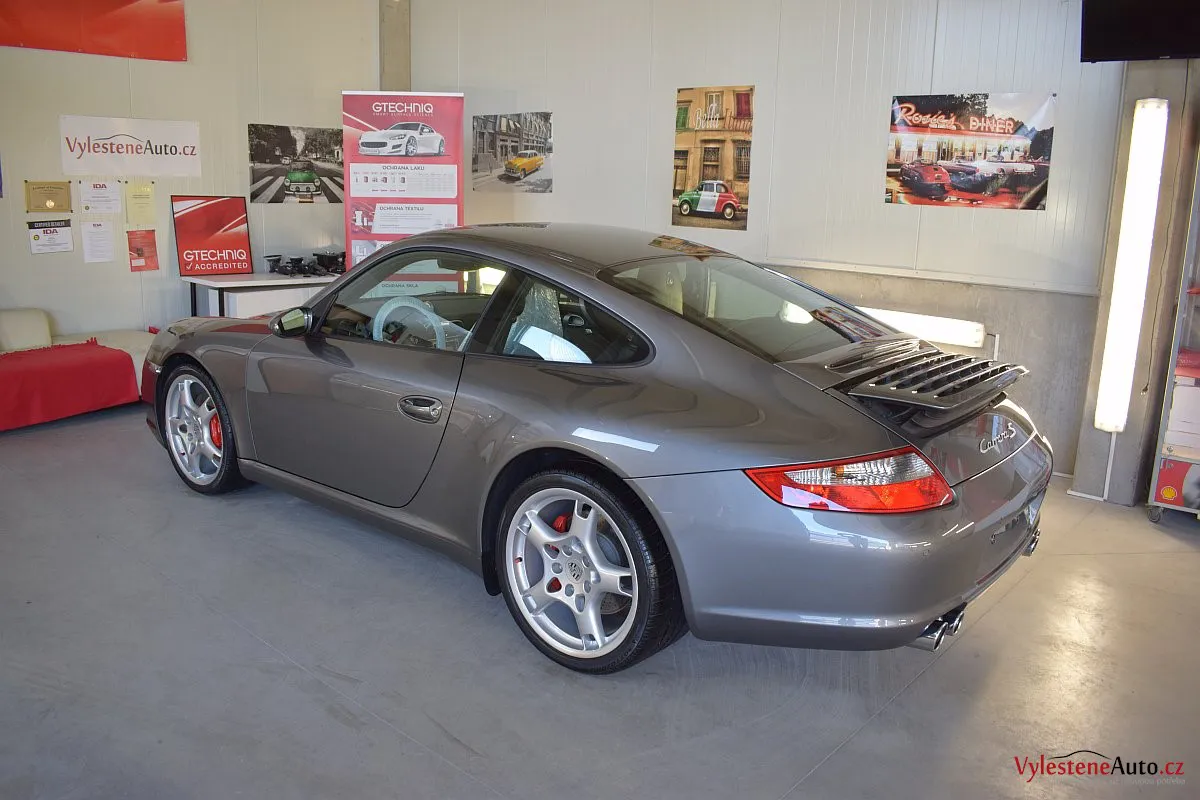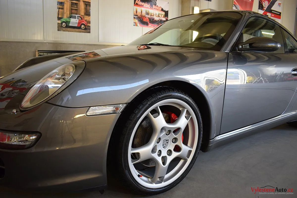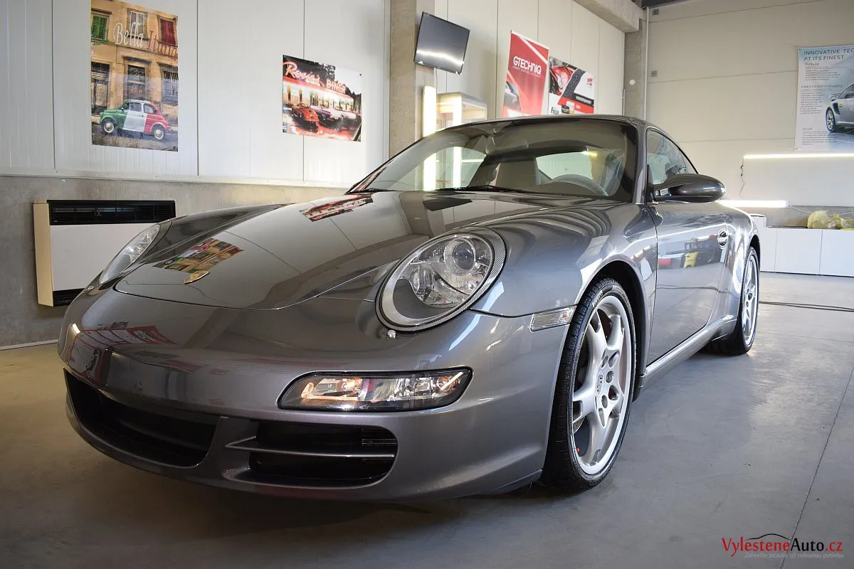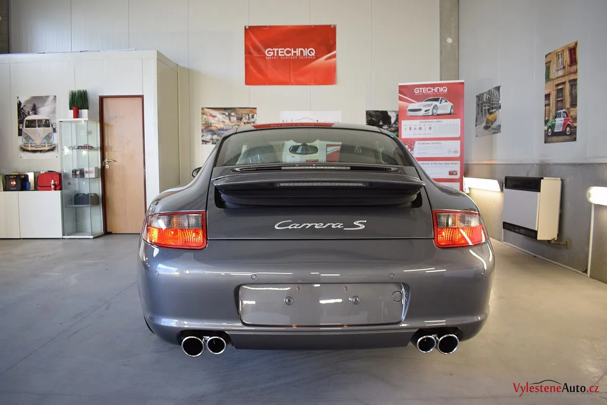 Ikona sportovních automobilů, Porsche 911 Carrera S 997, poháněná ještě atmosférickým šestiválcem 3.8 a vybavená manuální převodovkou. Úžasné tvary, výsuvný spoiler na zádi, čtyři výfuky a skvostný zvuk.