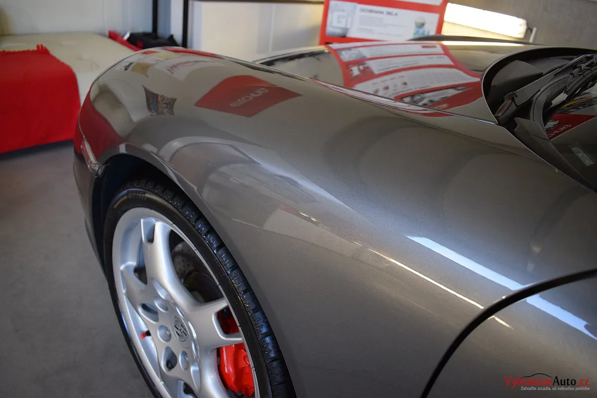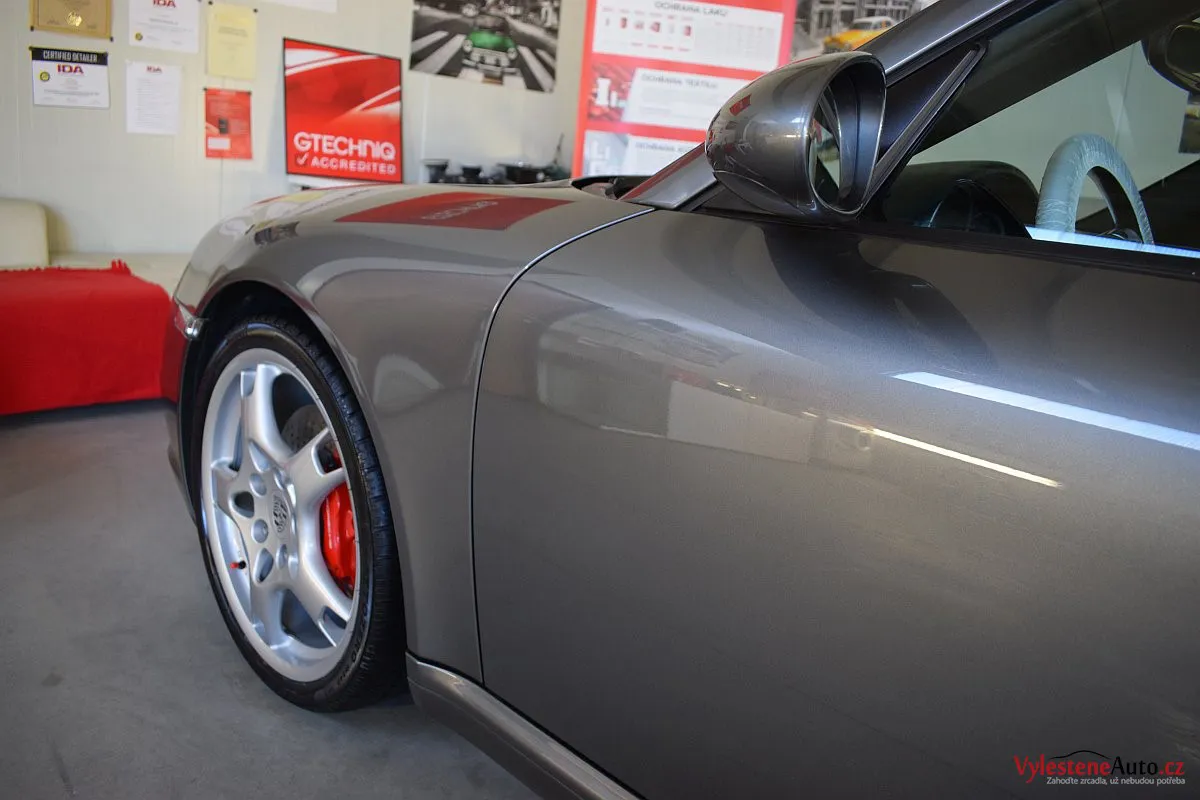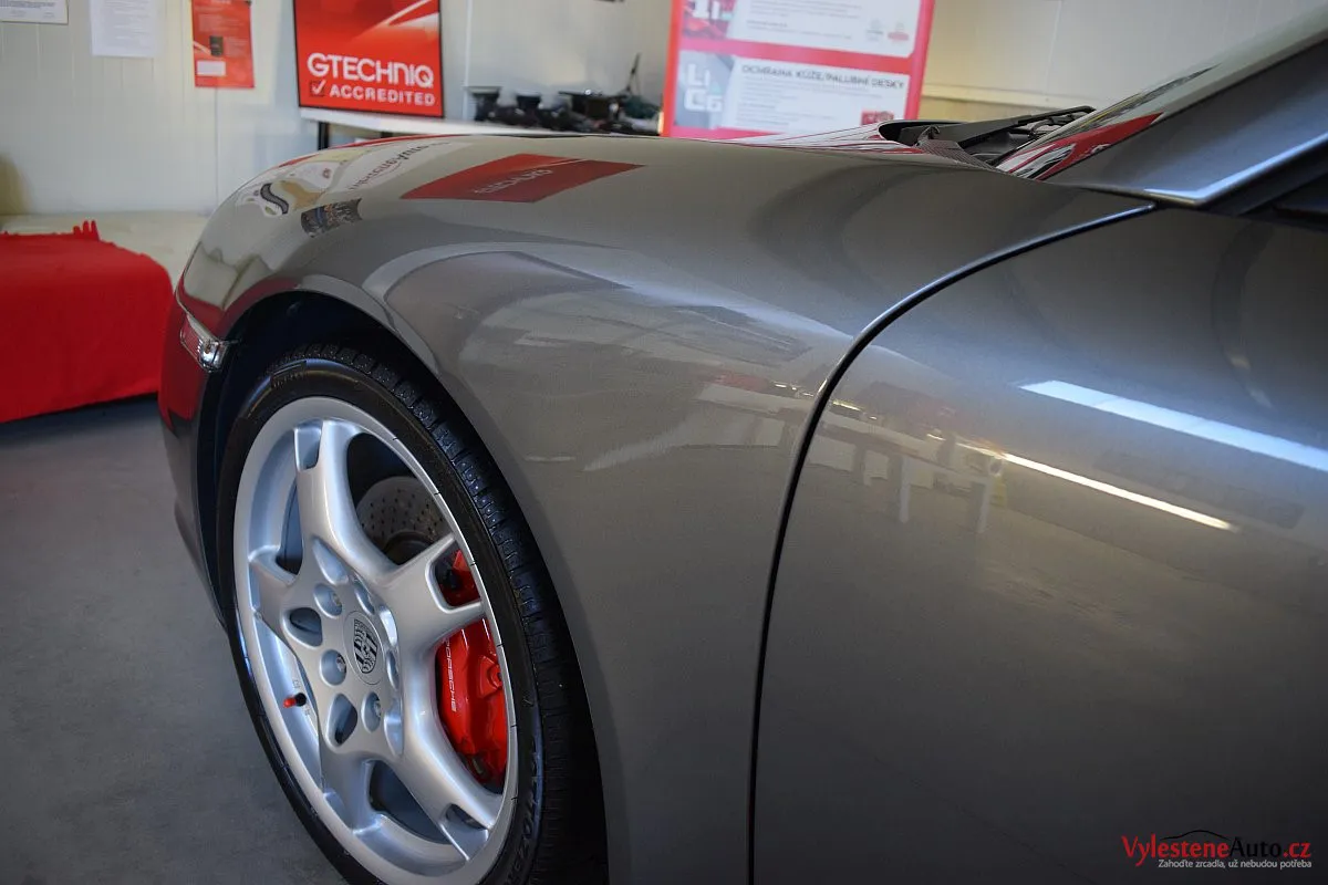K nám si tato 911 přijela pro vícekrokovou renovaci laku a ochranu špičkovou nanokeramikou od Gtechniq - zde jsme použili verzi Ultra s vysokou odolností a výdrží až 9 let. Díky doplňkovému balíčku se nanokeramika dostala také na litá kola, brzdové třmeny, výfuky, skla, kryty světlometů, zrcátka, zádveří a nebo třeba na klíček zapalování.