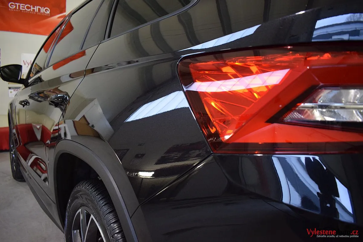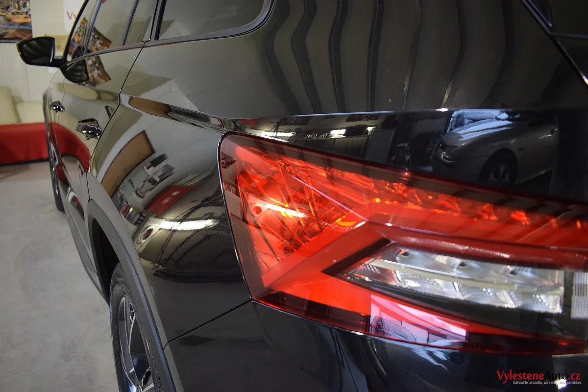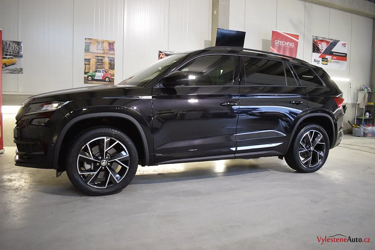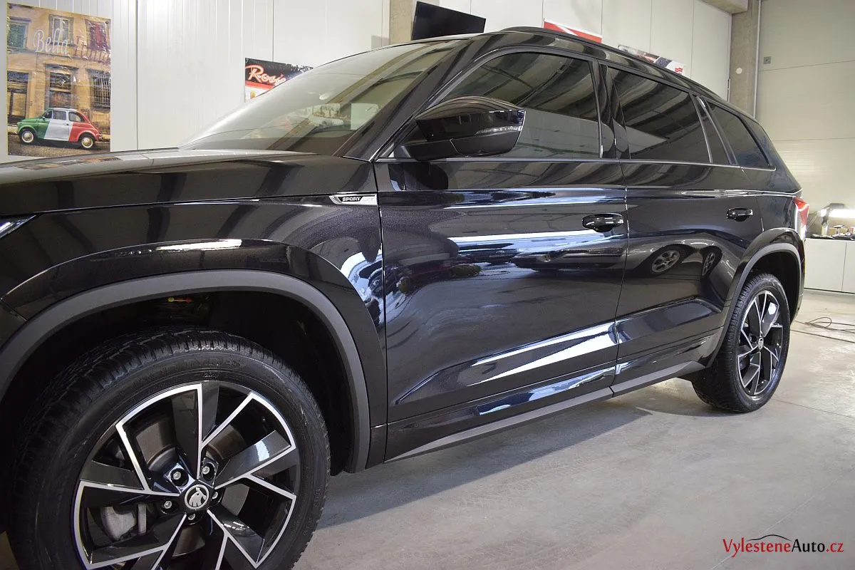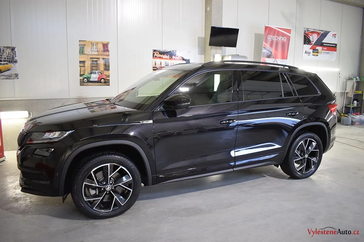 Černomodrá Škoda Kodiaq s luxusní výbavou a paketem Sport se k nám vydala pro vícekrokovou renovaci laku a komplexní nanokeramickou ochranu karoserie. Zvolili jsme špičkovou verzi Gtechniq Ultra s výdrží až 9 let a ochránili jsme také litá kola, všechna skla, zrcátka, motor, zádveří, plastové díly, SPZ, klíček a interiér.
