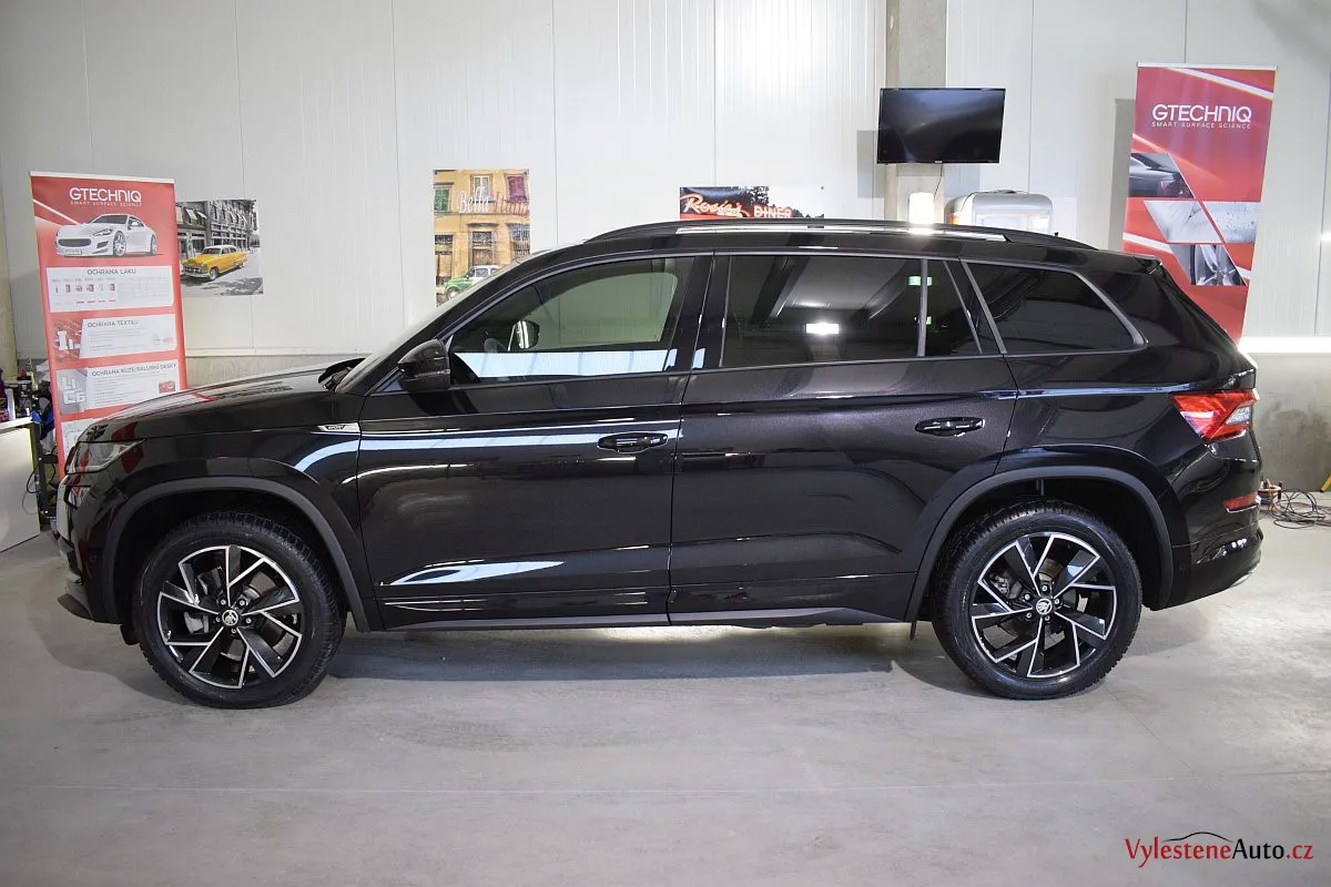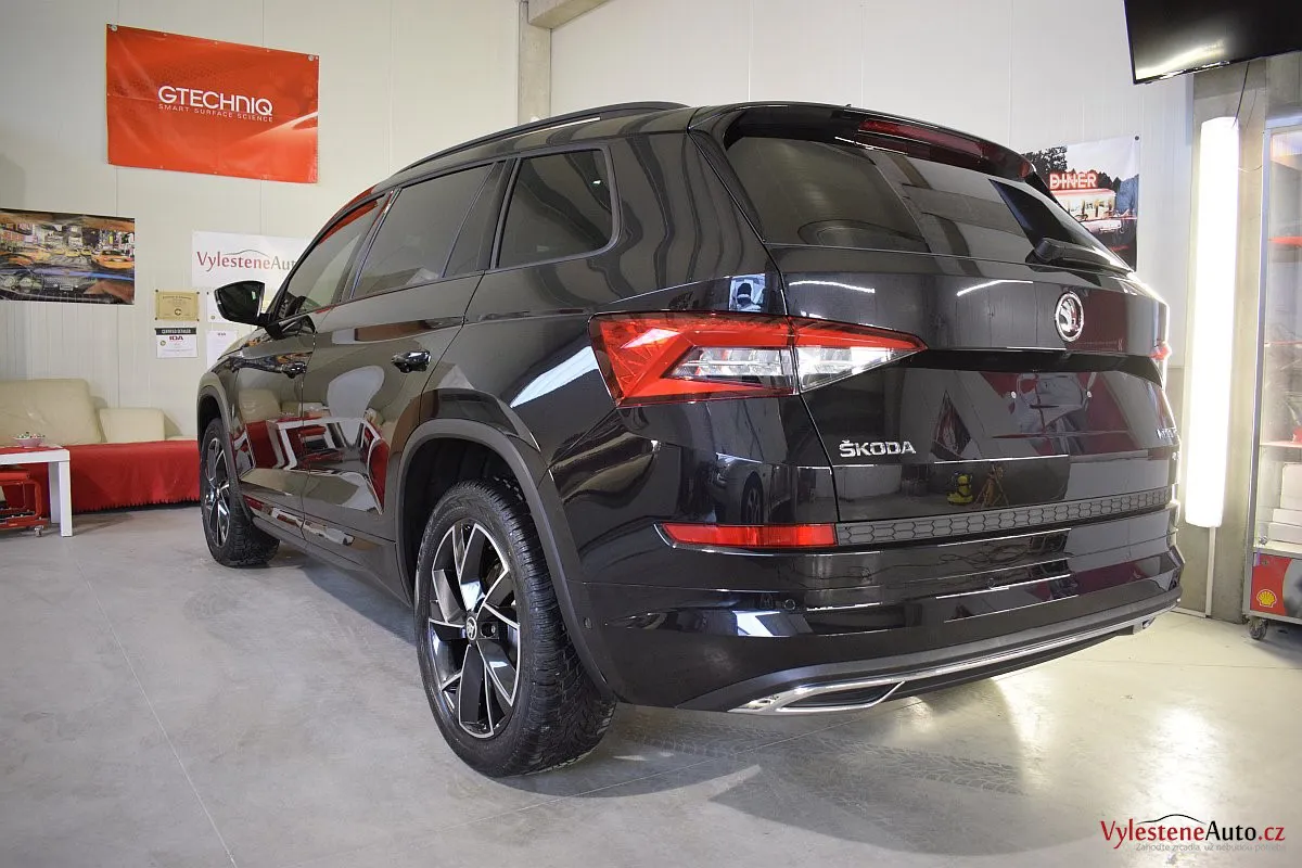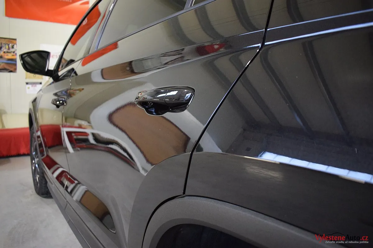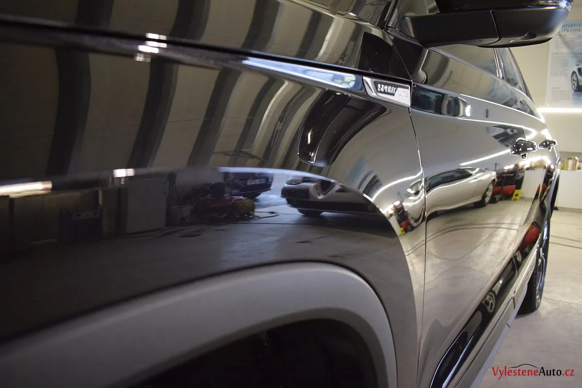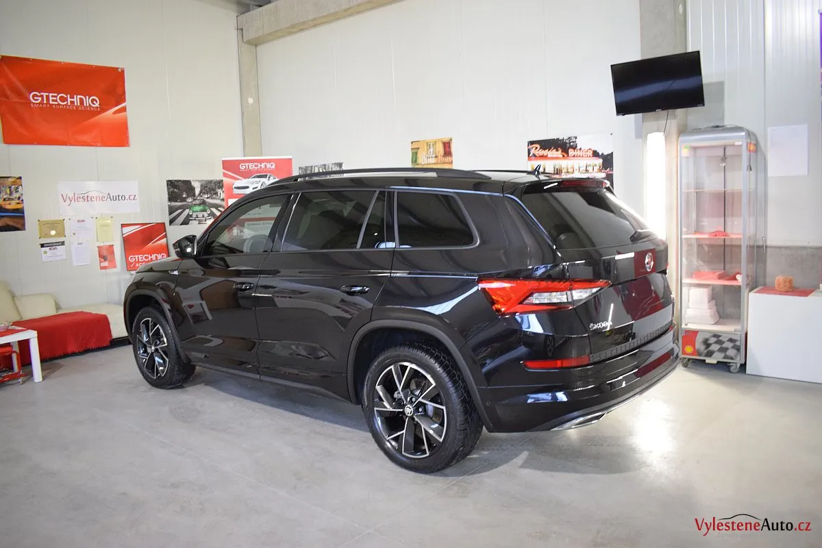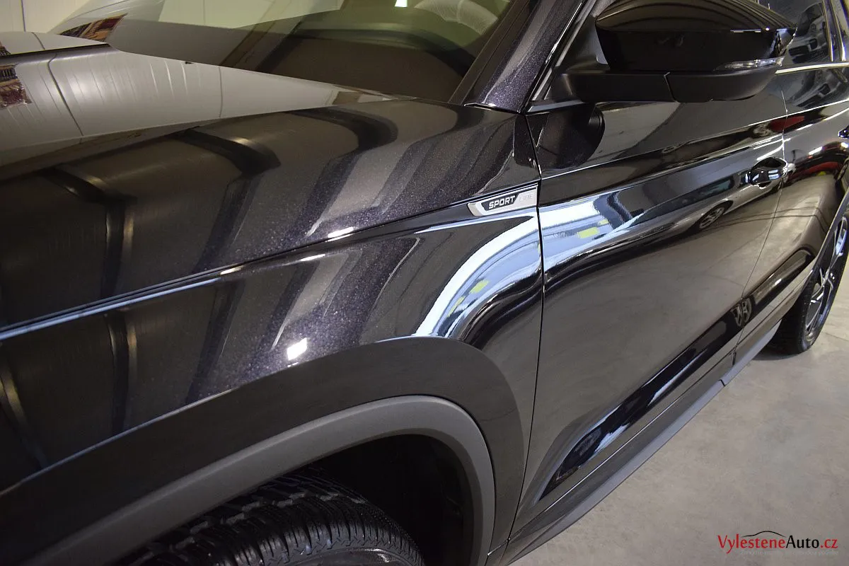 Černomodrá Škoda Kodiaq s luxusní výbavou a paketem Sport se k nám vydala pro vícekrokovou renovaci laku a komplexní nanokeramickou ochranu karoserie. Zvolili jsme špičkovou verzi Gtechniq Ultra s výdrží až 9 let a ochránili jsme také litá kola, všechna skla, zrcátka, motor, zádveří, plastové díly, SPZ, klíček a interiér.