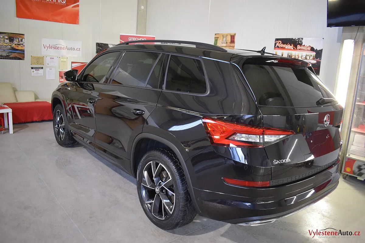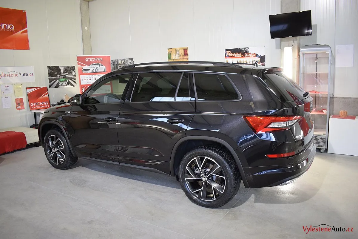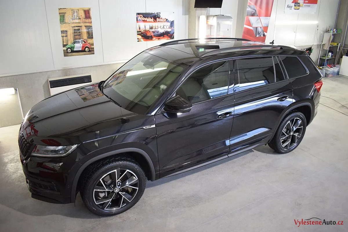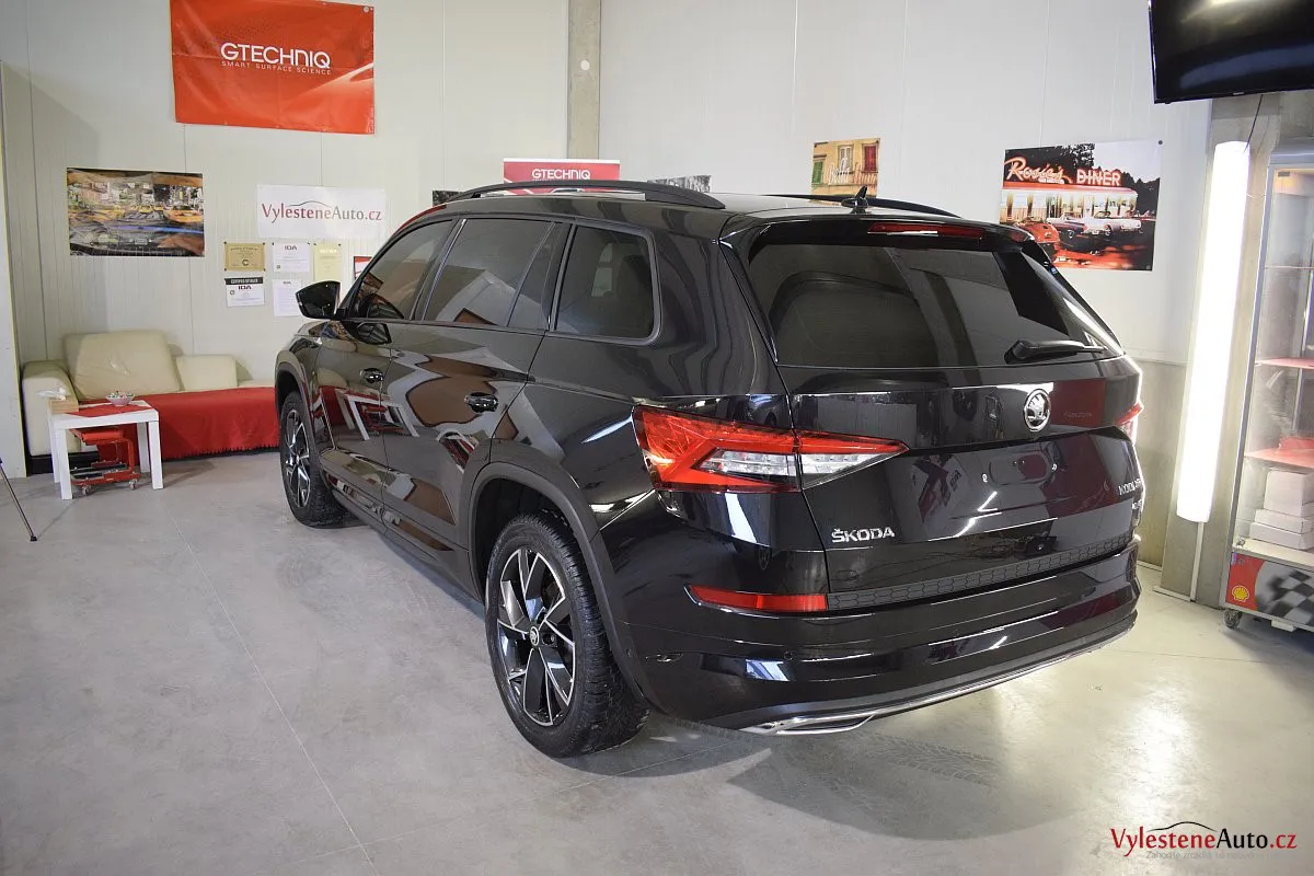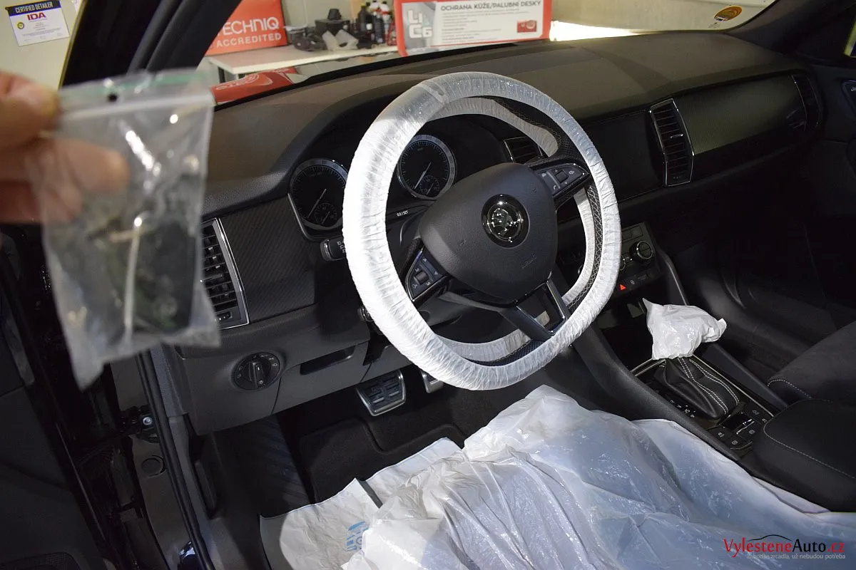 Černomodrá Škoda Kodiaq s luxusní výbavou a paketem Sport se k nám vydala pro vícekrokovou renovaci laku a komplexní nanokeramickou ochranu karoserie. Zvolili jsme špičkovou verzi Gtechniq Ultra s výdrží až 9 let a ochránili jsme také litá kola, všechna skla, zrcátka, motor, zádveří, plastové díly, SPZ, klíček a interiér.