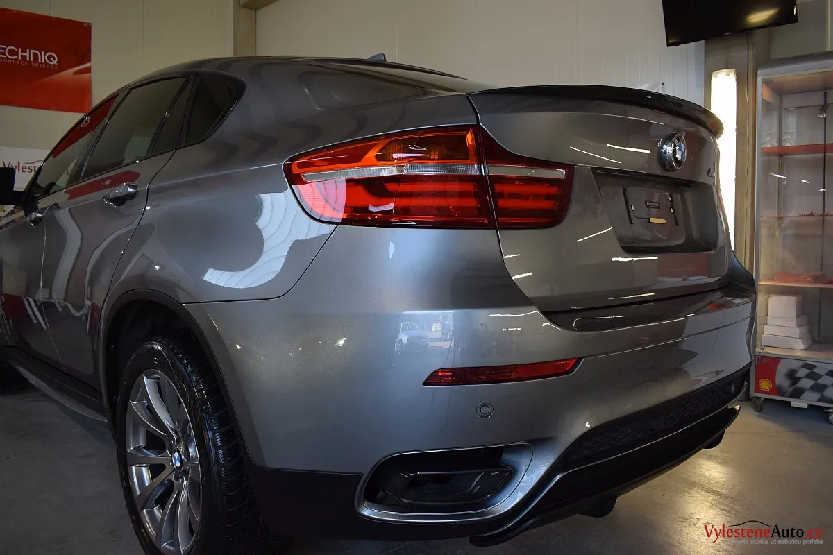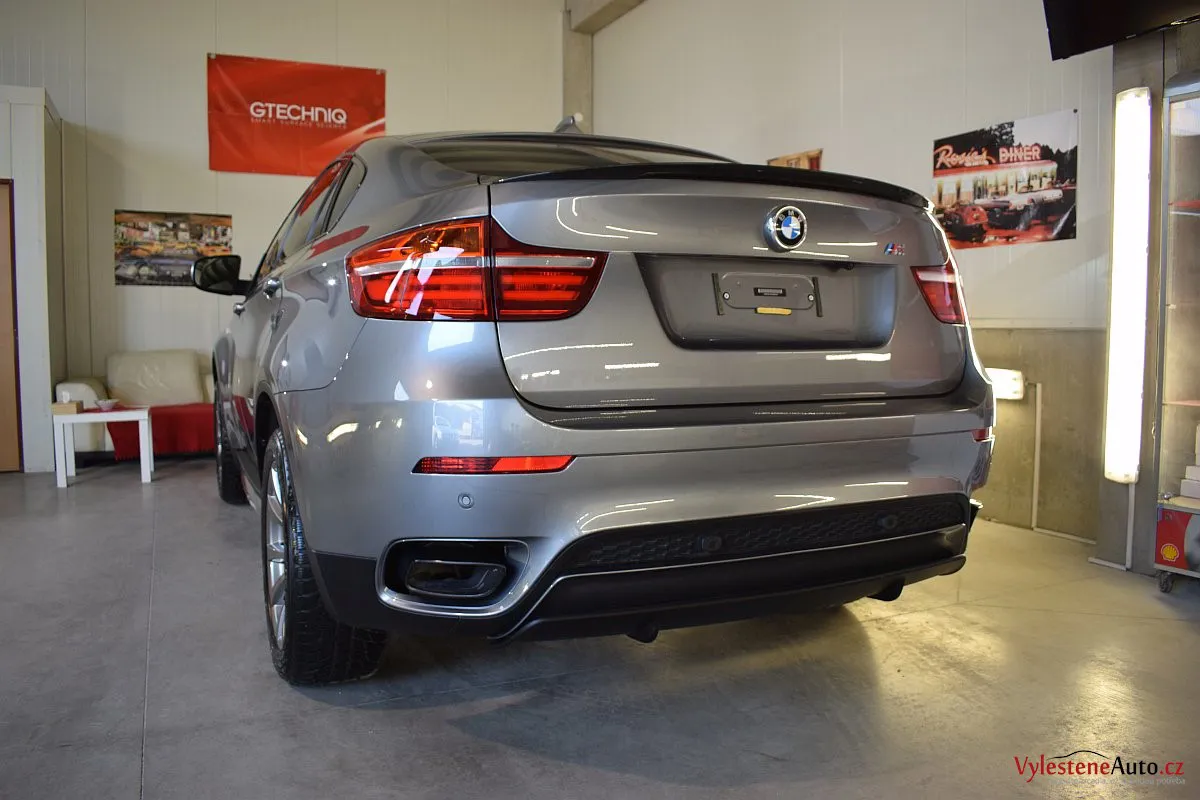 Nádherné BMW X6 M s nadupaným motorem, který dopují rovnou 3 turbodmychadla. U nás se X6 zastavila pro renovaci laku, odstranění důlků metodou PDR, špičkovou nanokeramickou ochranu karoserie, litých kol, skel, zádveří, krytů světlometů, motor, SPZ a klíčku. K ochraně laku jsme zvolili nejvyšší možnou verzi nanokeramiky od Gtechniq - Crystal Serum Ultra s tvrdostí 10H a výdrží až 9 let. Kompletní péči získal také interiér a to včetně dezinfekce ozonem.