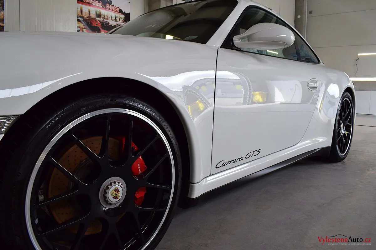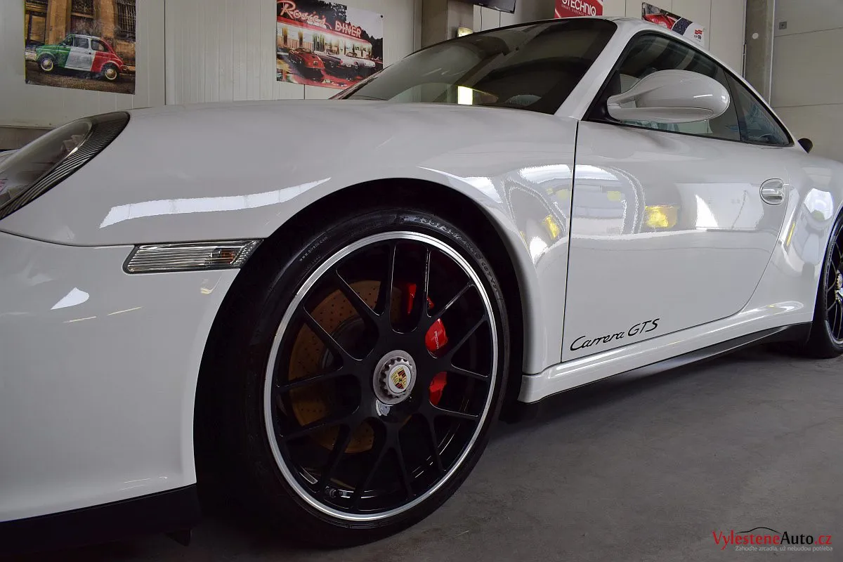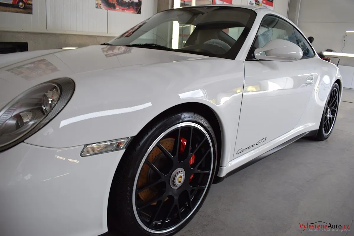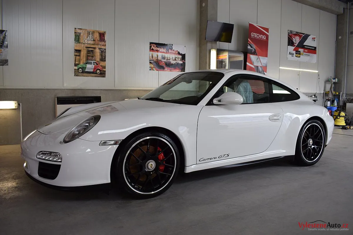 Skvostné Porsche 911 GTS, speciál se 408 koňmi a koly s centrální maticí, zabalený do bílého kabátku. U nás jsme mu dopřáli péči v podobě vícekrokové renovace a komplexní nanokeramické ochrany laku pomocí nanokeramiky Gtechniq Crystal Serum Ultra s výdrží až 9 let. Ošetřili jsme také litá kola, brzdové třmeny, plastové díly, všechna skla a zrcátka, kryty světlometů, SPZ, klíček, motor i spodní stranu kapoty.