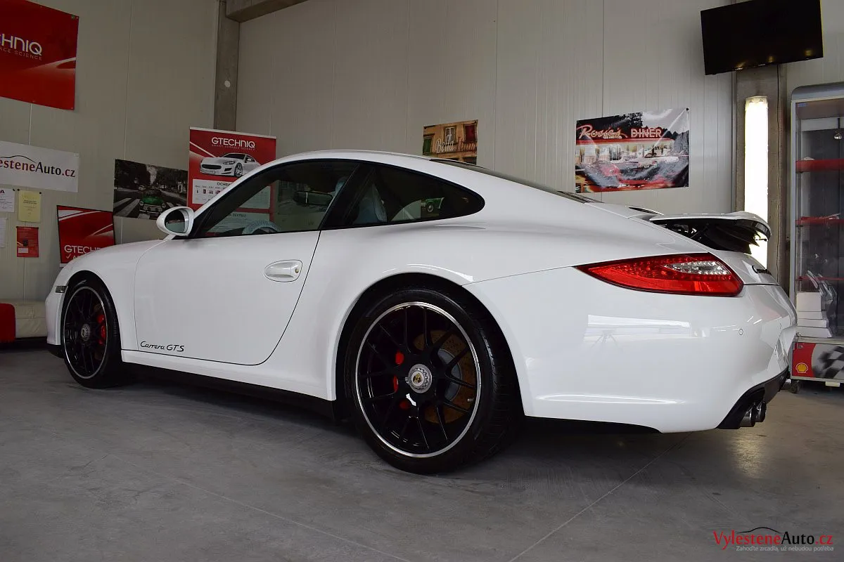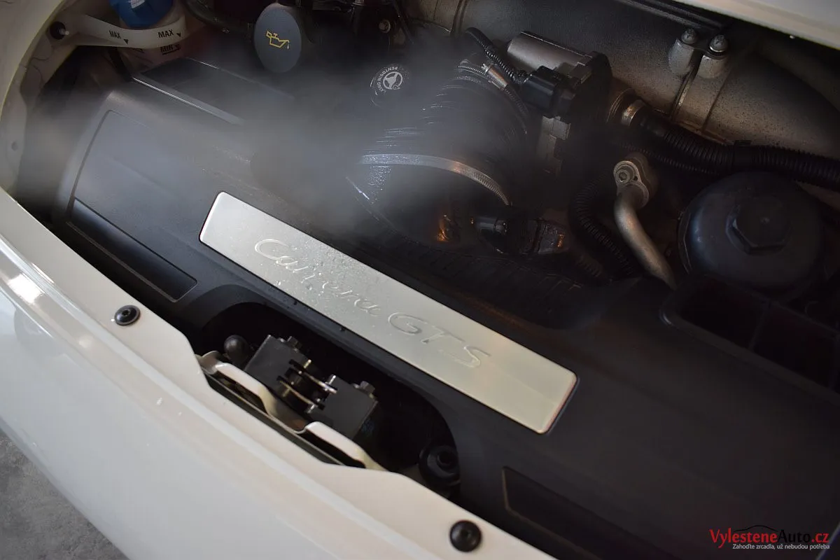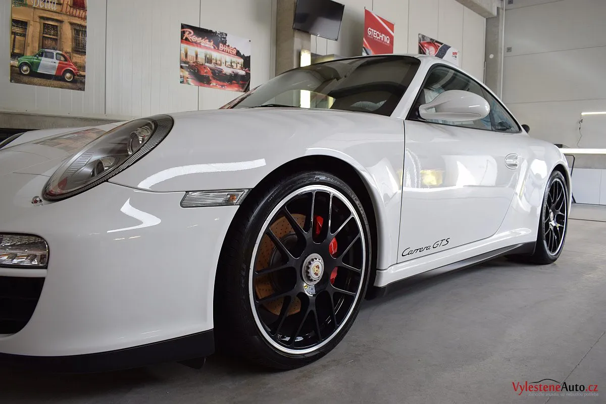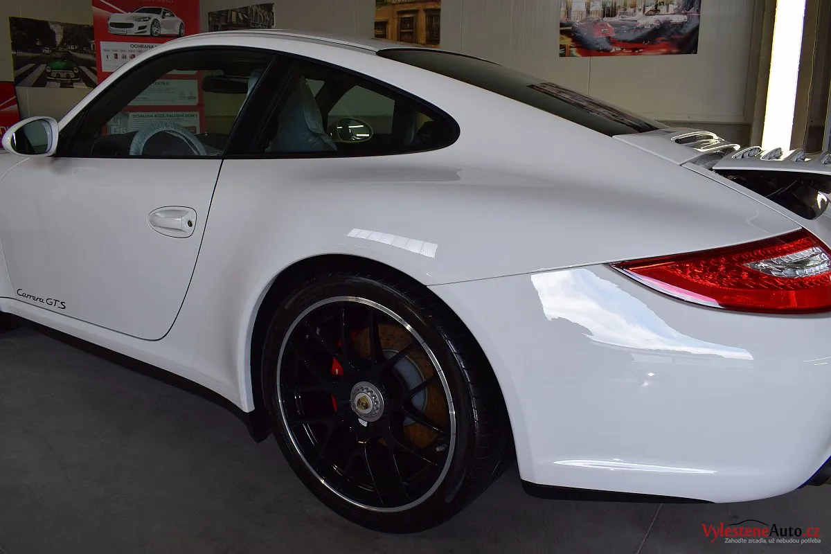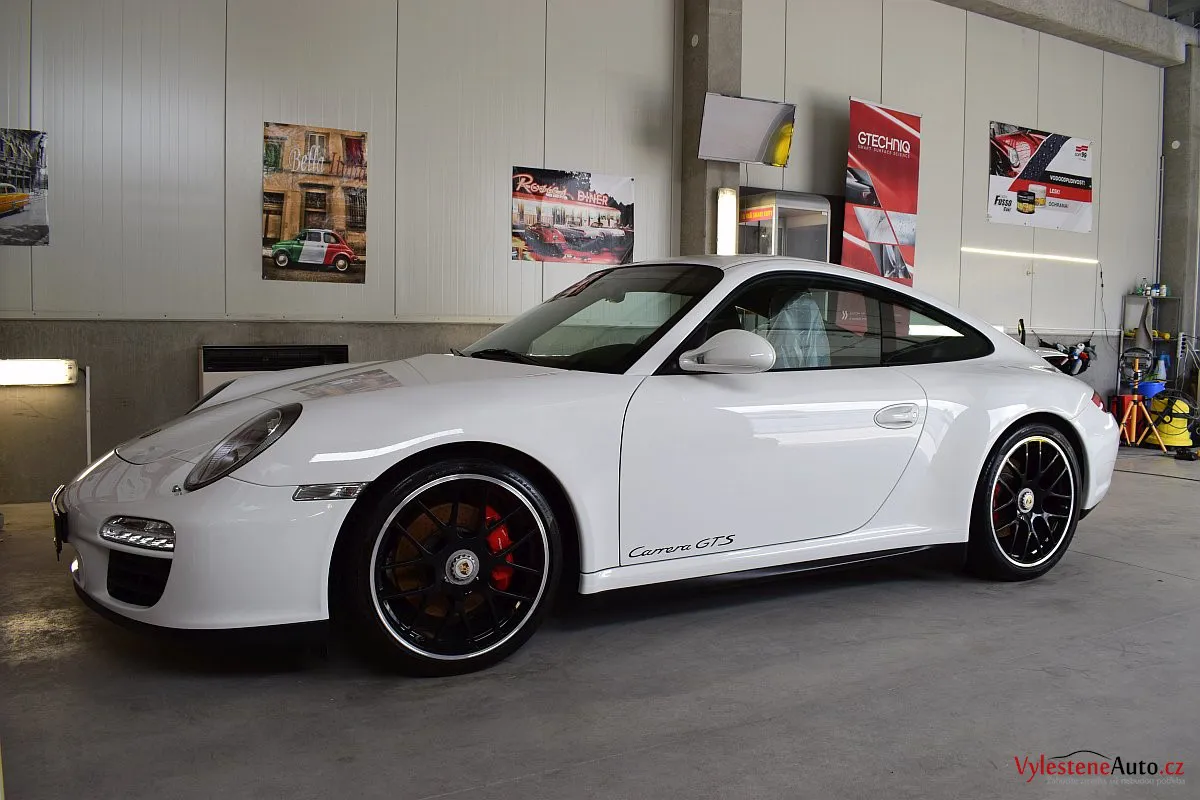 Skvostné Porsche 911 GTS, speciál se 408 koňmi a koly s centrální maticí, zabalený do bílého kabátku. U nás jsme mu dopřáli péči v podobě vícekrokové renovace a komplexní nanokeramické ochrany laku pomocí nanokeramiky Gtechniq Crystal Serum Ultra s výdrží až 9 let. Ošetřili jsme také litá kola, brzdové třmeny, plastové díly, všechna skla a zrcátka, kryty světlometů, SPZ, klíček, motor i spodní stranu kapoty.