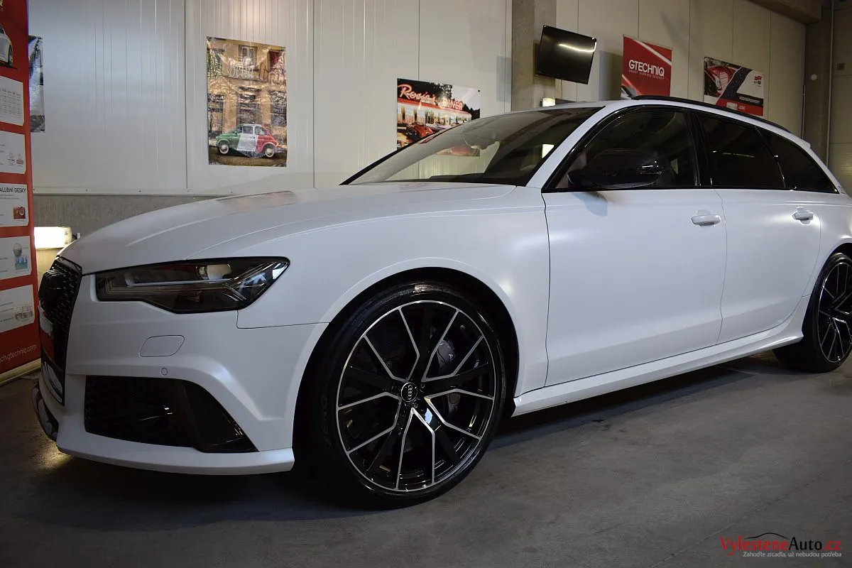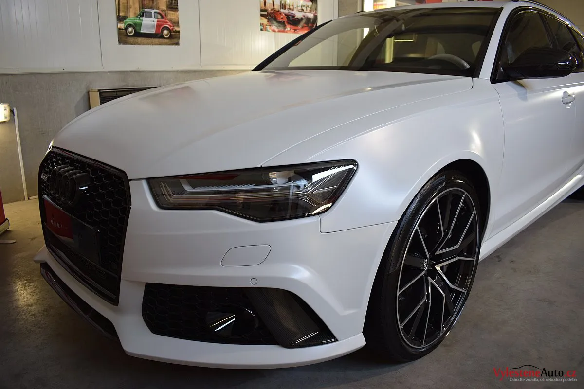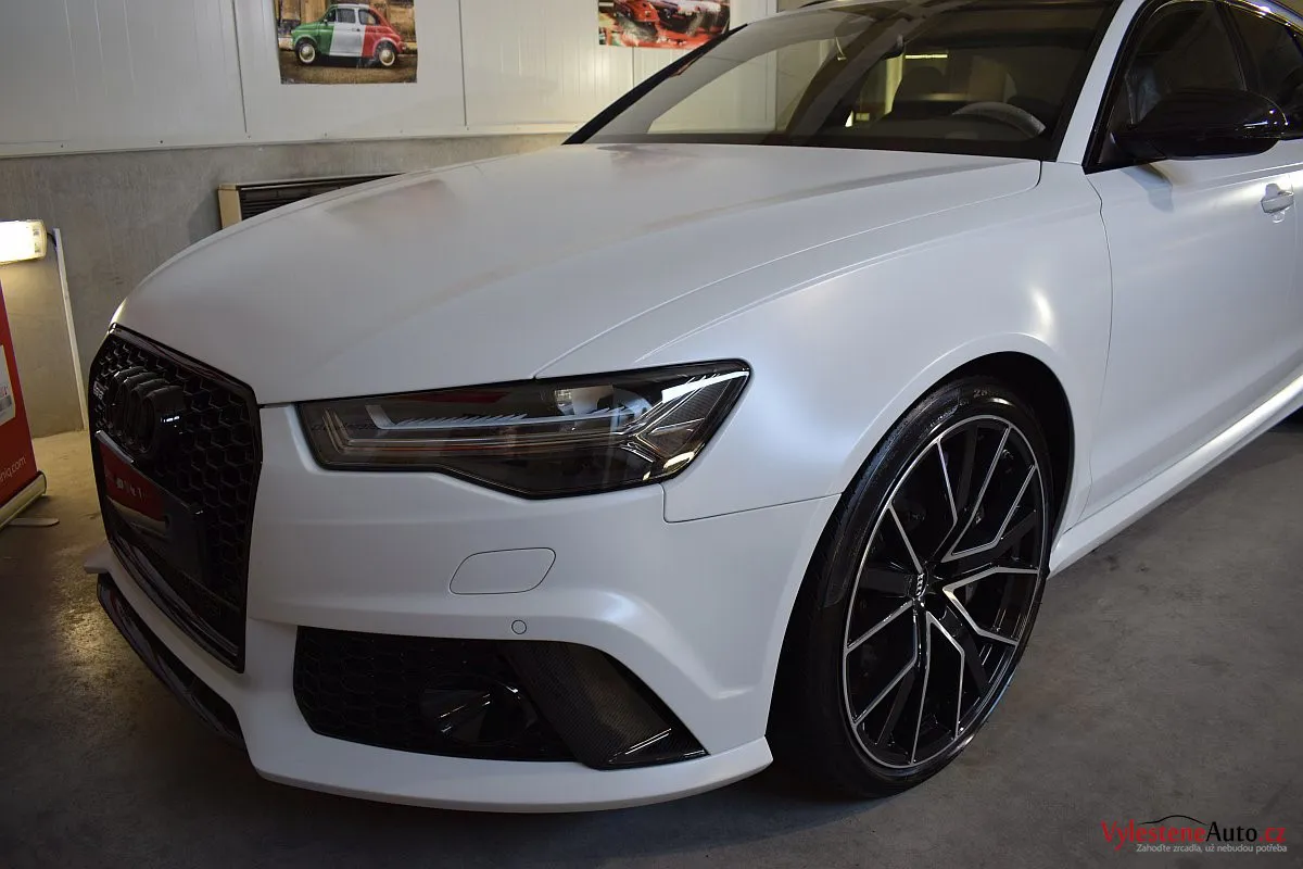 Na první pohled nenápadné, matně bílé Audi - v této verzi se ale jedná o legendární zbraň - RS6 má motor V8 biturbo, karbonkeramické brzdy a naprosto neskutečný soundtrack, linoucí se ze dvou výfuků.