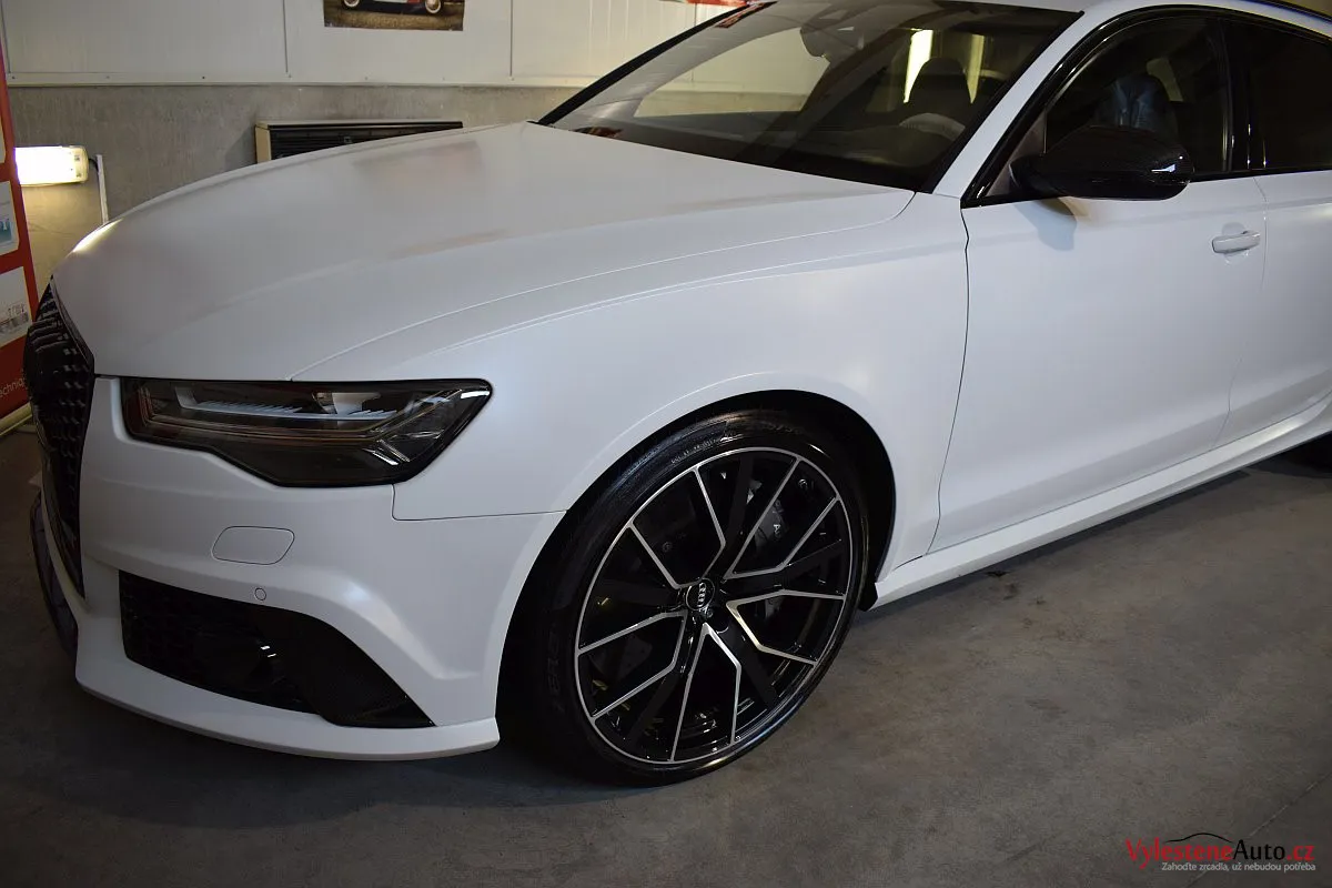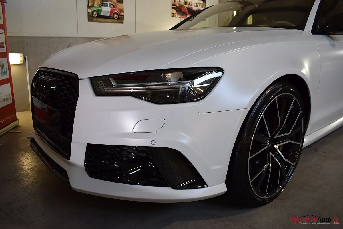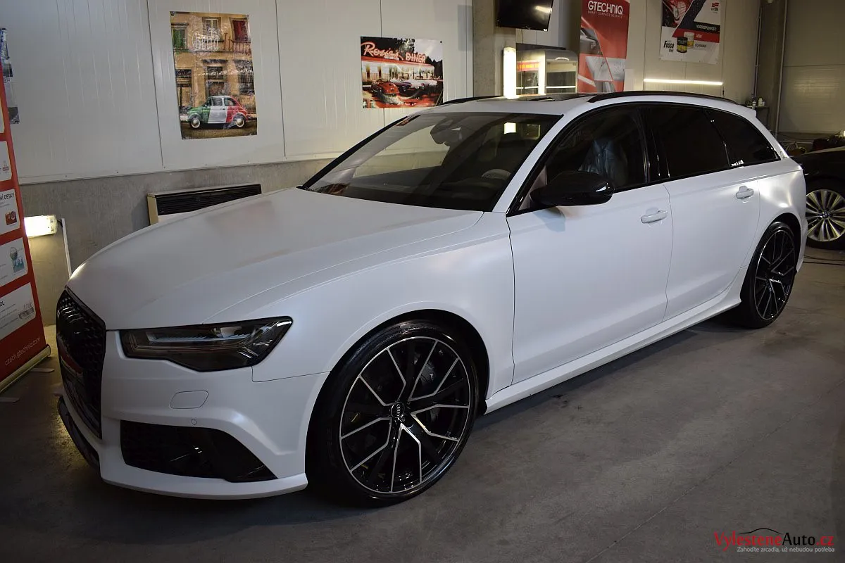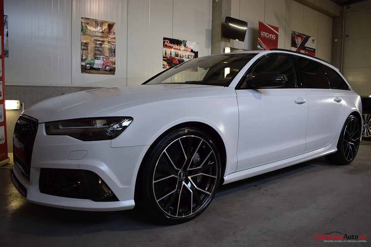Na první pohled nenápadné, matně bílé Audi - v této verzi se ale jedná o legendární zbraň - RS6 má motor V8 biturbo, karbonkeramické brzdy a naprosto neskutečný soundtrack, linoucí se ze dvou výfuků.