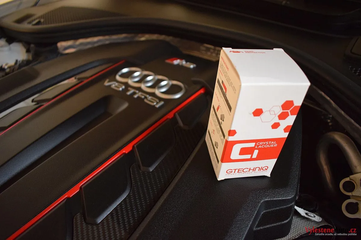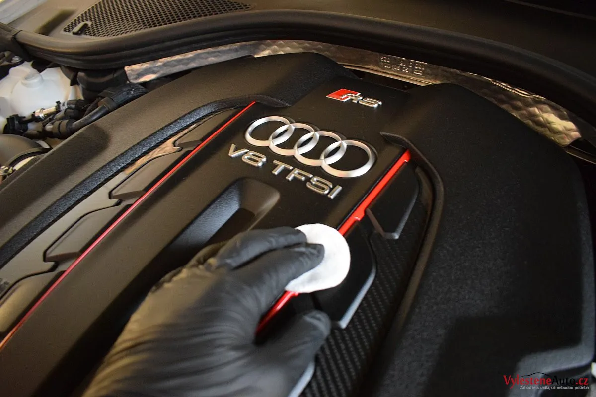 K nám si tato RS6 přijela pro špičkovou nanokeramickou ochranu karoserie. Použili jsme nejpokročilejší nanokeramiku Gtechniq Crystal Serum Ultra s výdrží až 9 let. Kromě karoserie jsme ošetřili také litá kola, motor, spodní stranu kapoty, SPZ, klíčky, zádveří, všechna skla a zrcátka, karbonový difuzor a všechny možné plastové díly.