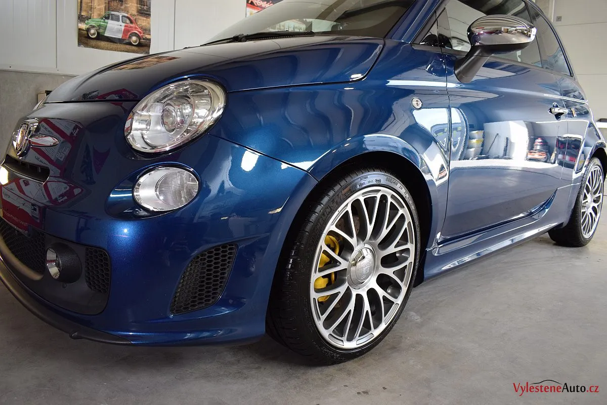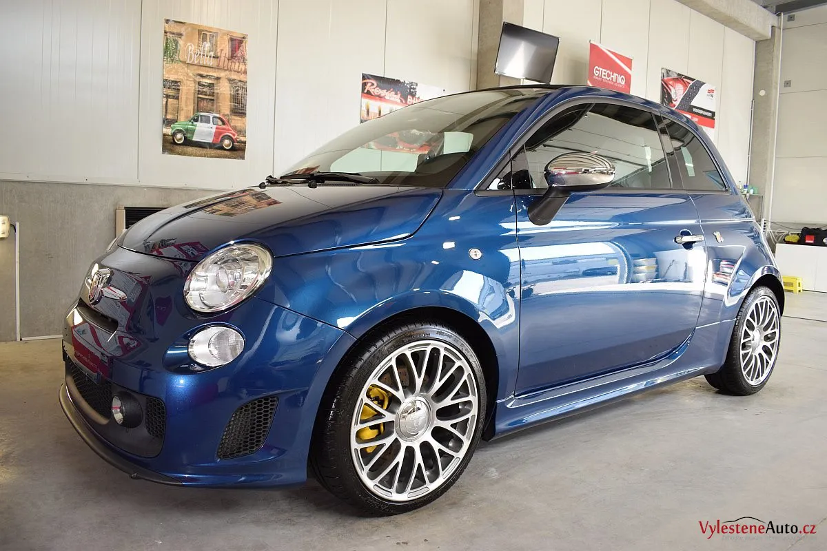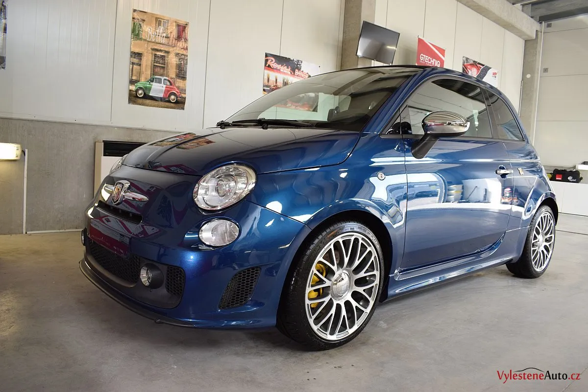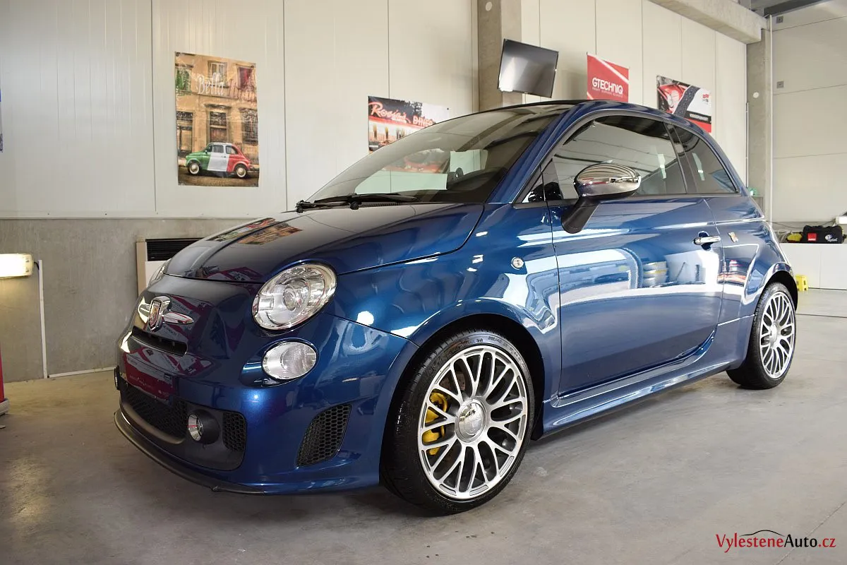 Nádherný maličký Fiat 500 v úpravě Abarth - 160 divoce prskajících koní, výfuk Akrapovič, velké brzdy, podvozek KONI a spousta italských vlajek všude po karosérii i interiéru - jedním slovem nádhera :-)