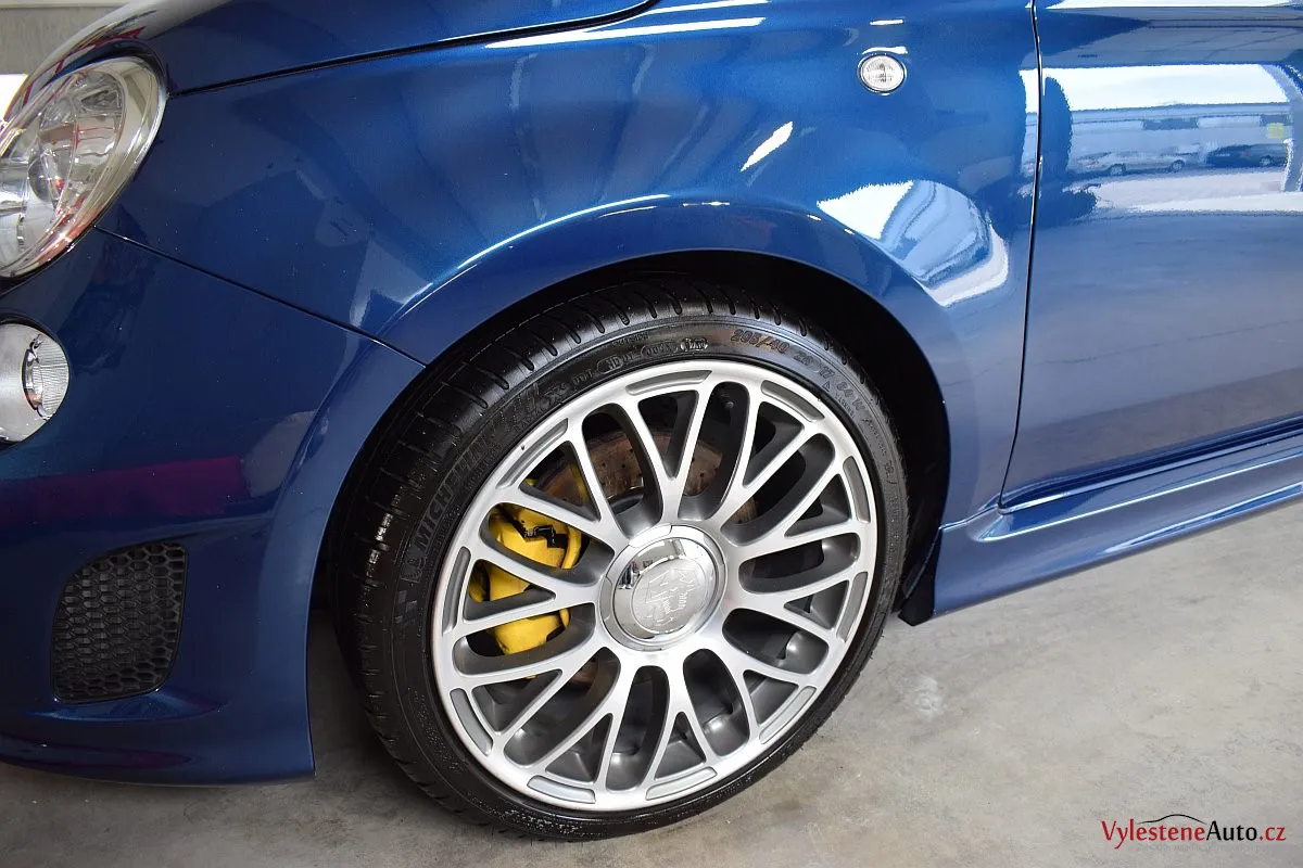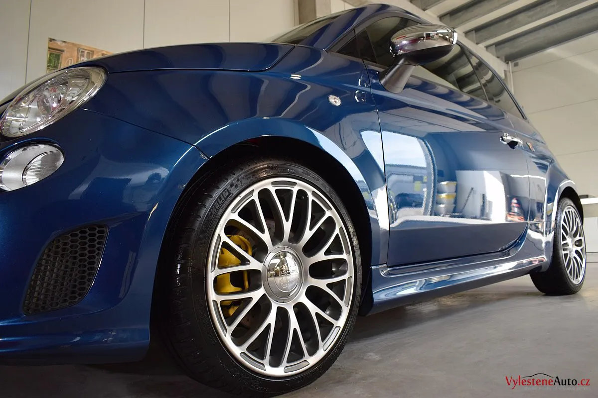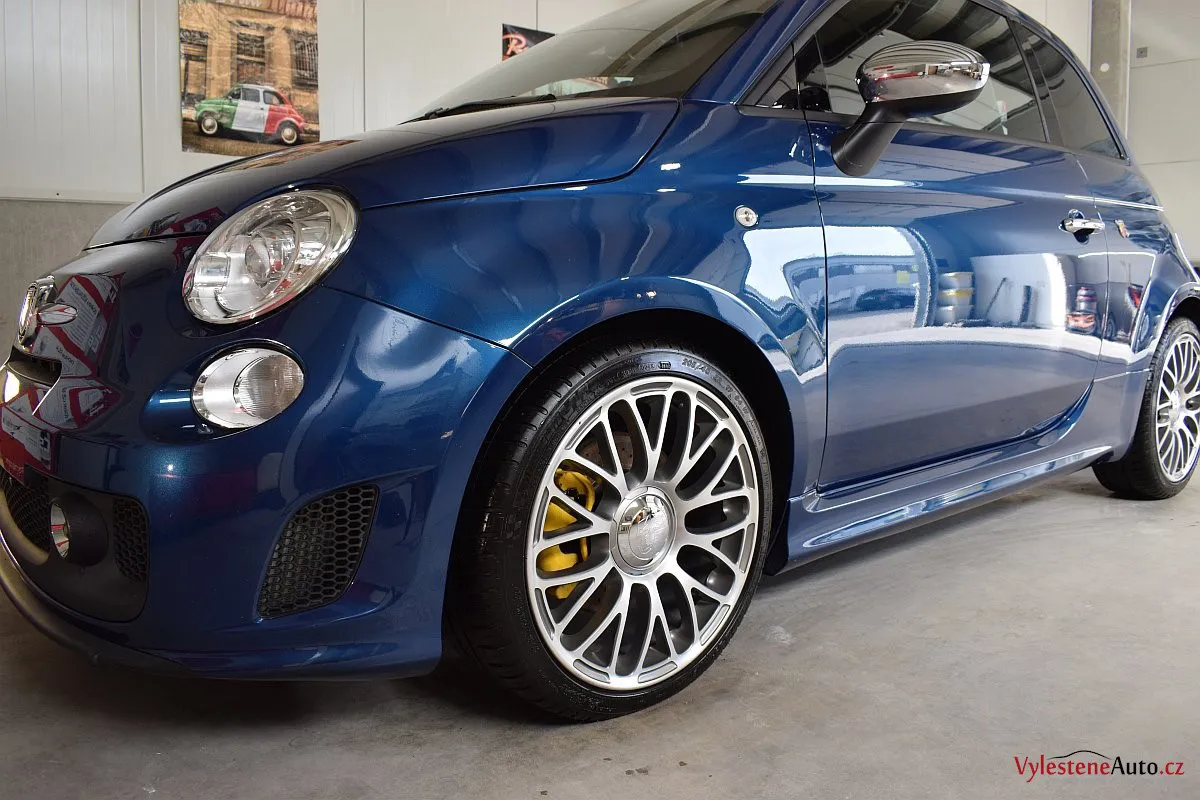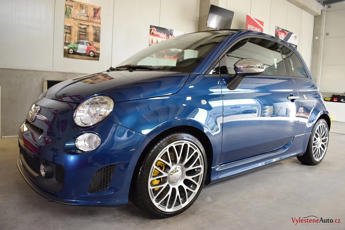 Nádherný maličký Fiat 500 v úpravě Abarth - 160 divoce prskajících koní, výfuk Akrapovič, velké brzdy, podvozek KONI a spousta italských vlajek všude po karosérii i interiéru - jedním slovem nádhera :-)