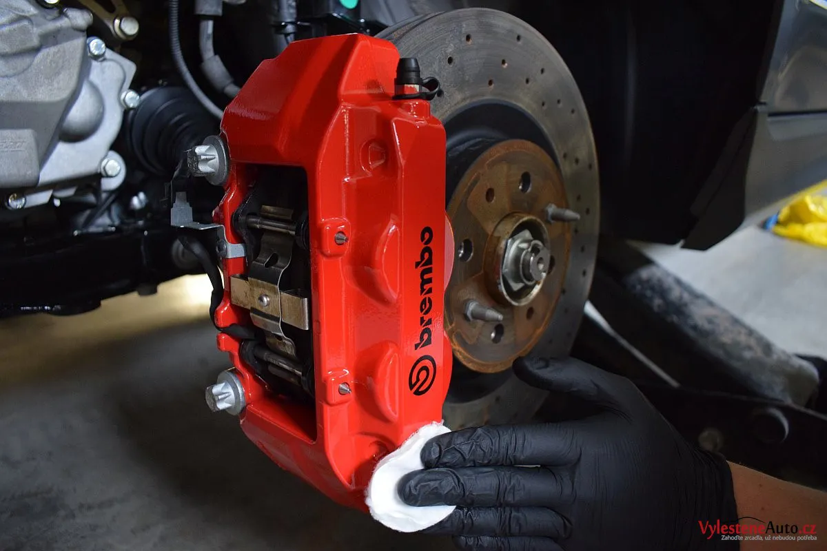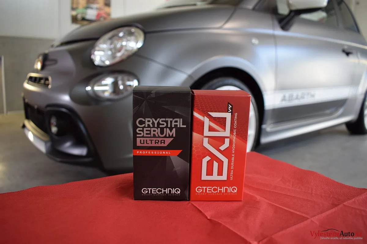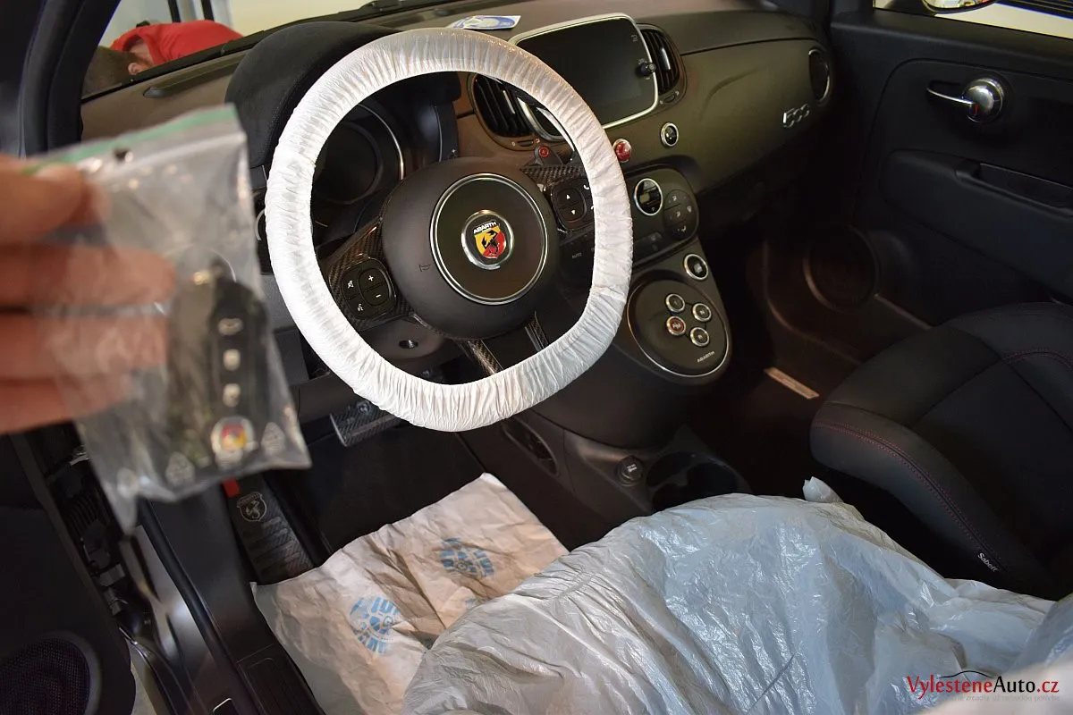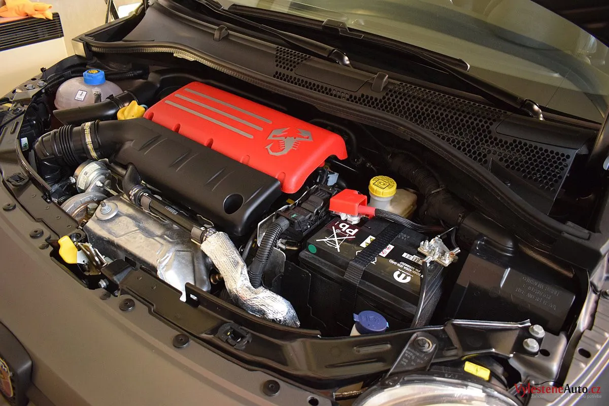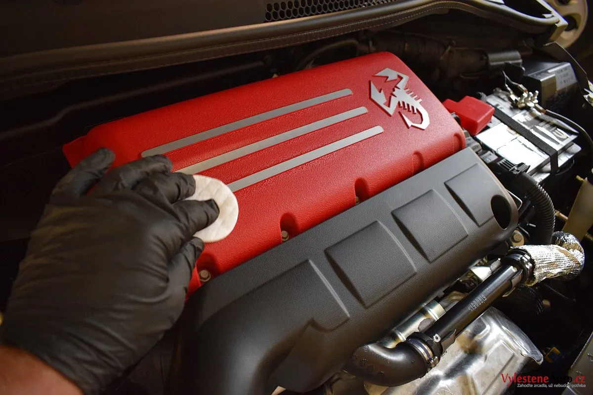 Abarth u nás prošel komplexní nanokeramickou ochranou - kromě karoserie jsme nanokeramikou Gtechniq ošetřili litá kola, brzdové třmeny, výfuk a koncovky, skla, zrcátka, zádveří, plastové díly, víčko nádrže, motor, spodní stranu kapoty, SPZ i klíček.