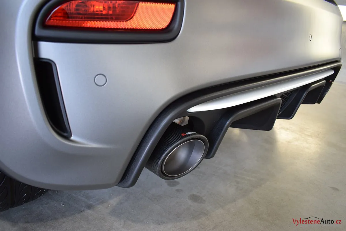Nádherný kousek, poskládaný z toho nejlepšího - turbomotor o výkonu 180 koní, tlumiče Koni, pružiny Eibach, litá kola Mopar, vrtané brzdy Brembo, výfuky Akrapovič a mnoho dalšího. To celé zabalené ve speciálním matném laku.