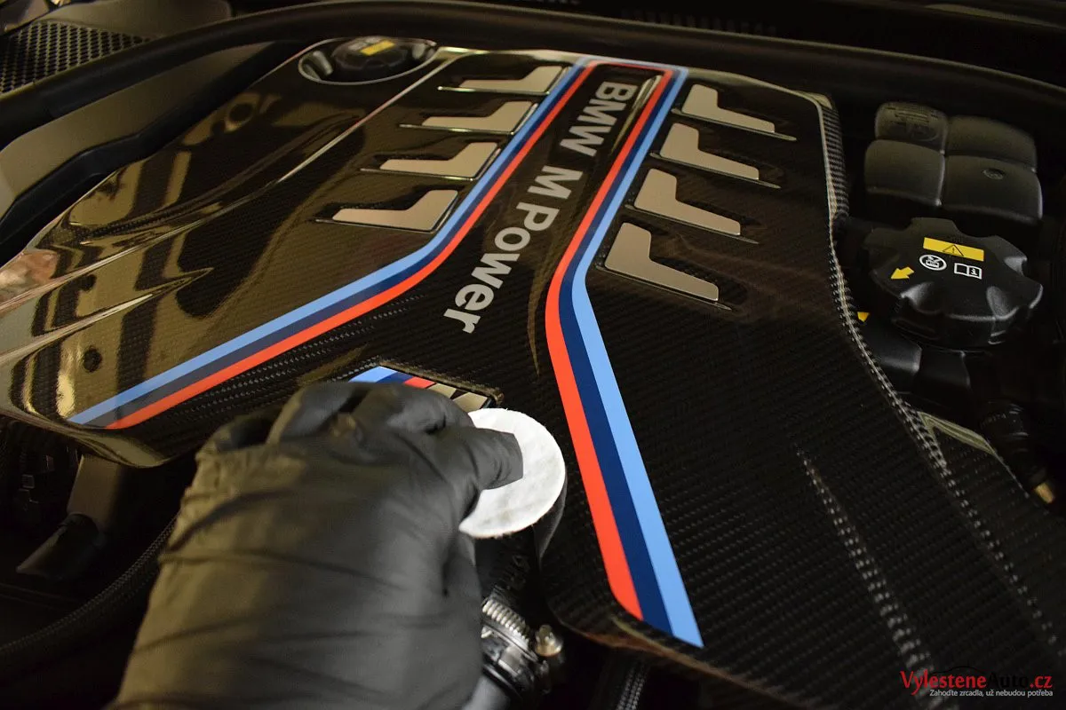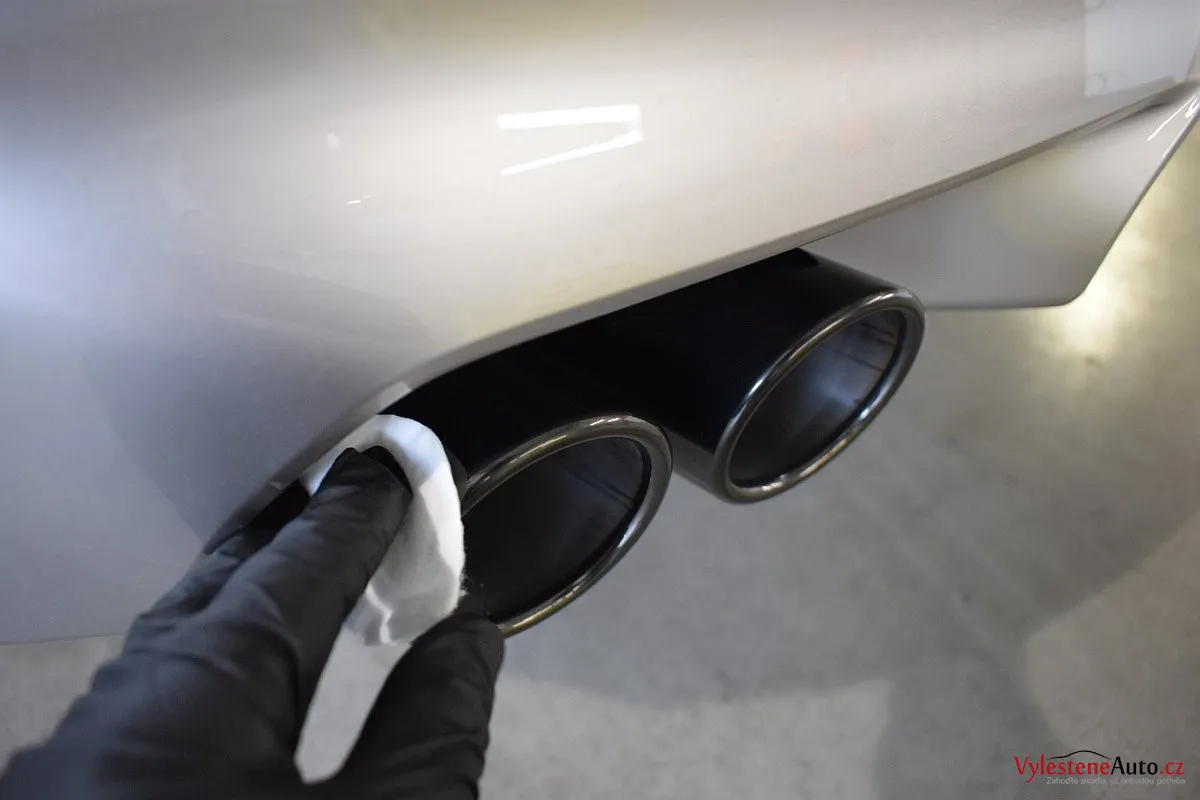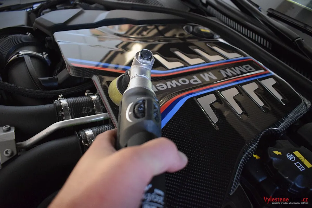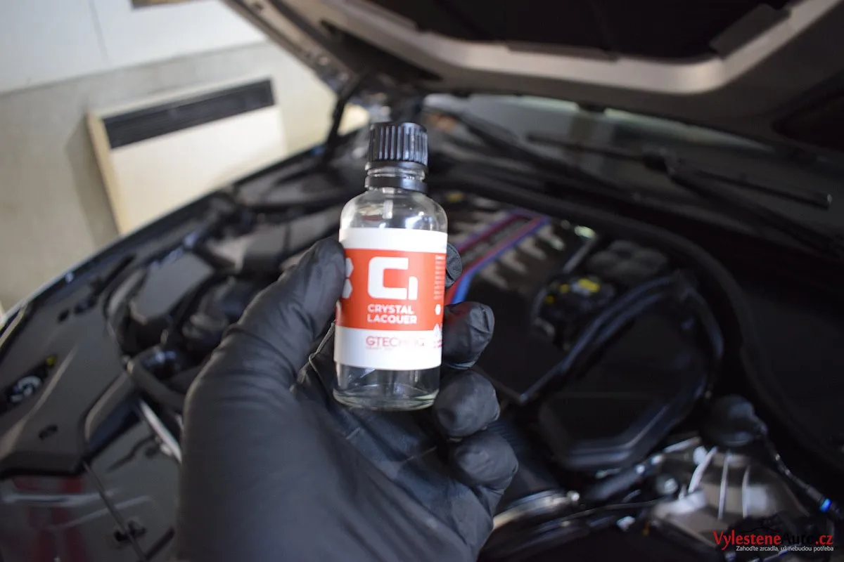 Díky našemu doplňkovému nanokeramickému balíčku se ošetření dočkala také litá kola, brzdové třmeny, všechna skla, zrcátka, plastové díly, zádveří, motor, spodní strana kapoty, víčko nádrže, tlumiče výfuku, klíček i SPZ.