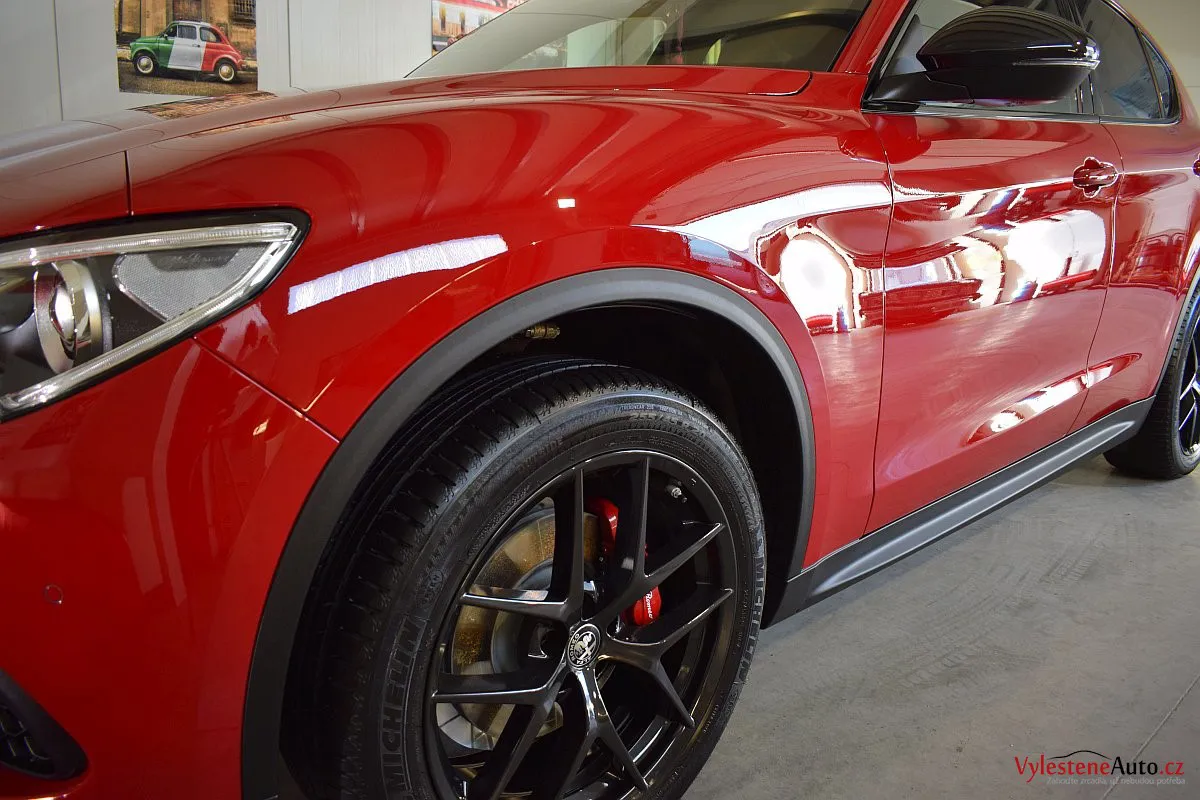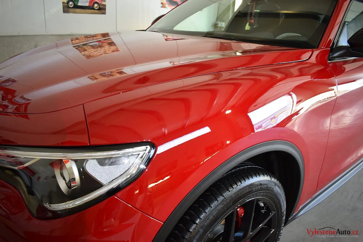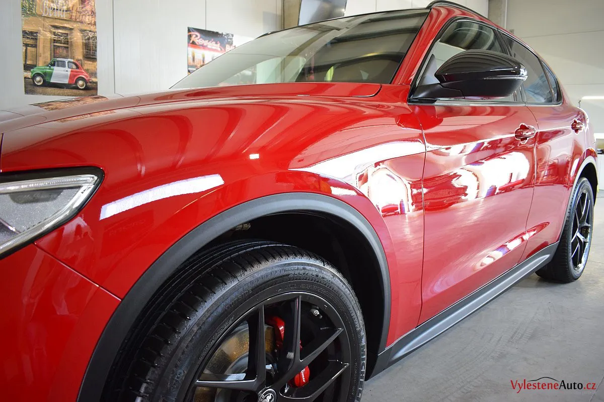 Zbrusu nová Alfička byla "domazlena" čtyřmi různými finišovacími leštěnkami a na závěr ošetřena špičkovou nanokeramikou od Gtechniq.