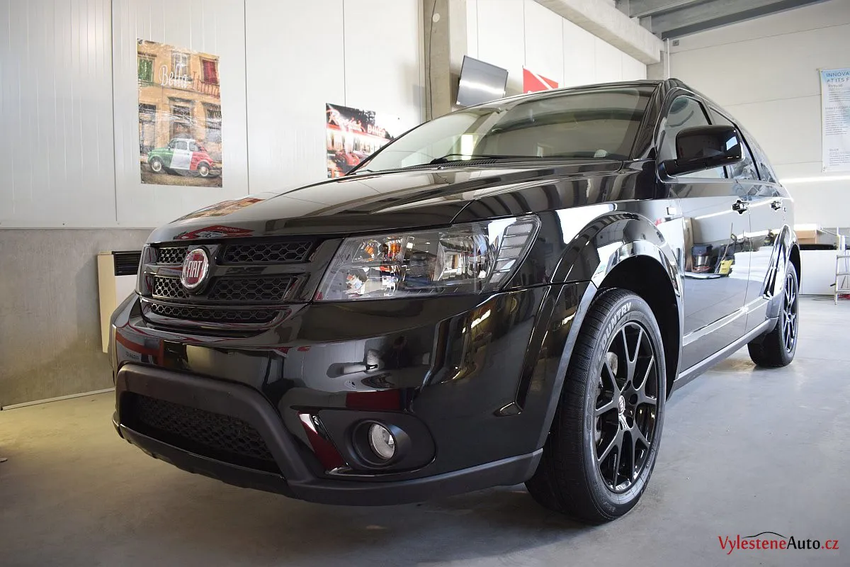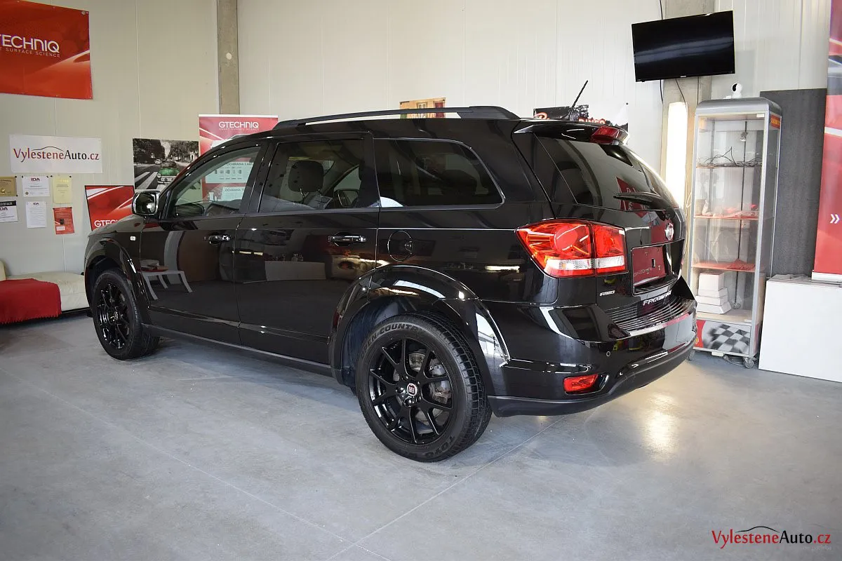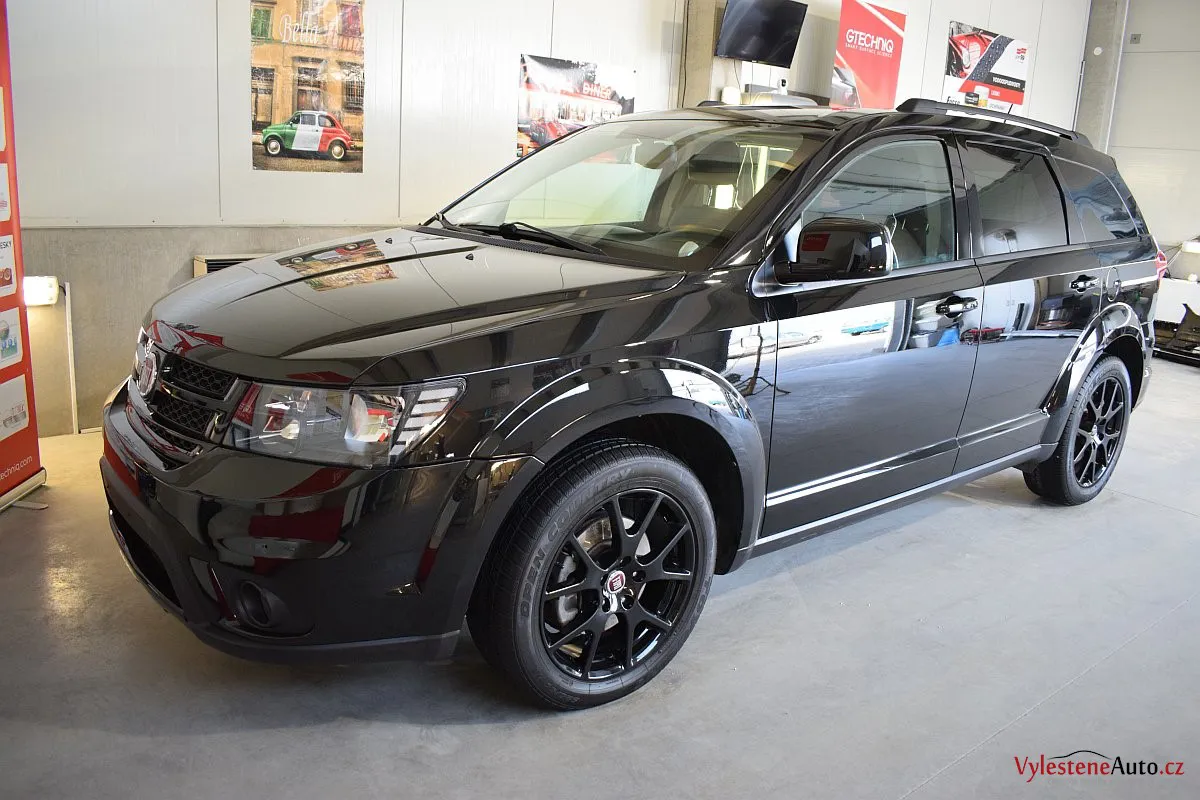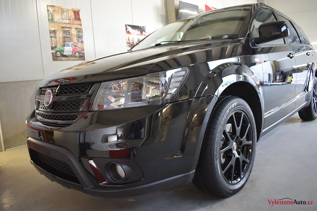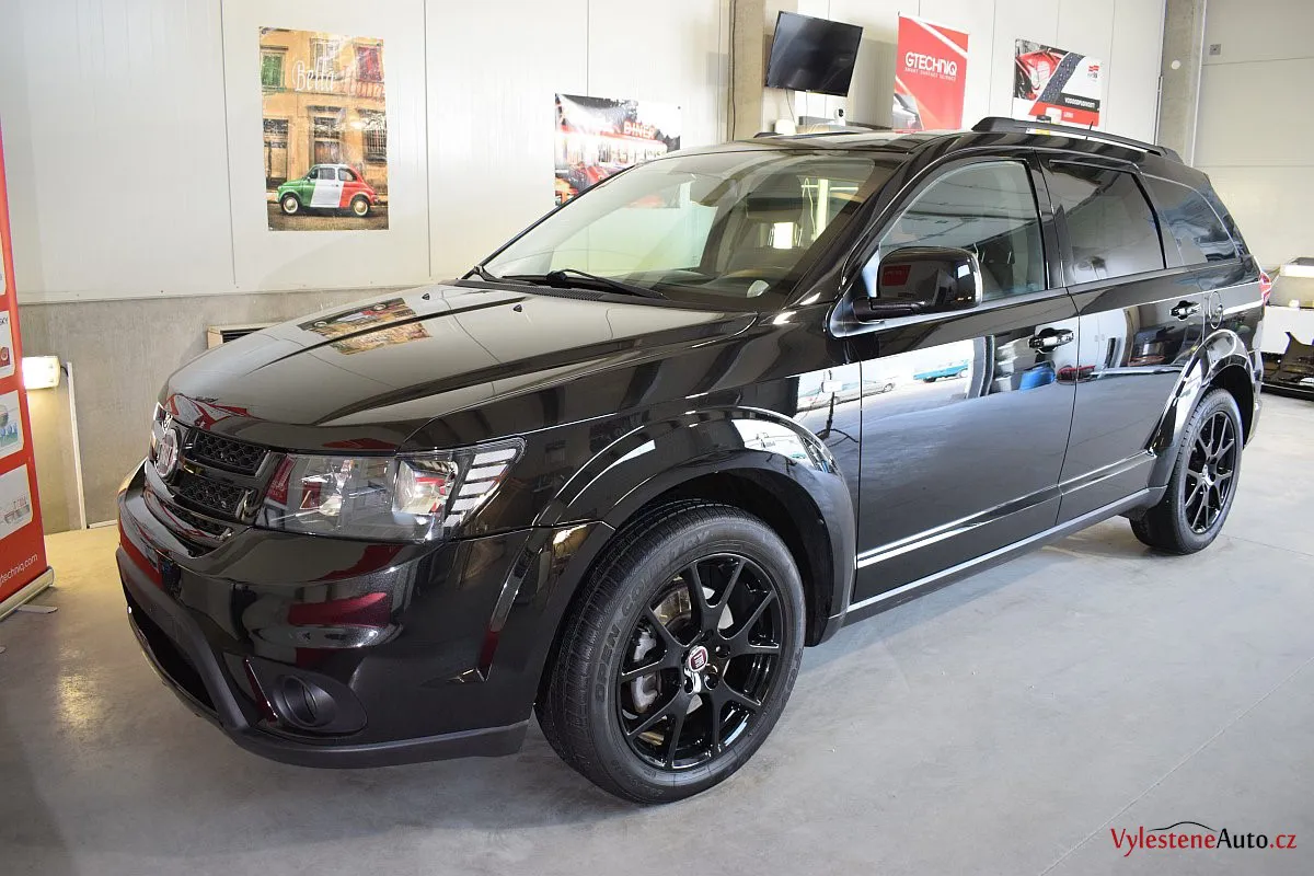 Fiat Freemont, nalakovaný černou perleťovou metalízou - poměrně velký rodinný stroj, poháněný motorem JTD spojeným s automatickou převodovkou.