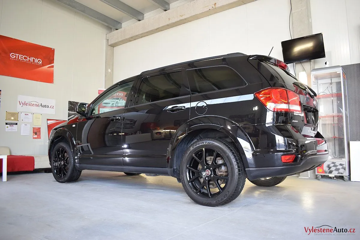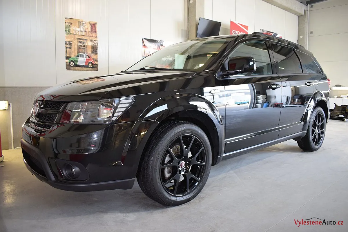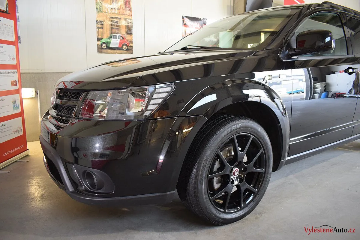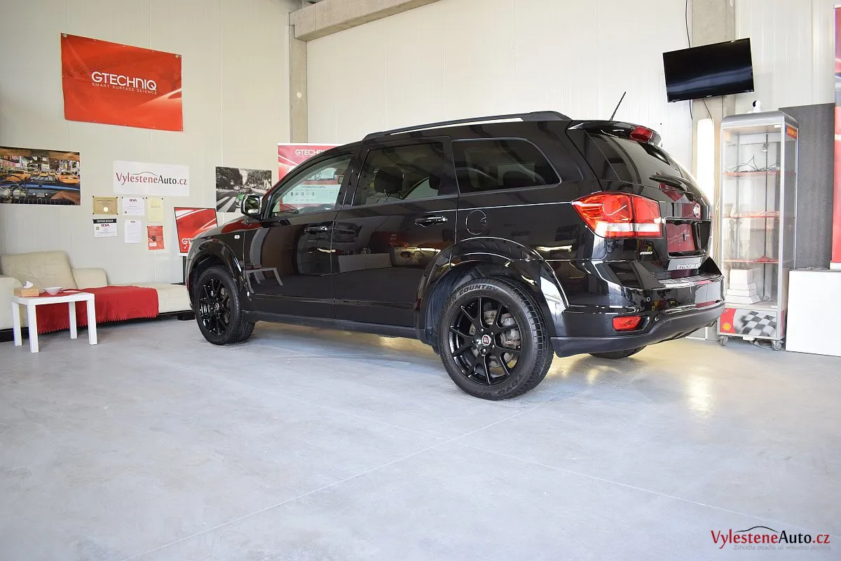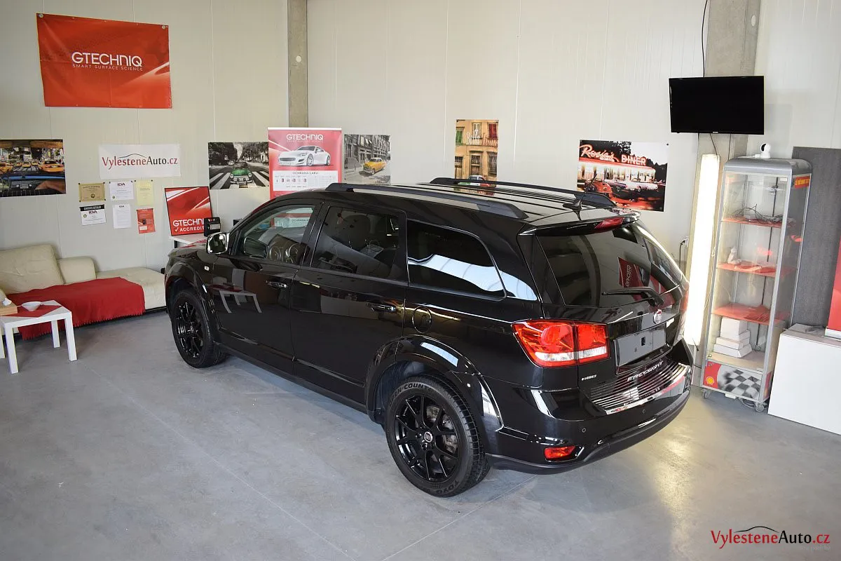 Fiat Freemont, nalakovaný černou perleťovou metalízou - poměrně velký rodinný stroj, poháněný motorem JTD spojeným s automatickou převodovkou.