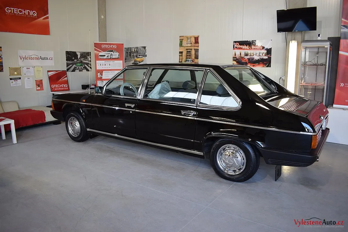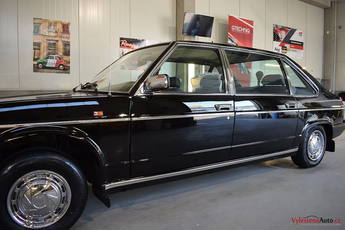 Jako třeba tahle nádherná, ručně vyráběná a o 150 mm prodloužená vládní verze Tatry 613 Special, se čtyřmístným uspořádáním interiéru, zvláštní výbavou a držáky na vlaječky v předních blatnících.