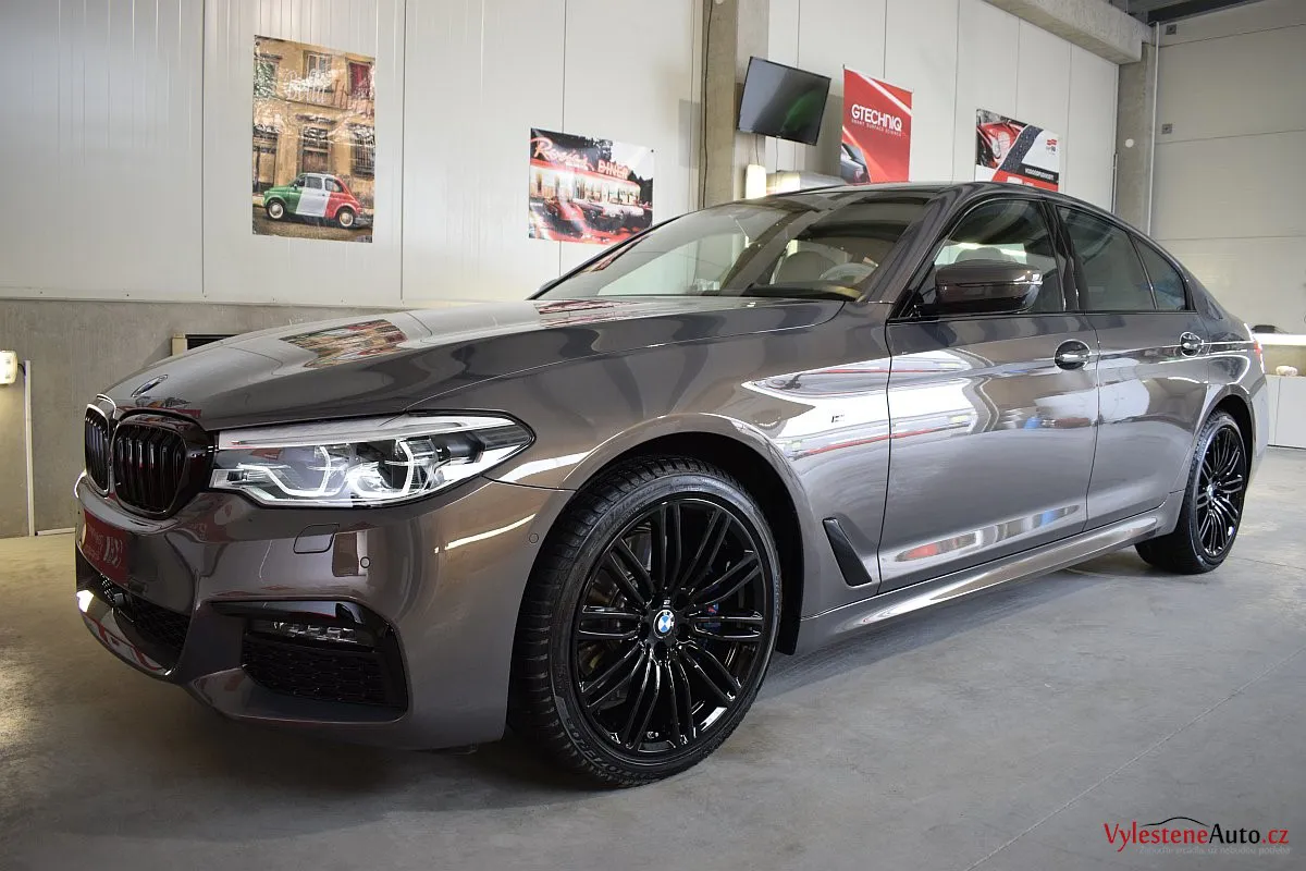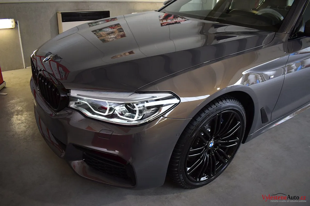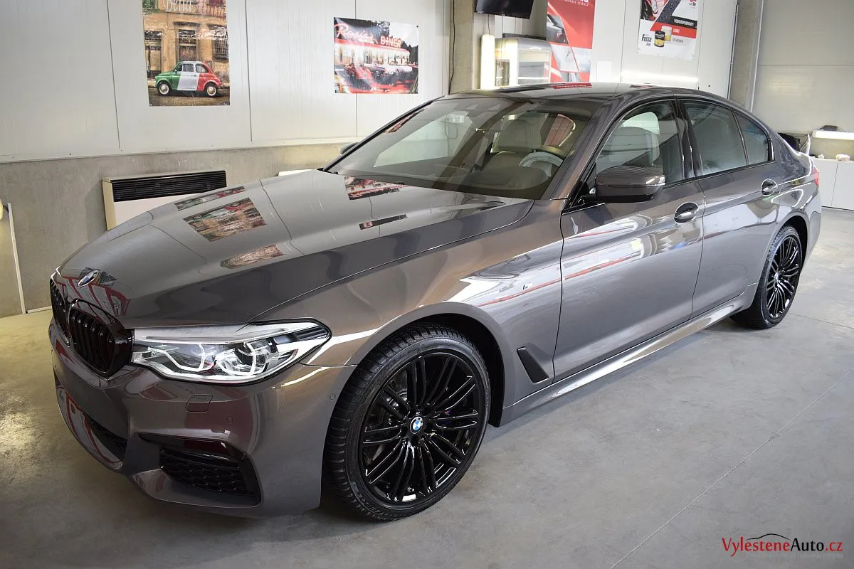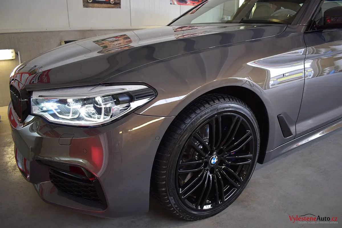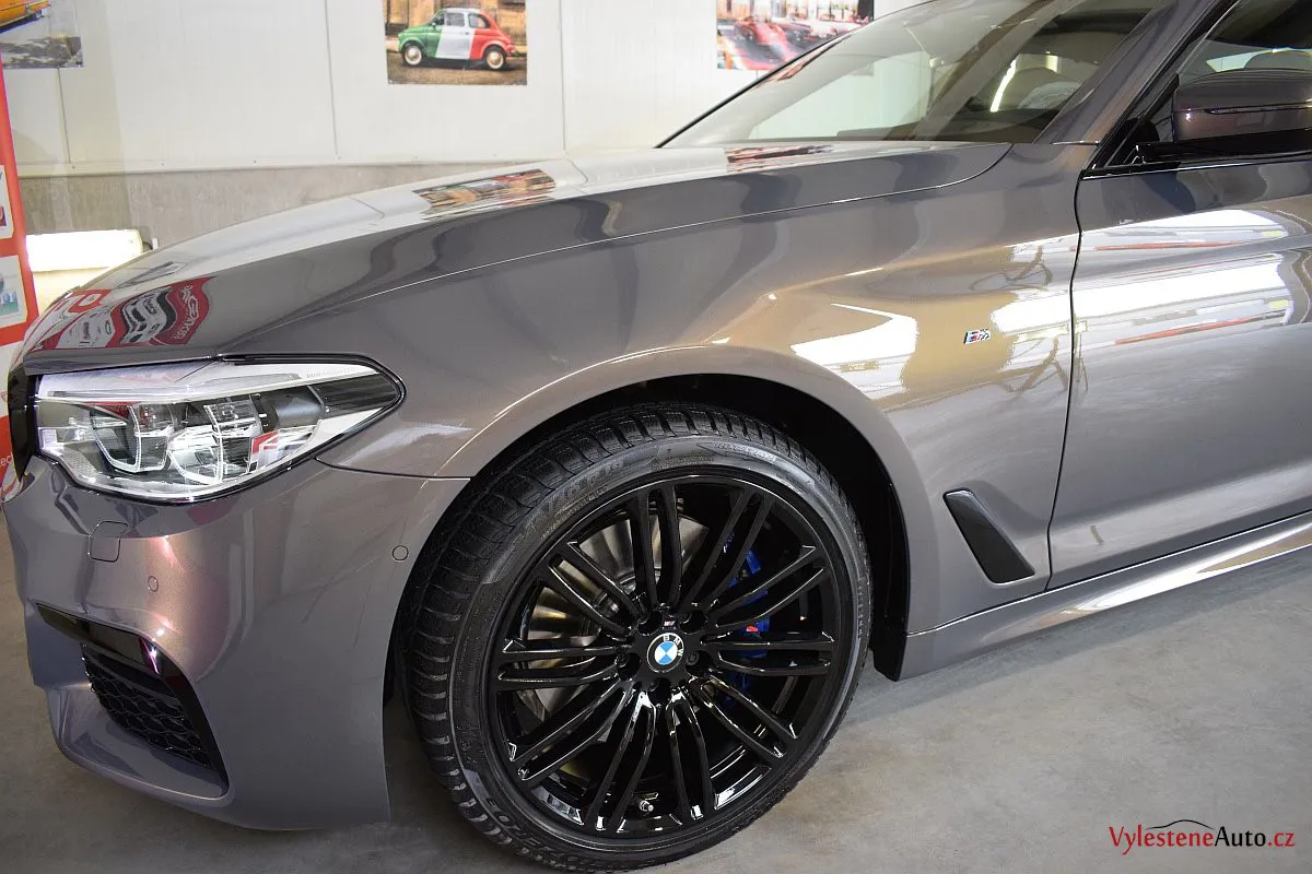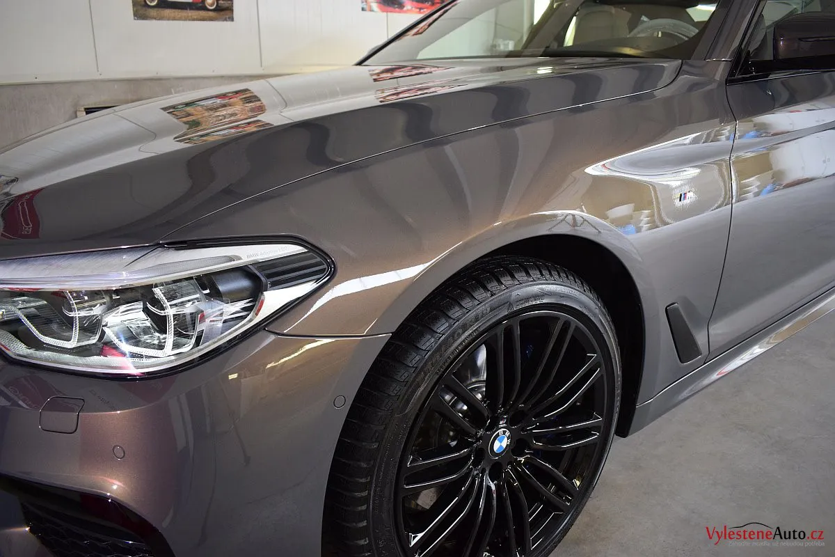Opravdu výjimečné, zbrusu nové, BMW 530d s bílým koženým interiérem, M paketem a hlavně naprosto úžasnou perleťovou metalízou, která se podle dopadu světla mění z šedé na fialovou. Údajně je to jediný vůz v této barvě v ČR.