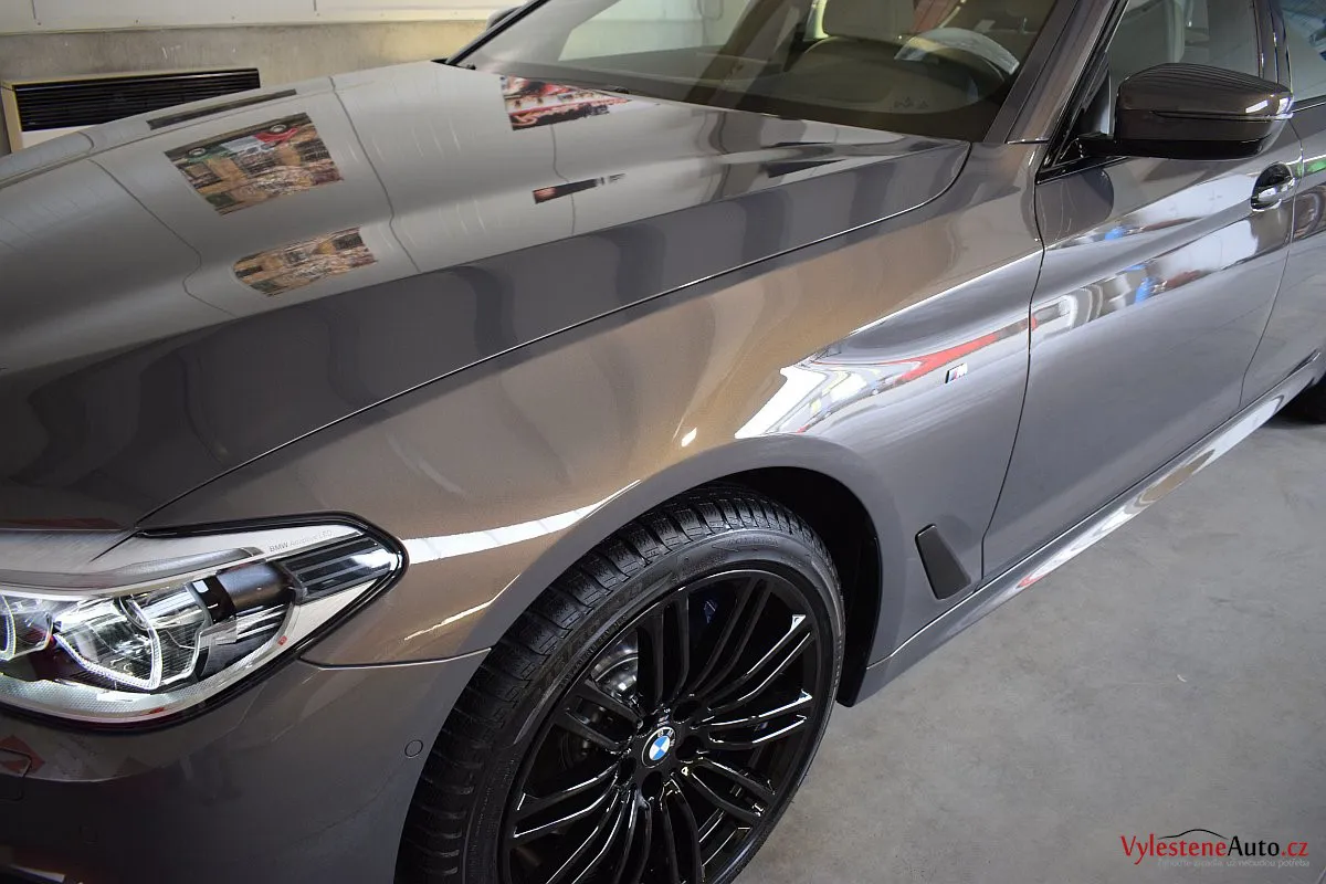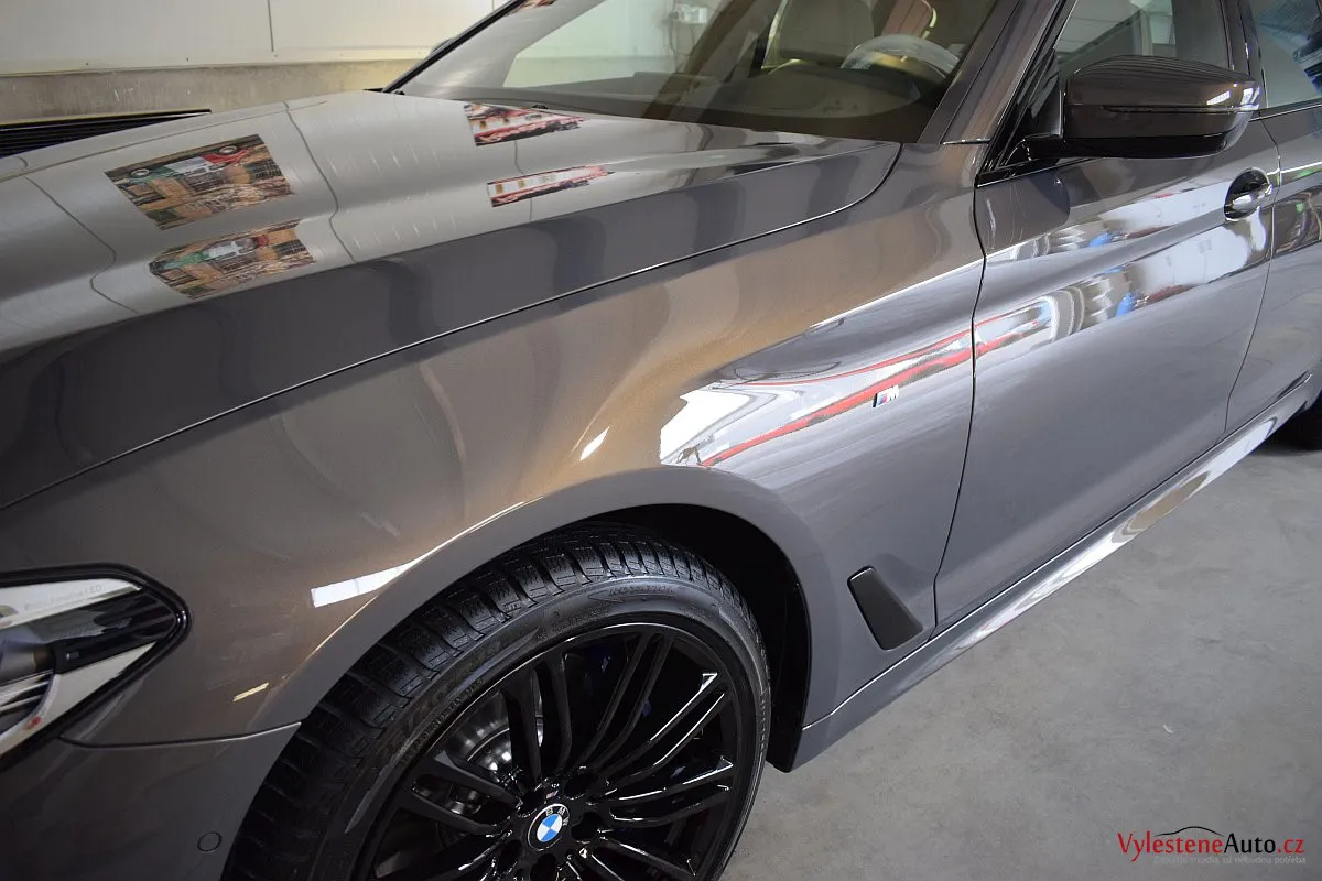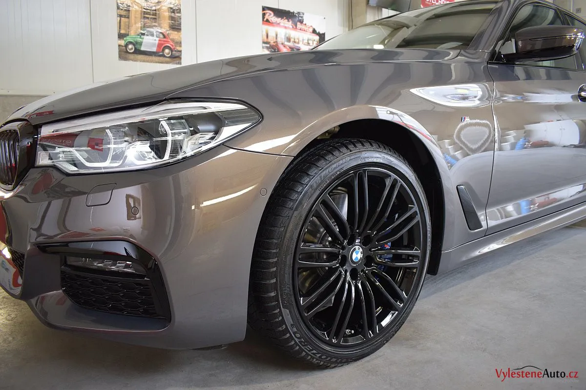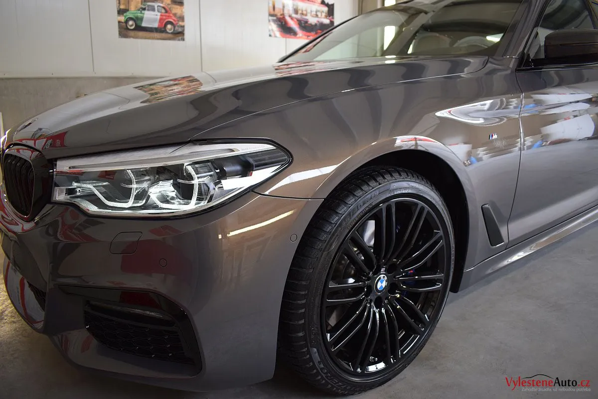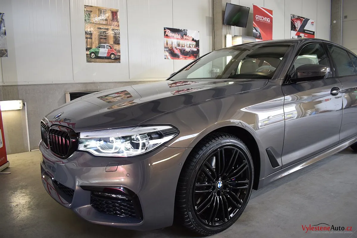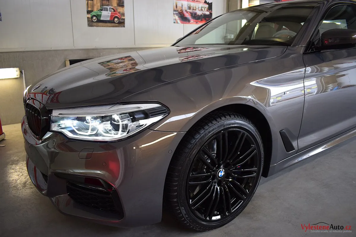 Opravdu výjimečné, zbrusu nové, BMW 530d s bílým koženým interiérem, M paketem a hlavně naprosto úžasnou perleťovou metalízou, která se podle dopadu světla mění z šedé na fialovou. Údajně je to jediný vůz v této barvě v ČR.