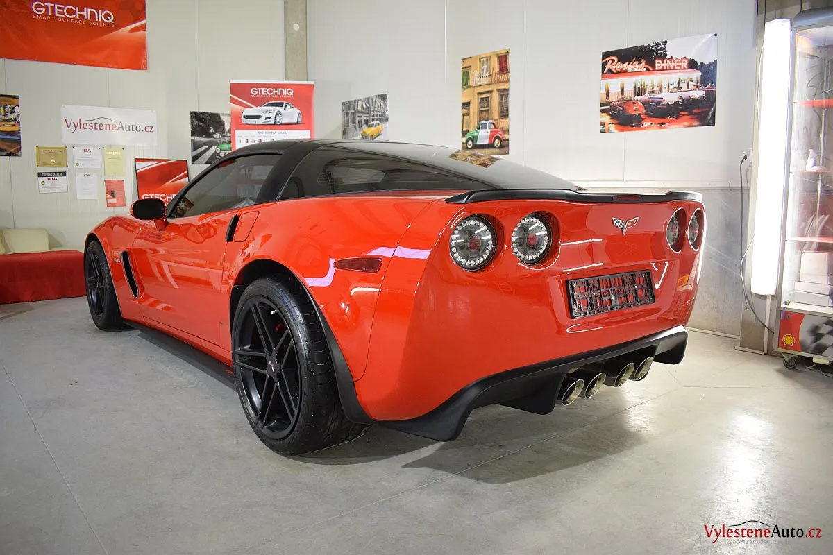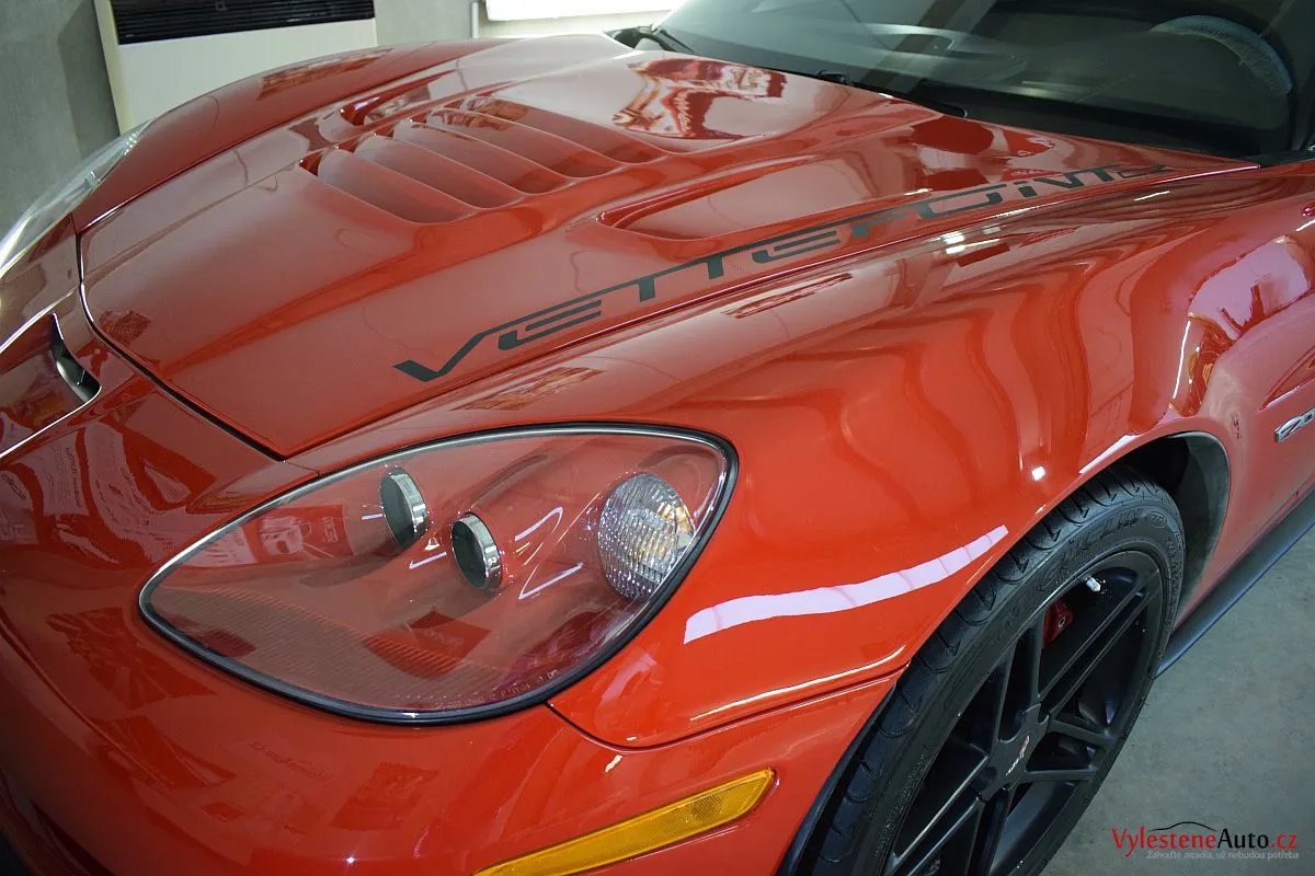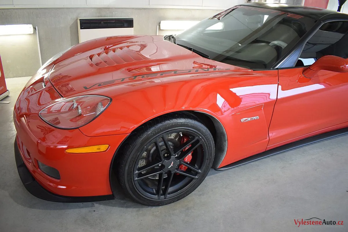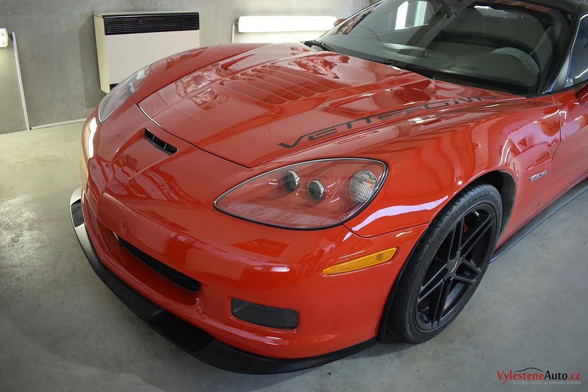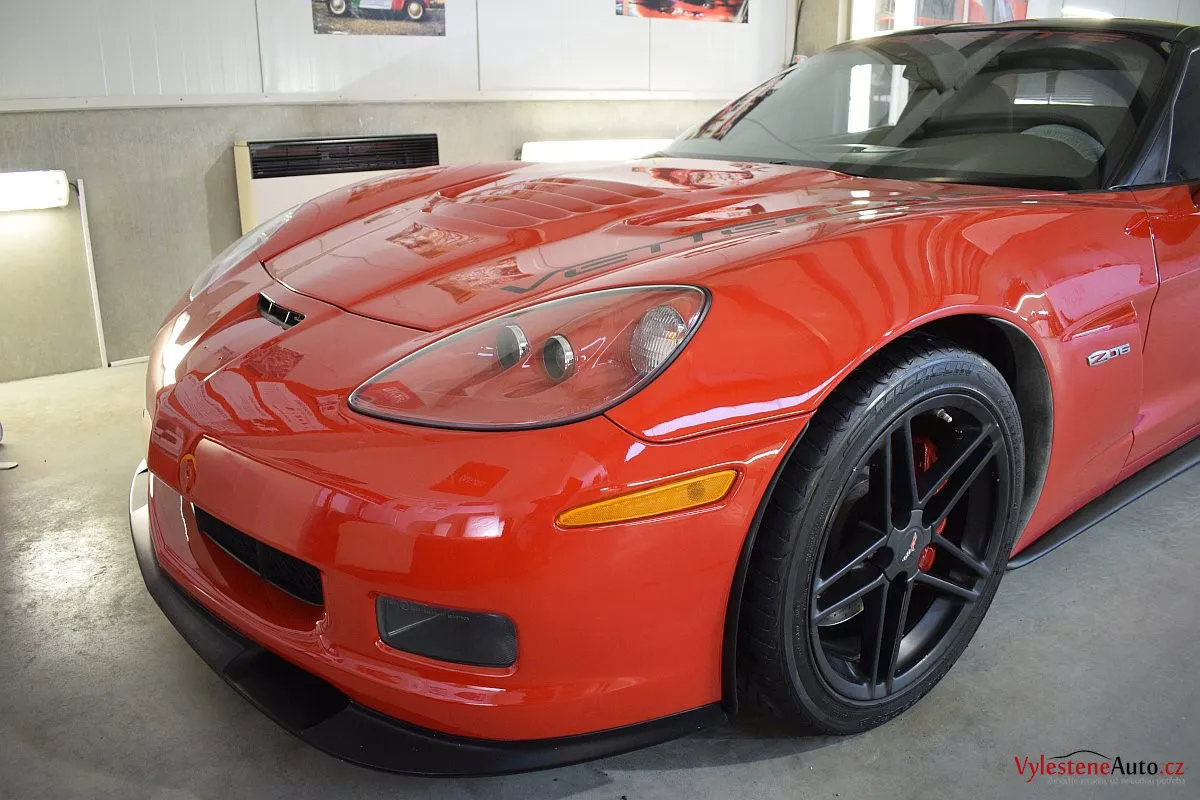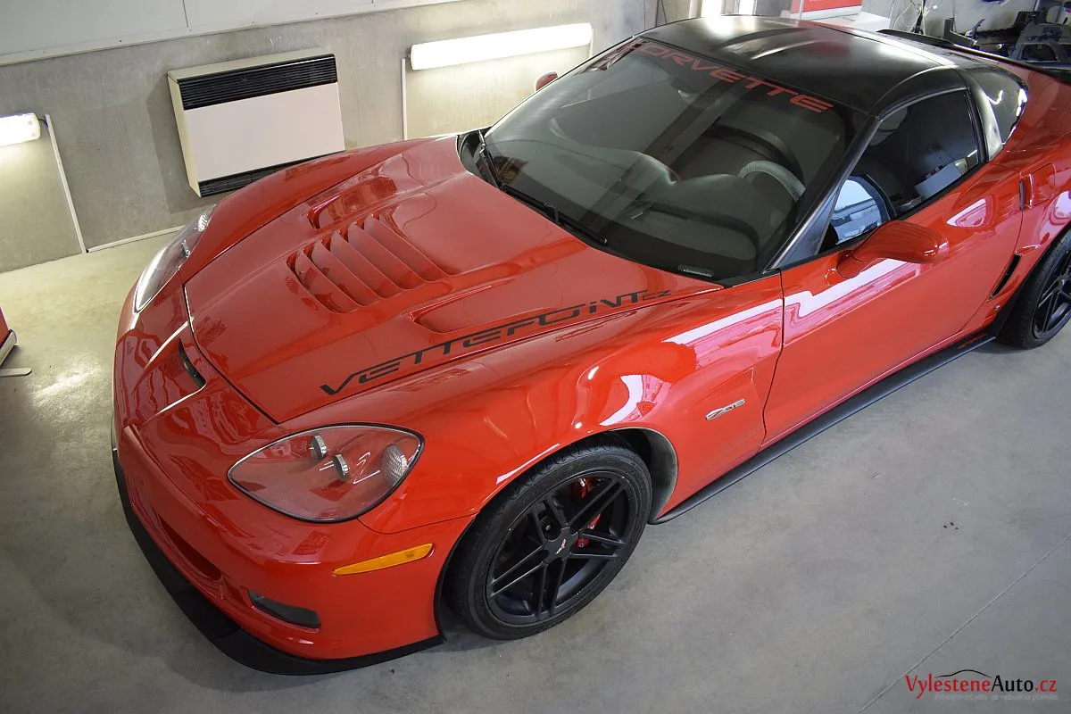 Corvette si k nám přijela pro pečlivou dekontaminaci, vícekrokové leštění laku a aplikaci luxusních leštících olejů.