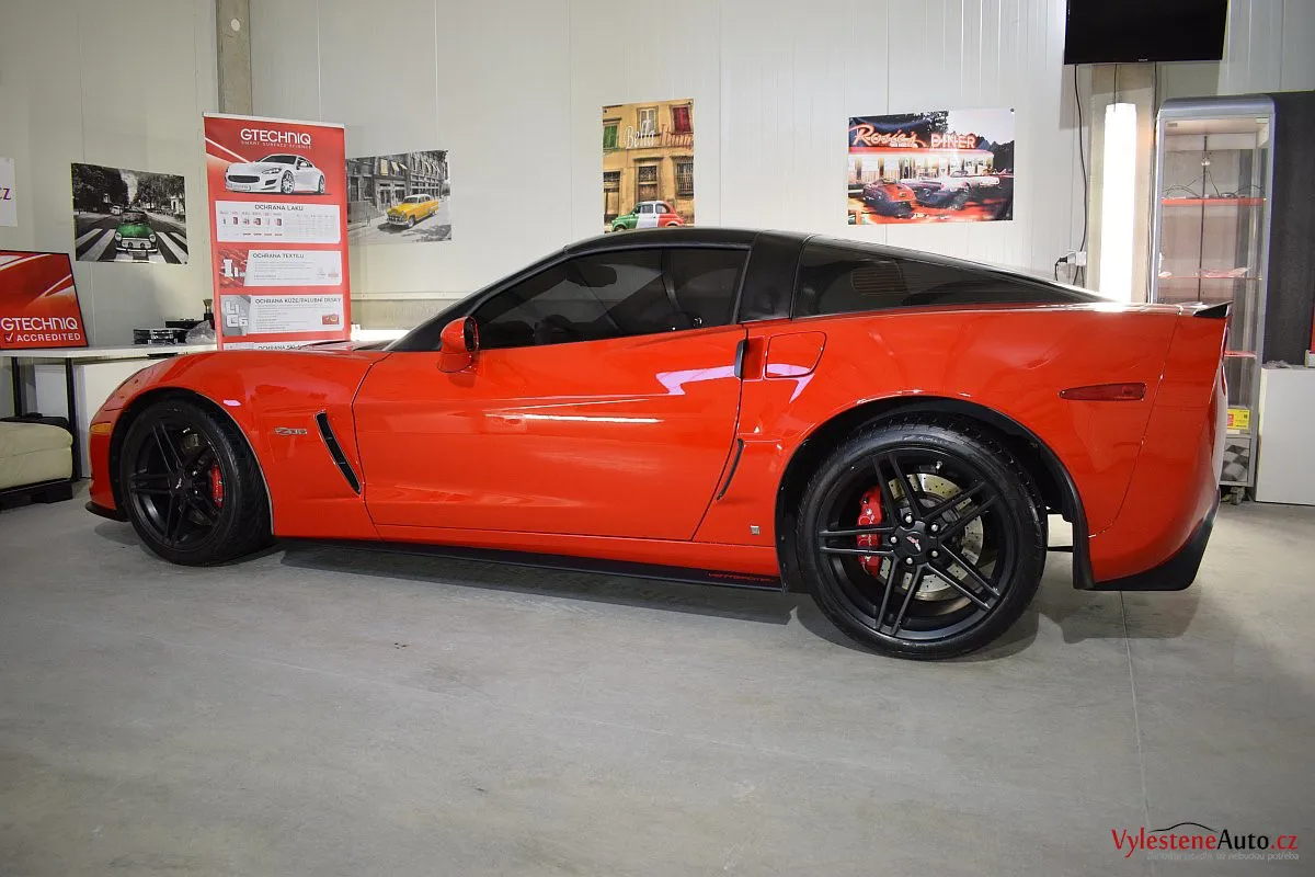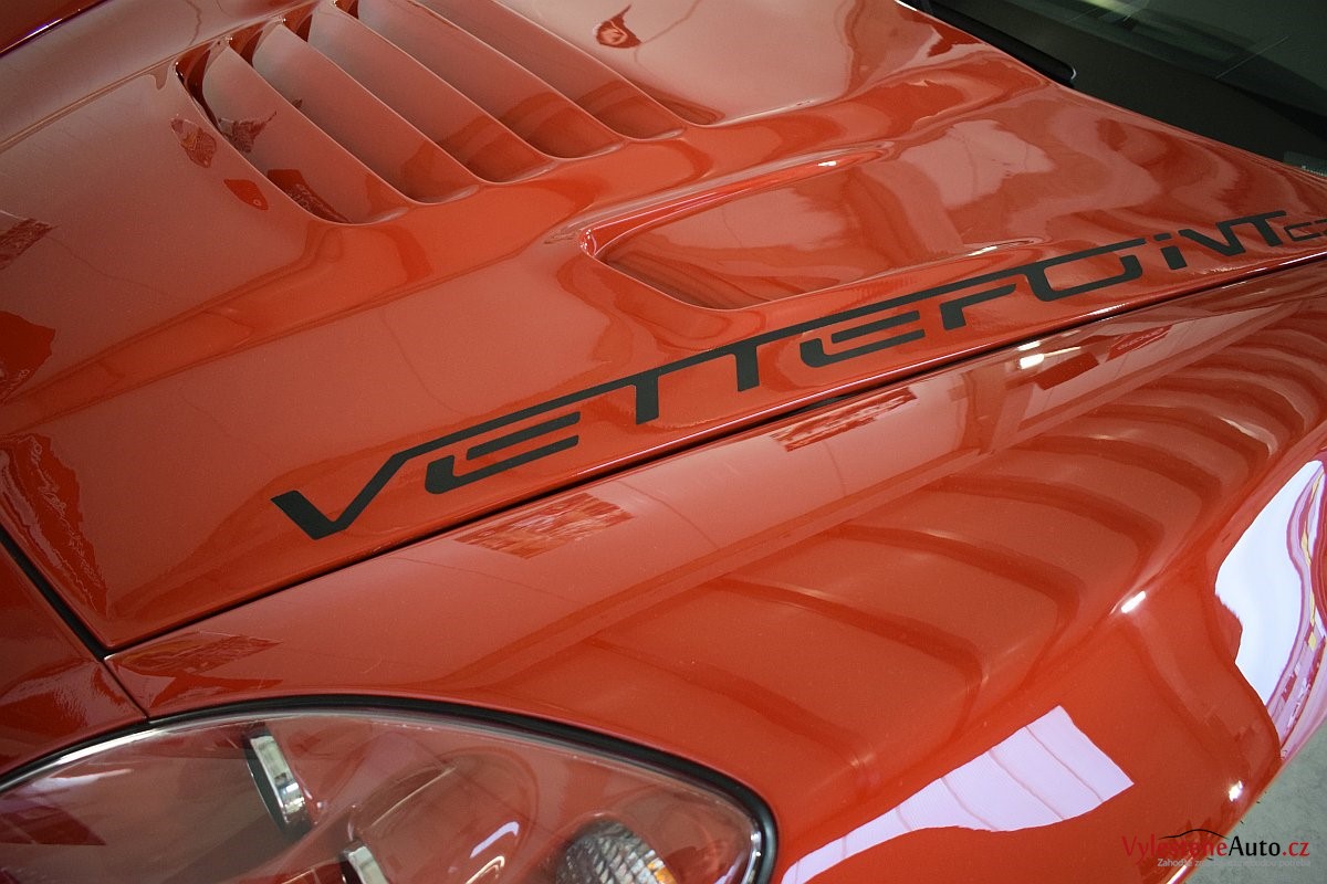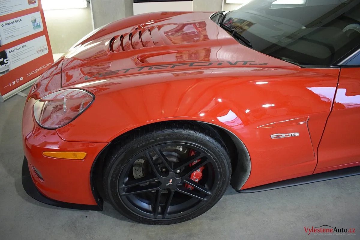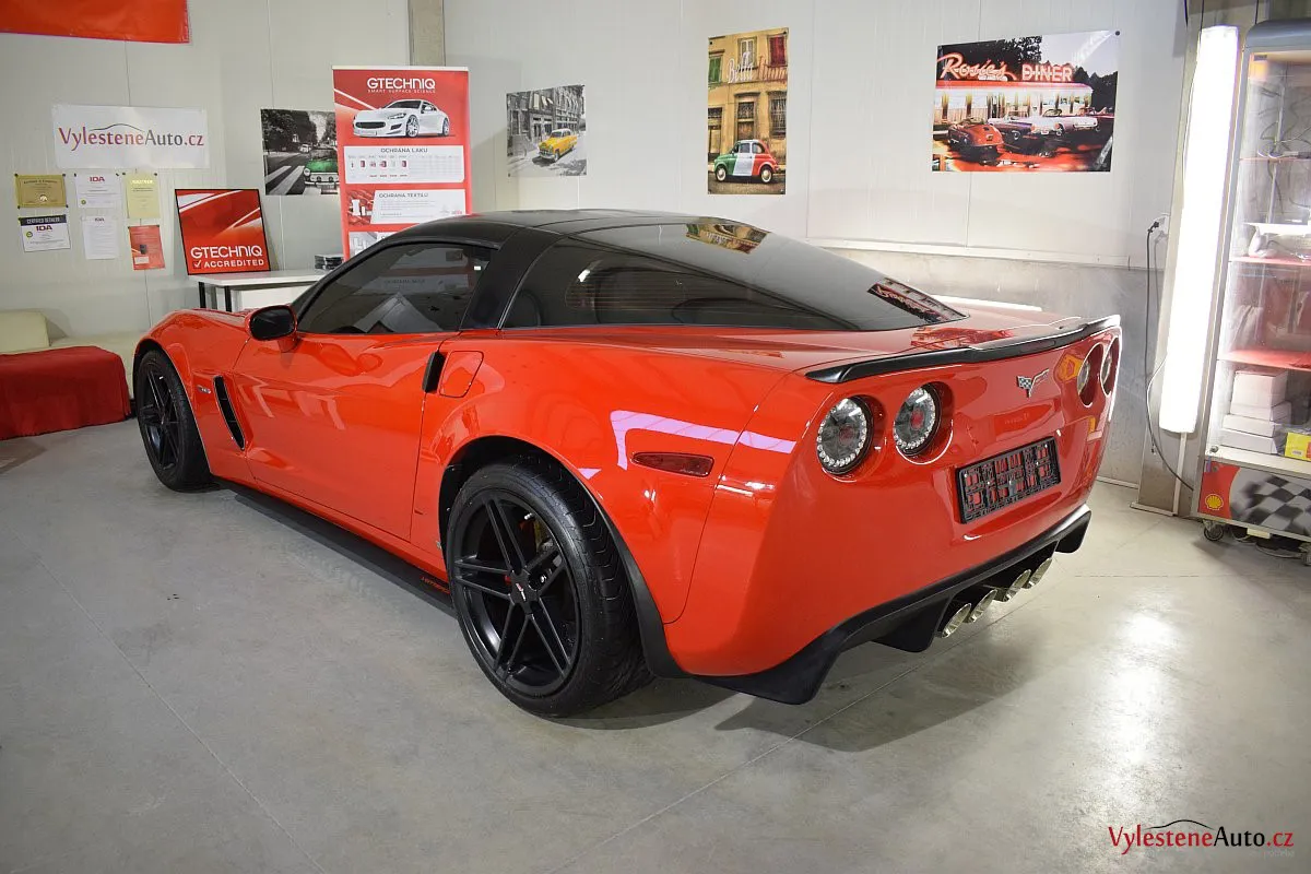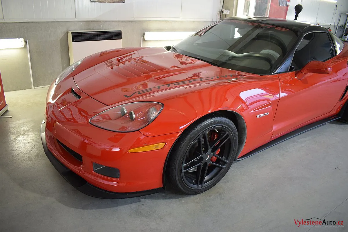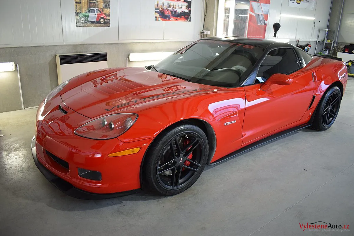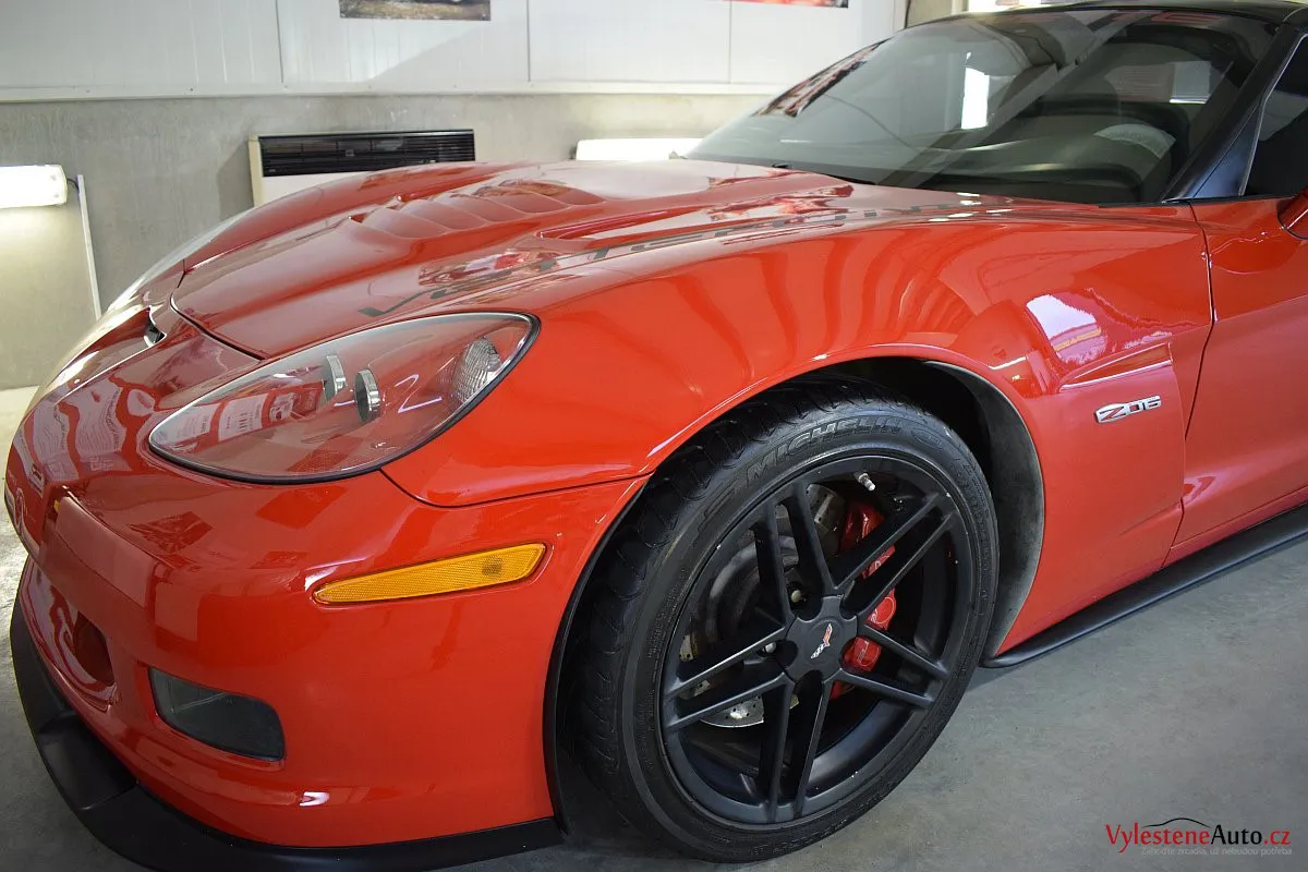 Corvette si k nám přijela pro pečlivou dekontaminaci, vícekrokové leštění laku a aplikaci luxusních leštících olejů.