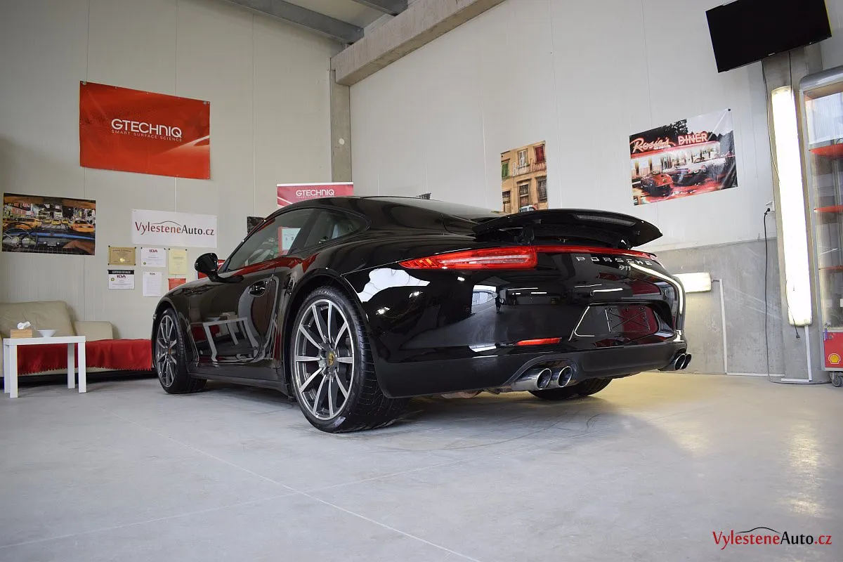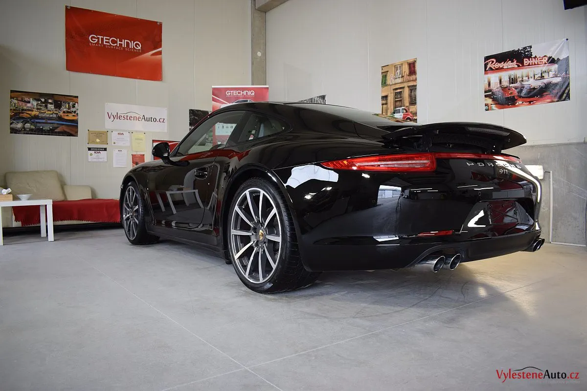 Porsche prostě není možné nemilovat... :-) Toto je černá 911 s klasickými křivkami, již vodou chlazeným motorem o obsahu 3.8, výkonem 400 koní a převodovkou PDK.