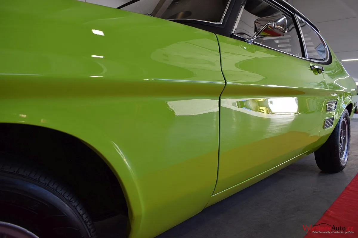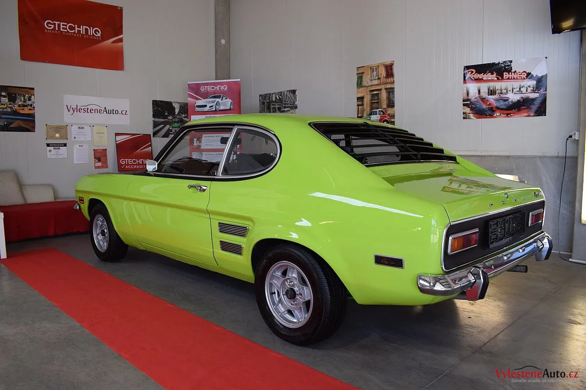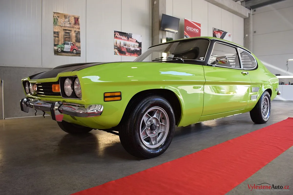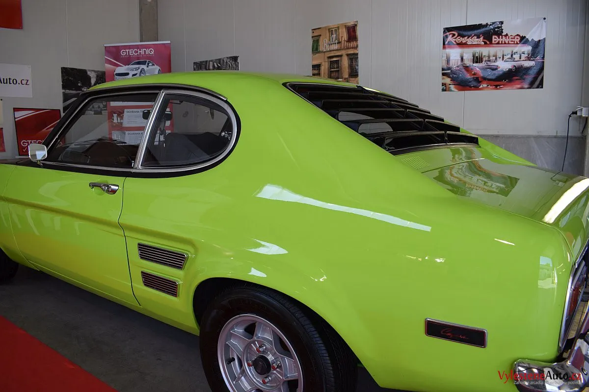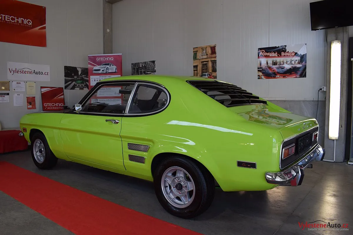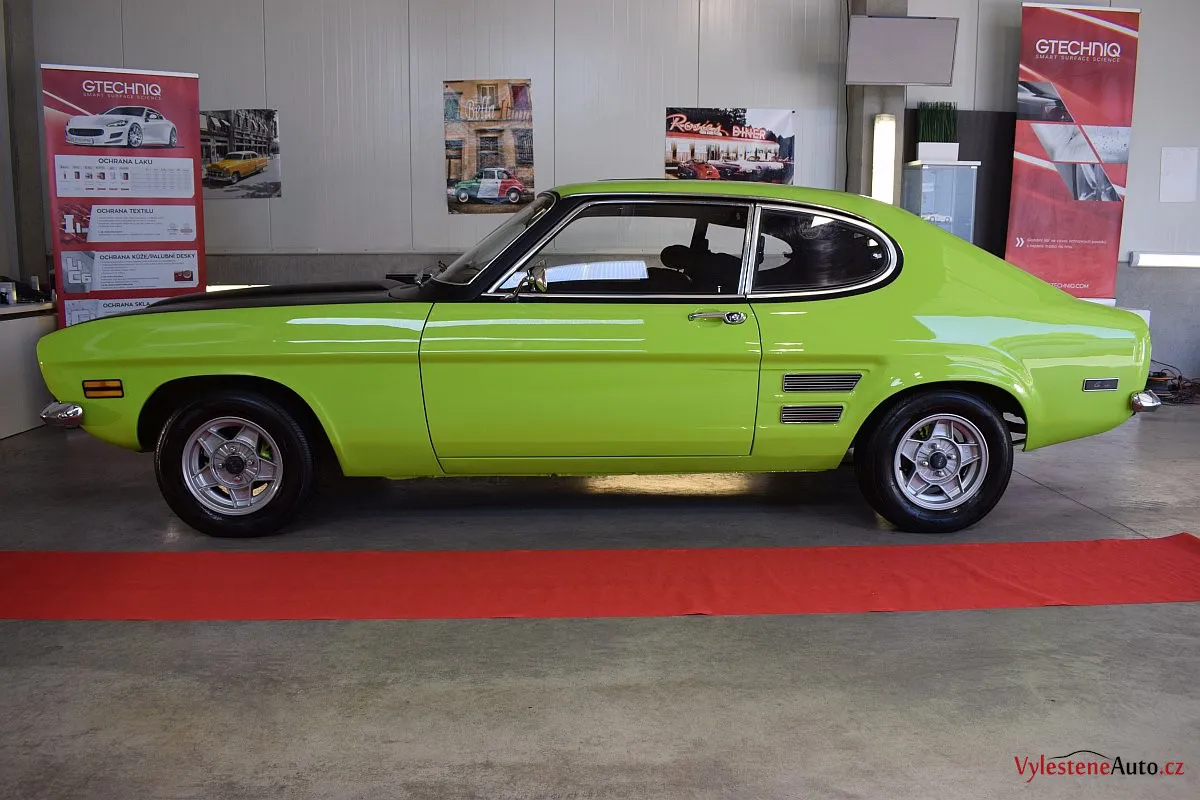 Krásně zelené kultovní kupátko Ford Capri GT s motorem 2.8 V6, dobovými koly ATS a dvěma výfuky. Toto Capri jsme si okamžitě zamilovali - je to opravdu stroj s obrovskou duší!
