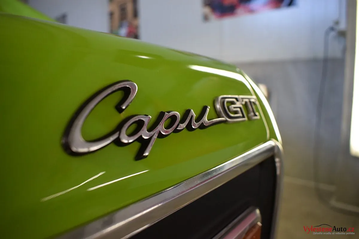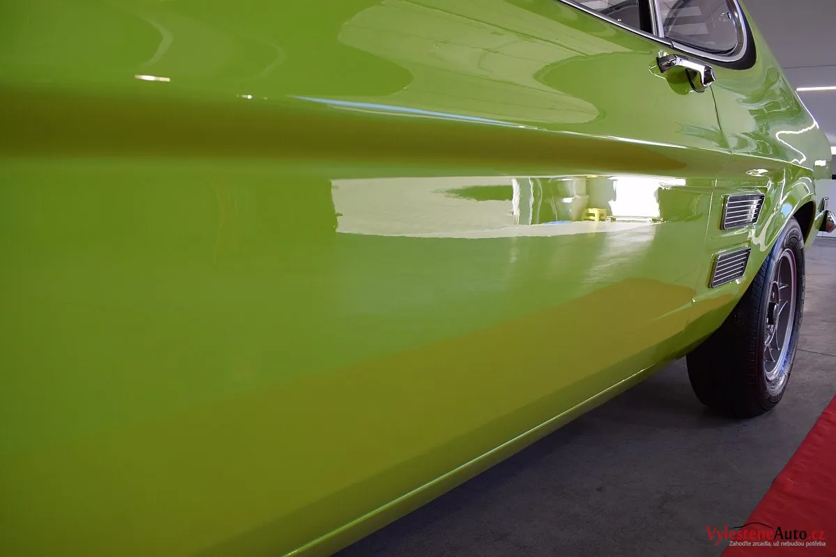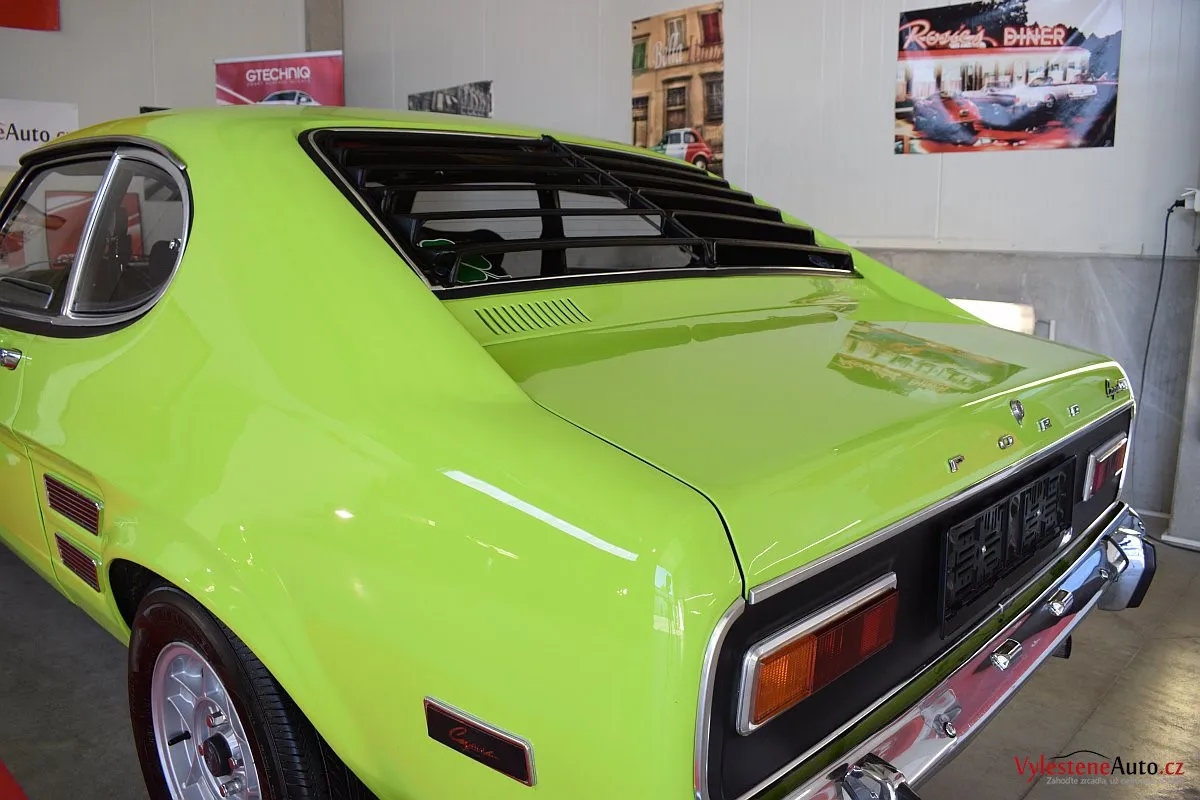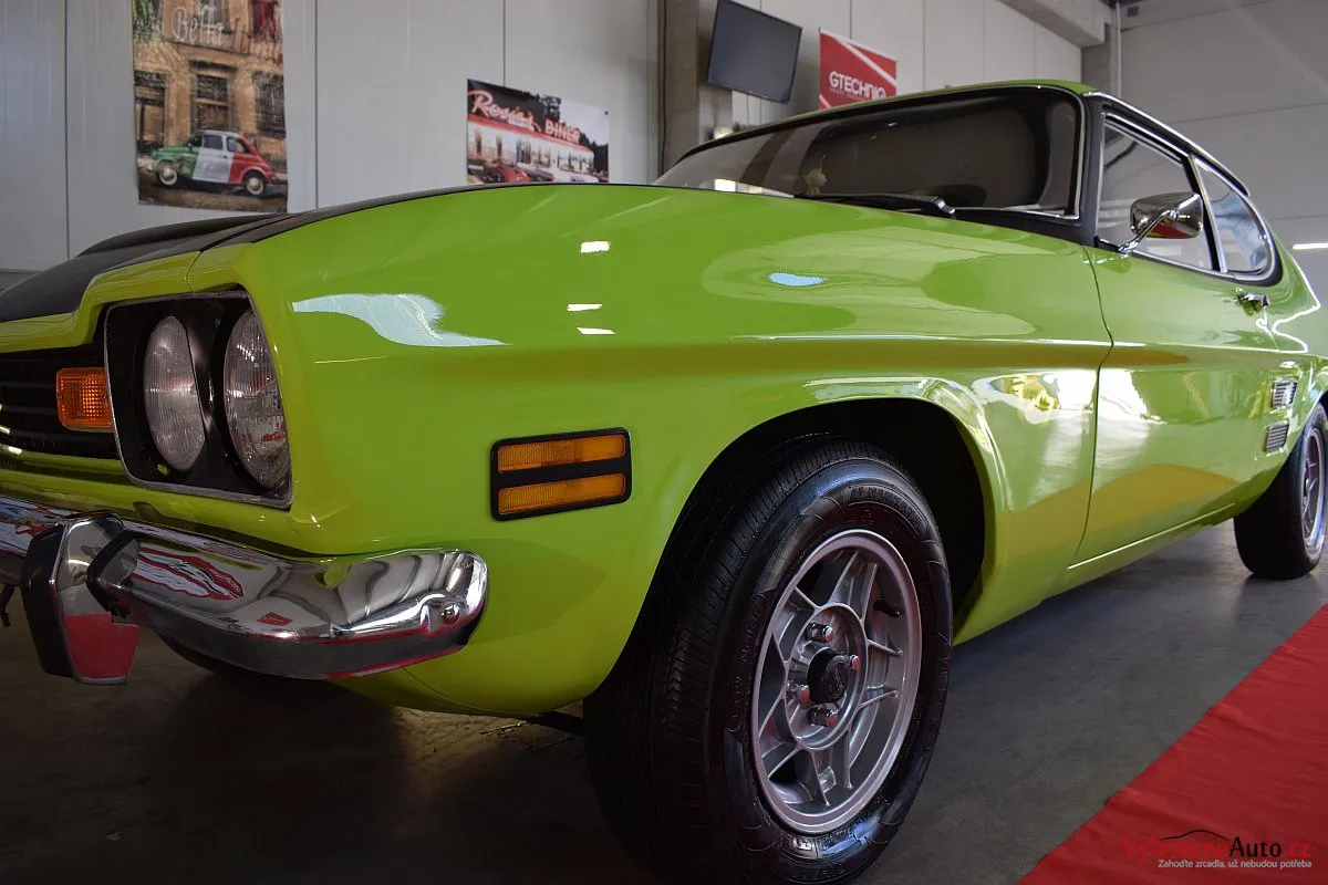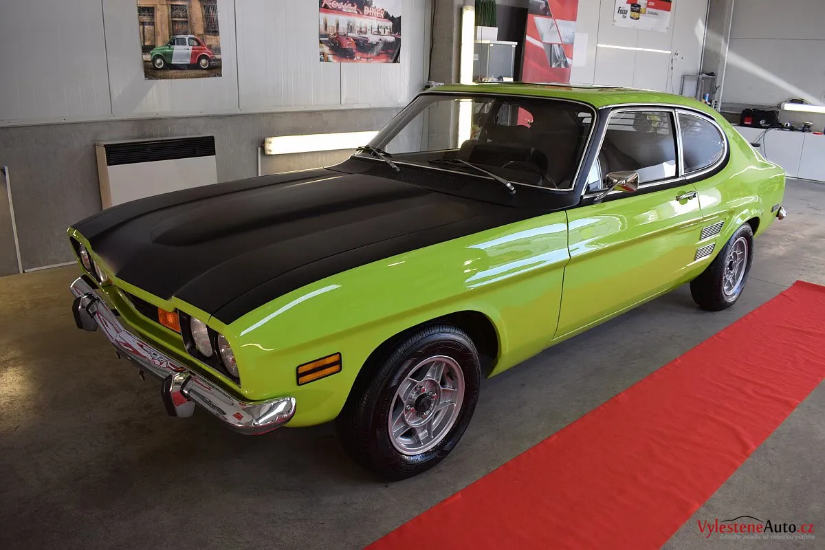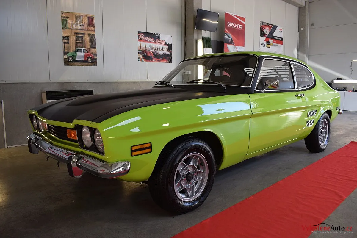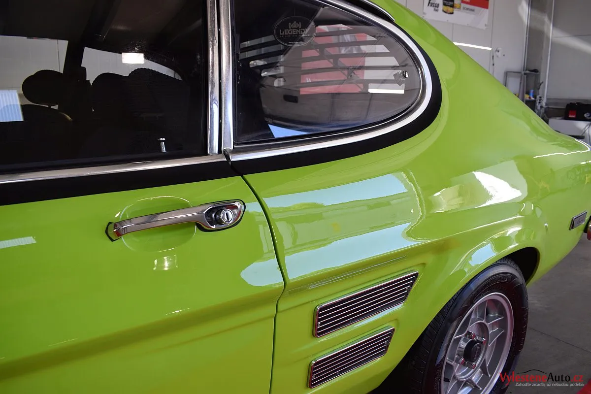 Krásně zelené kultovní kupátko Ford Capri GT s motorem 2.8 V6, dobovými koly ATS a dvěma výfuky. Toto Capri jsme si okamžitě zamilovali - je to opravdu stroj s obrovskou duší!