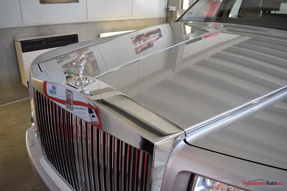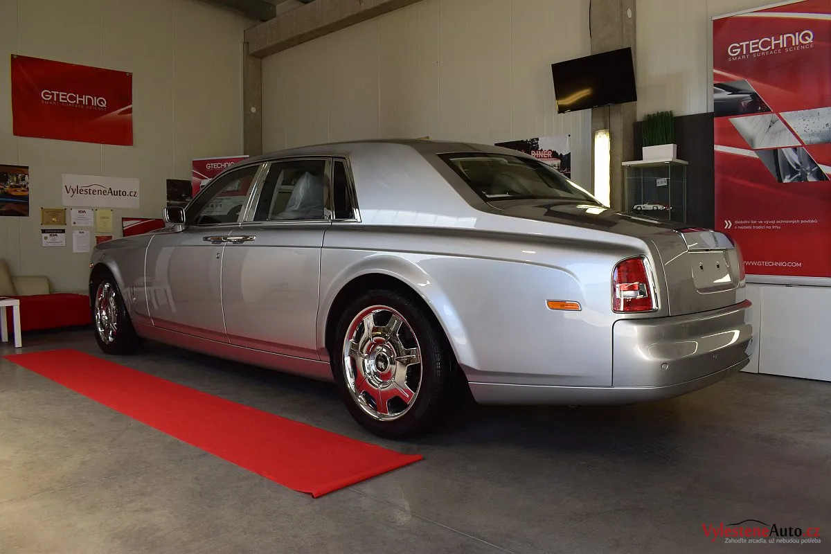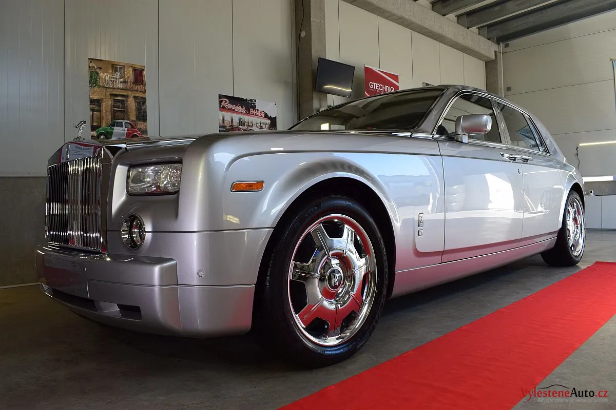 Vrchol automobilové šlechty - těžko uvěřit, že je tomuto noblesnímu korábu již 15 let. Stříbřitý Rolls-Royce Phantom s délkou 6 metrů, sametovým motorem V12 o tradičním obsahu 6.75 litru. Silueta tohoto vozu je fantastická, stejně jako luxusní interiér plný pravého dřeva, voňavé bílé kůže a chromových doplňků.