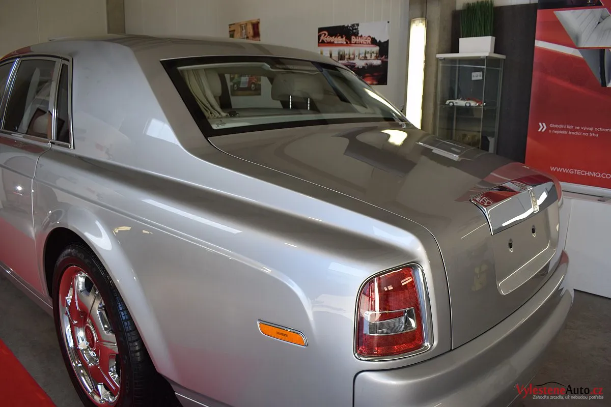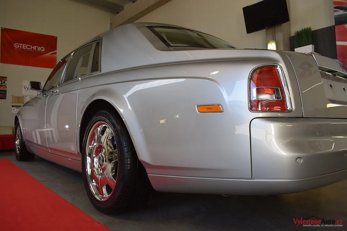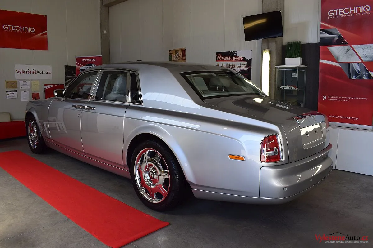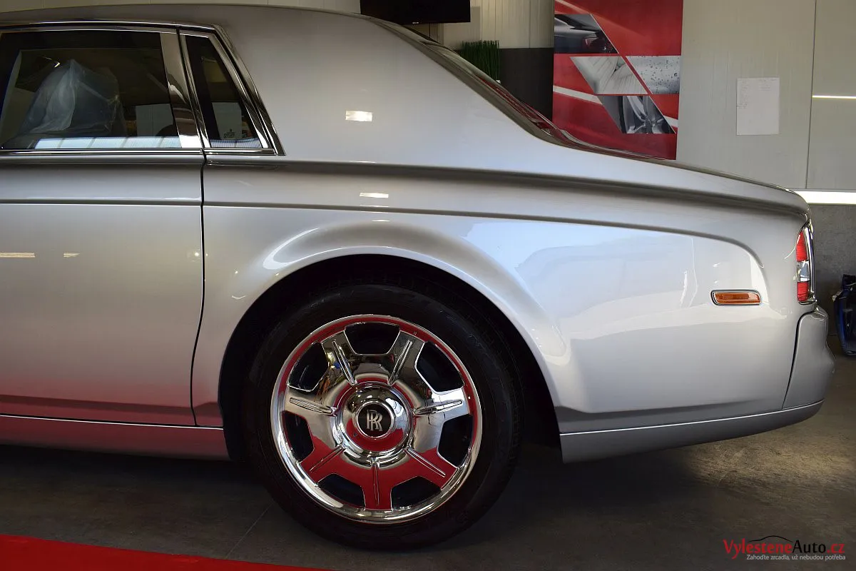 Vrchol automobilové šlechty - těžko uvěřit, že je tomuto noblesnímu korábu již 15 let. Stříbřitý Rolls-Royce Phantom s délkou 6 metrů, sametovým motorem V12 o tradičním obsahu 6.75 litru. Silueta tohoto vozu je fantastická, stejně jako luxusní interiér plný pravého dřeva, voňavé bílé kůže a chromových doplňků.
