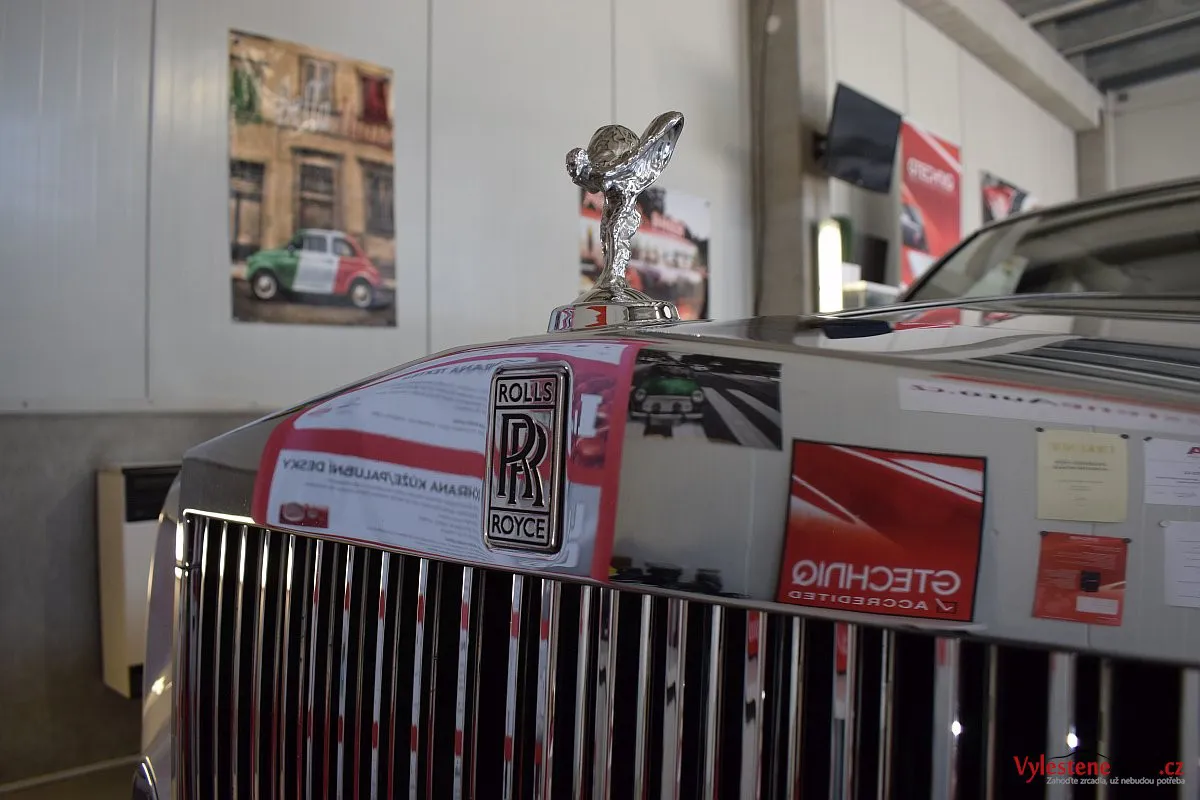 Leštila se také litá kola, všechna skla, zádveří, kryty světlometů, spodní strana kapoty a samozřejmě přední maska s věhlasnou soškou Spirit of Ecstasy.