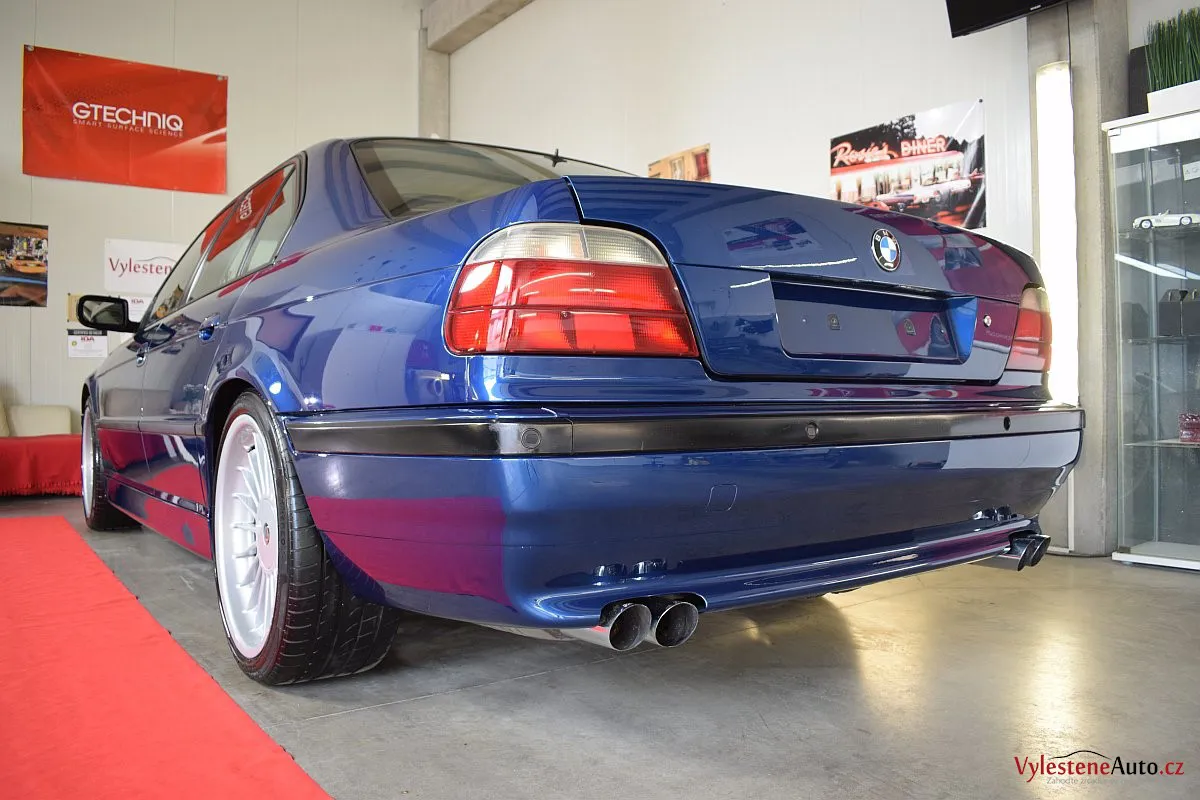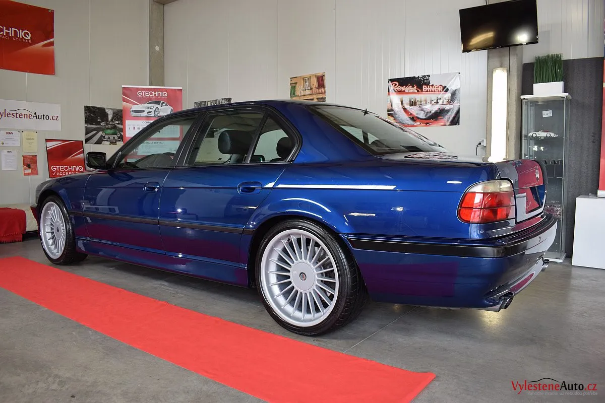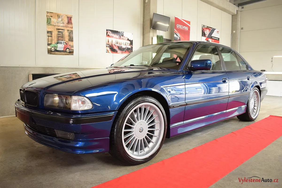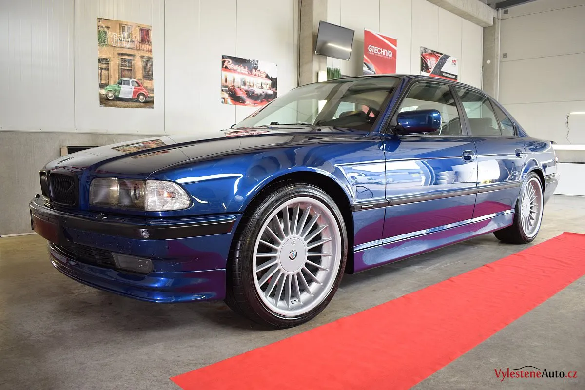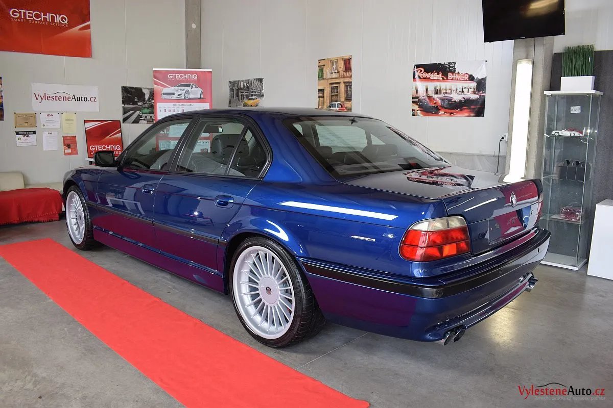 Pomalu již kultovní BMW 740i e38 s doplňky Alpina, motorem V8, manuálem a hlavně fantastickou modrou metalízou.Tahle generace se opravdu povedla - ta štíhlost a jemné linky karoserie prostě nemají chybu.