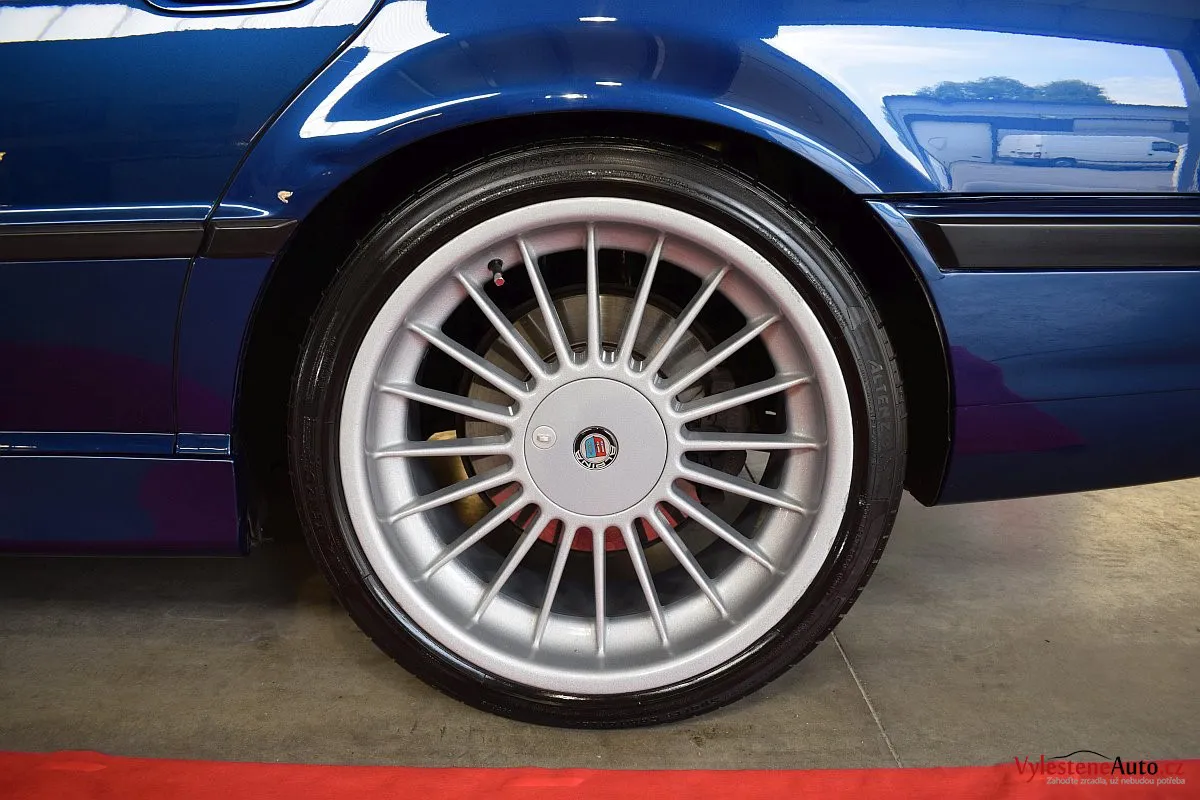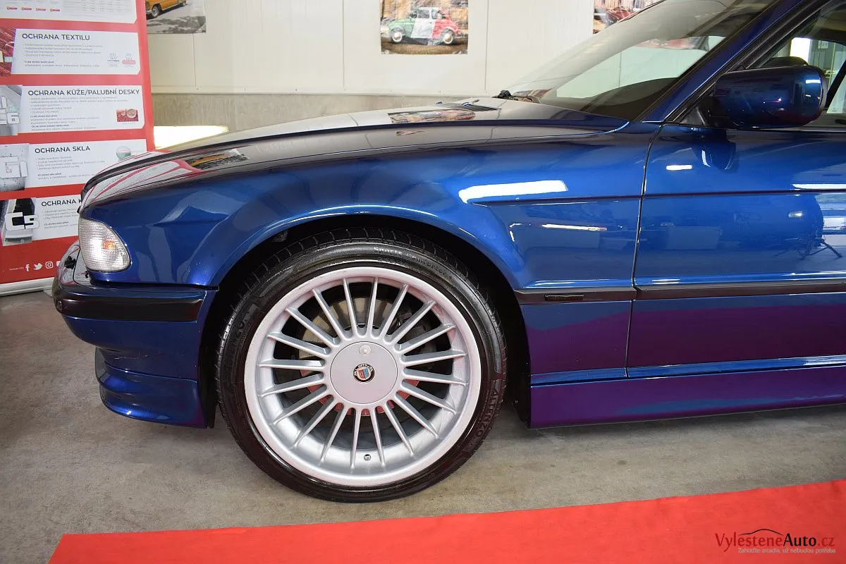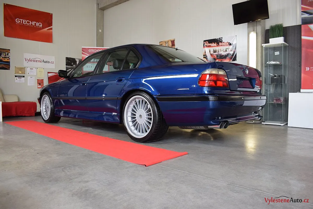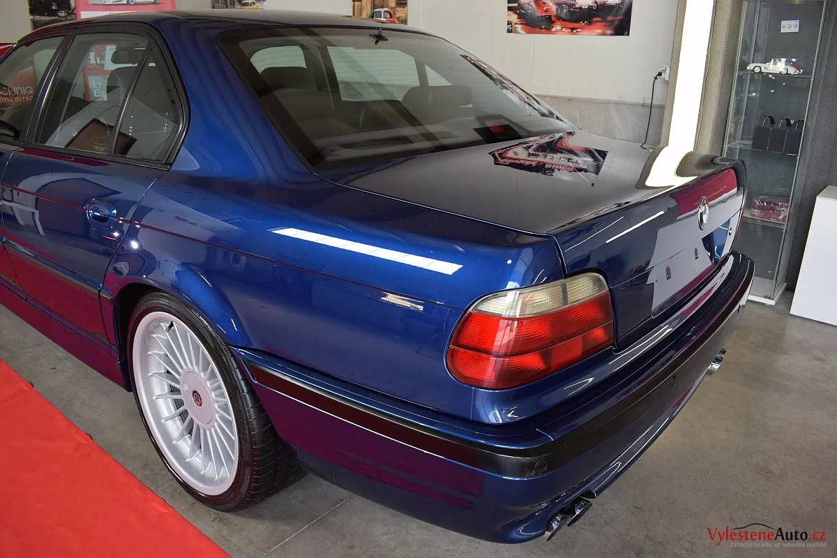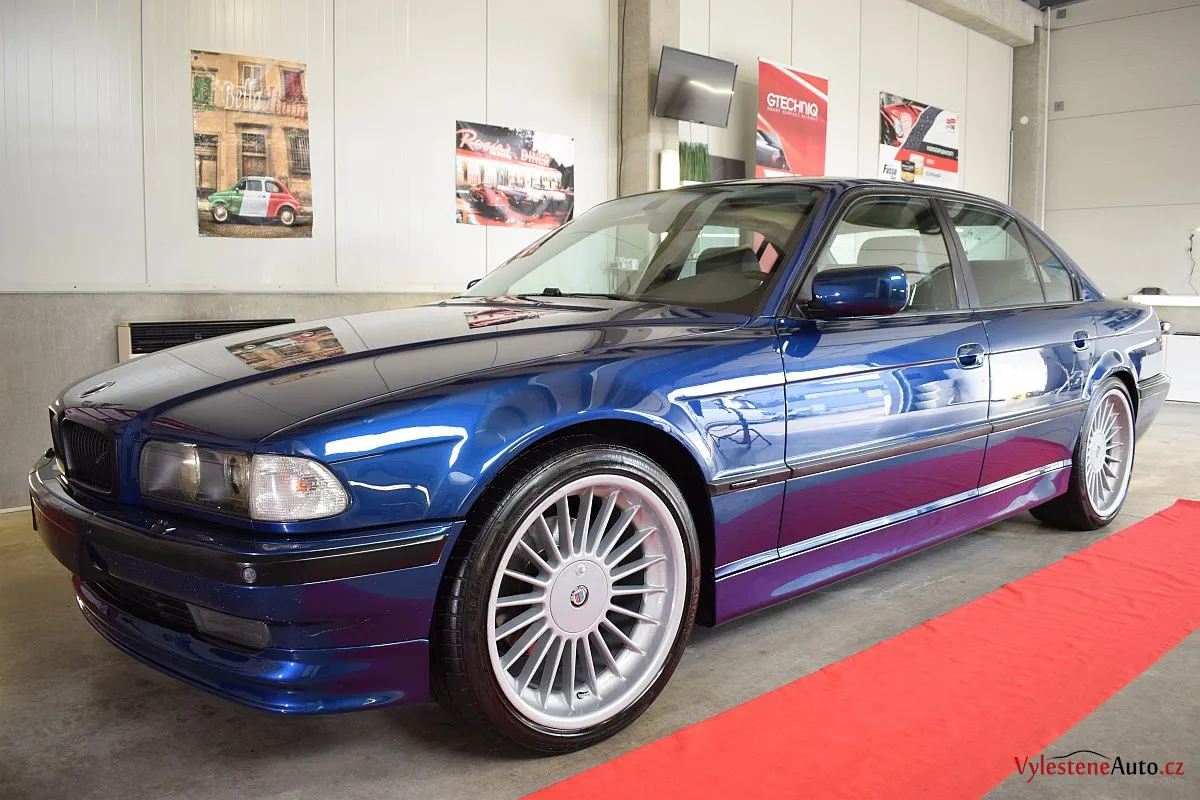 Pomalu již kultovní BMW 740i e38 s doplňky Alpina, motorem V8, manuálem a hlavně fantastickou modrou metalízou.Tahle generace se opravdu povedla - ta štíhlost a jemné linky karoserie prostě nemají chybu.