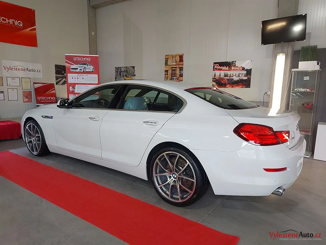 Takhle vypadá elegantní bílé BMW 640d GrandCoupe po dekontaminaci, vícekrokové renovaci laku a ochraně třemi vrstvami špičkového vosku.
