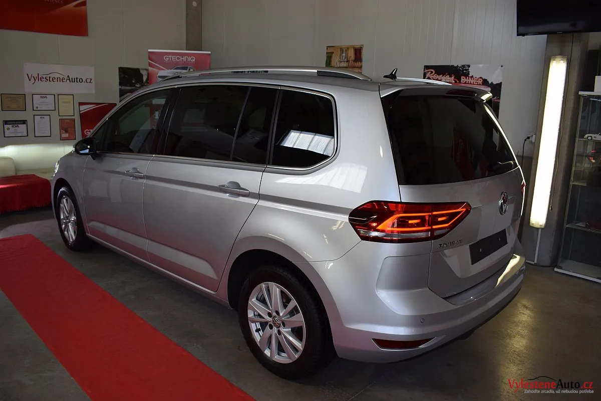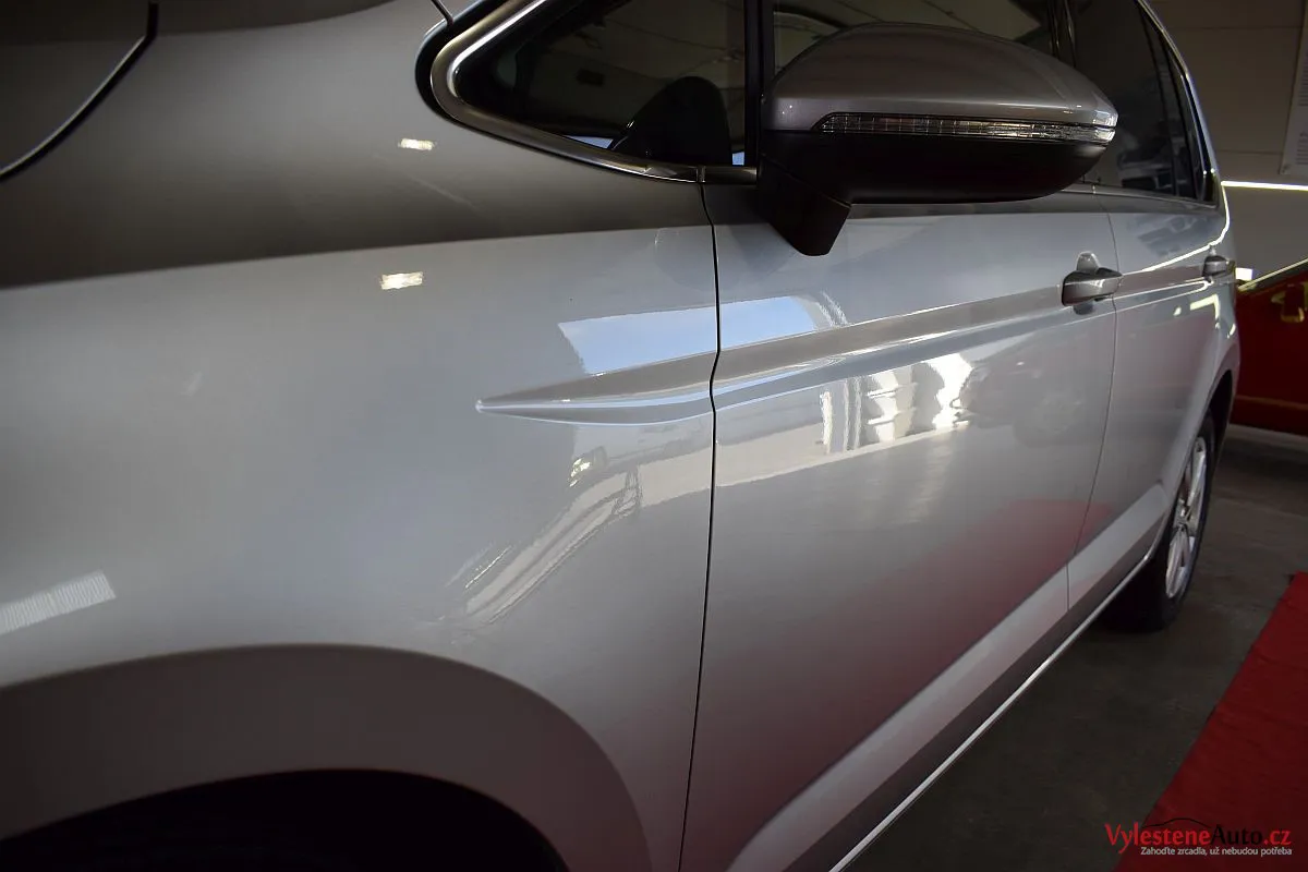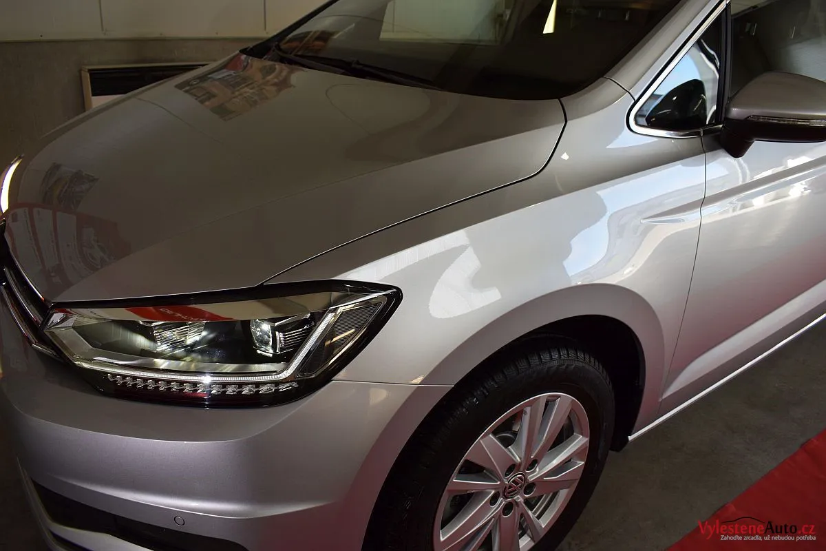 VW Touran, nalakovaný stříbrnou metalízou, který si u nás dopřál kvalitní ochranu laku.