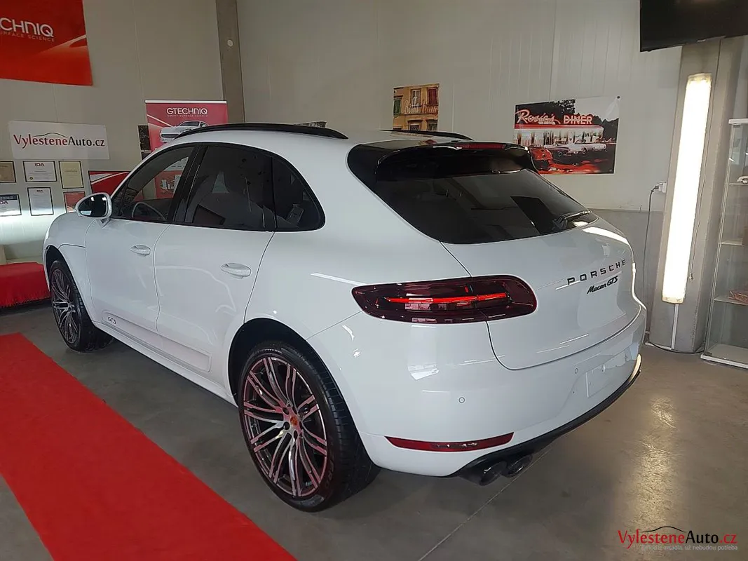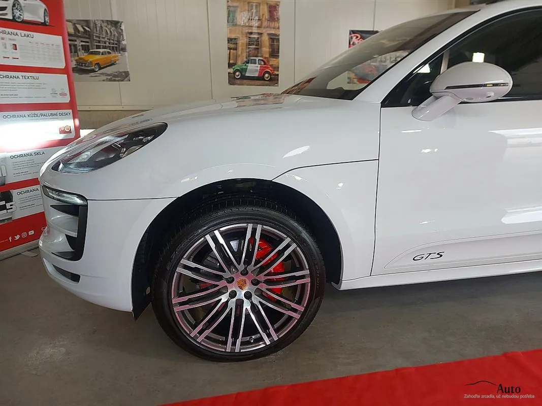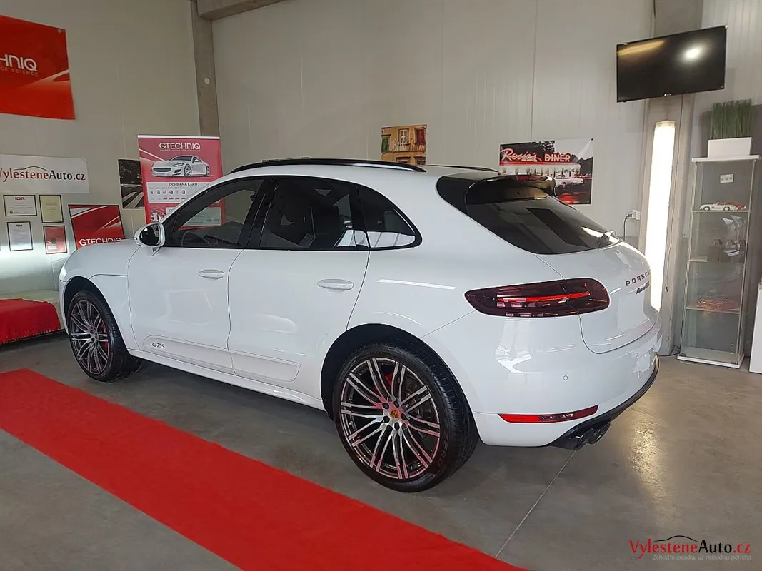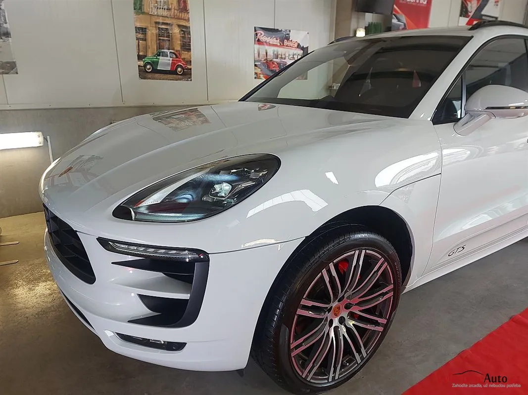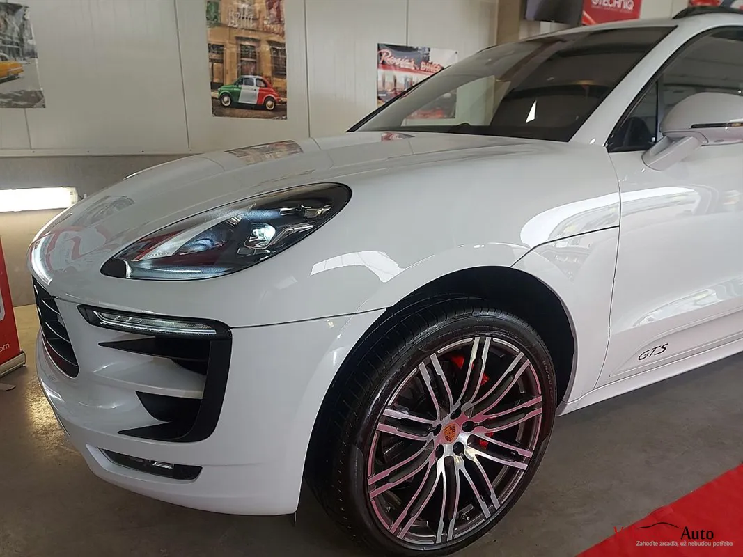 Krásné Porsche Macan GTS, nalakované bílou perleťovou metalízou a poháněné motorem V6 turbo s úžasným zvukem.