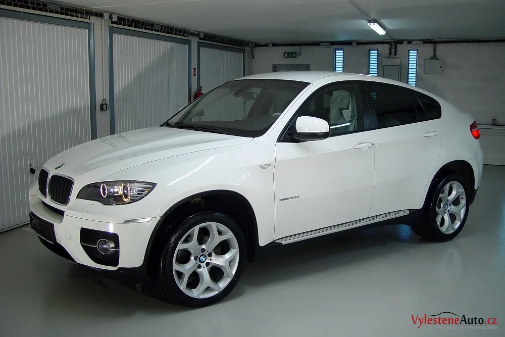 Oblíbené SUV BMW X6 vybavené vznětovým šestiválcem 3.0, pohonem všech kol a automatickou převodovkou. Vnějšek vozu zkrášluje sněhobílá metalíza a originální litá kola. Uvnitř očekávejte luxus - černé kožené čalounění, dřevěné dekory a kompletní elektronická výbava.