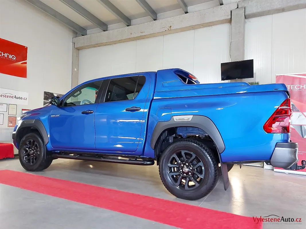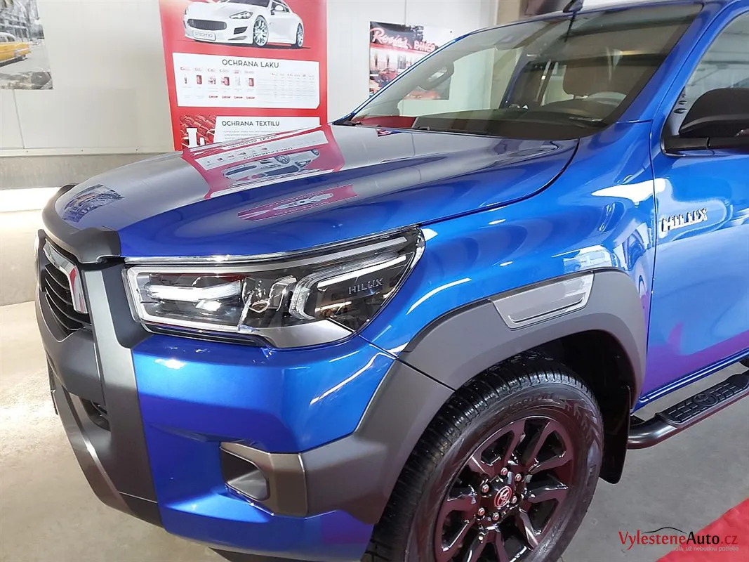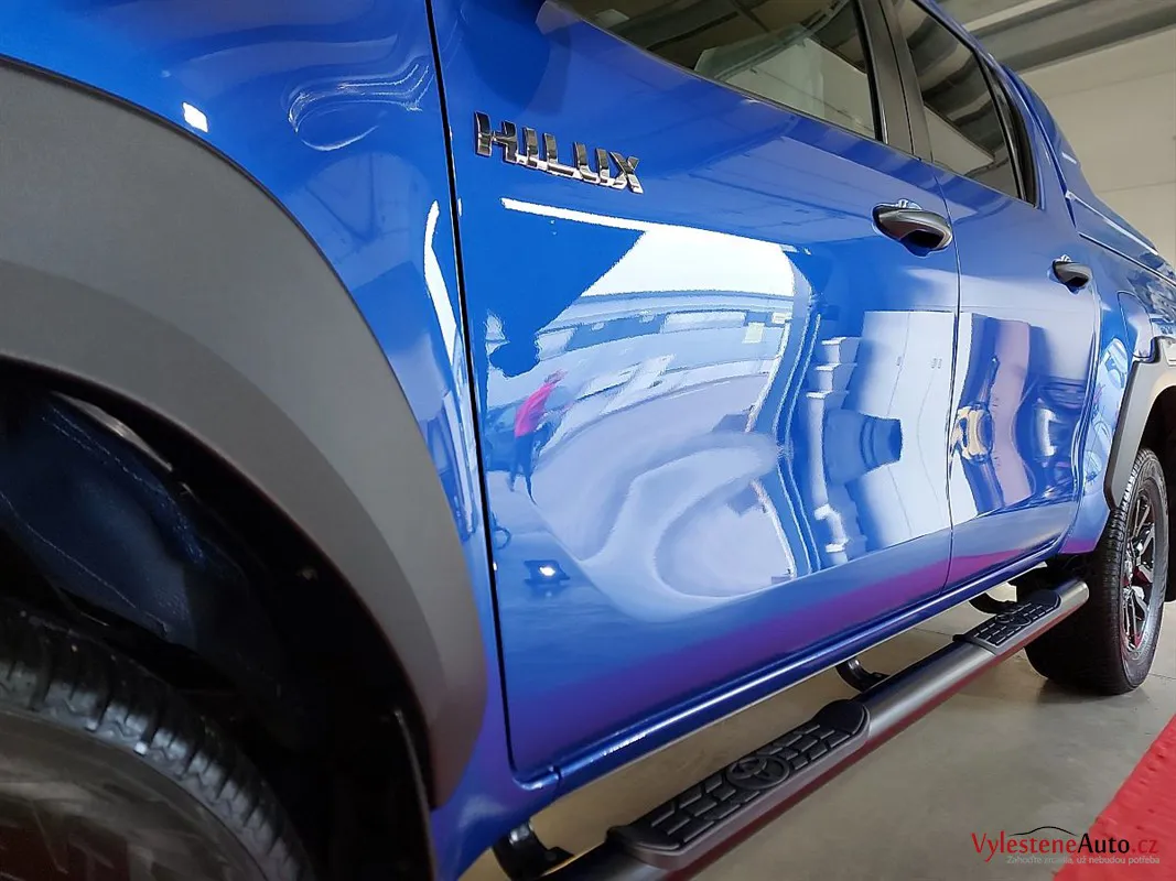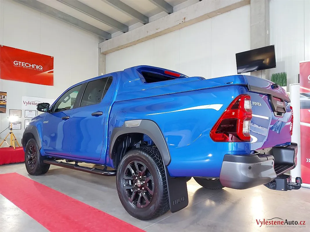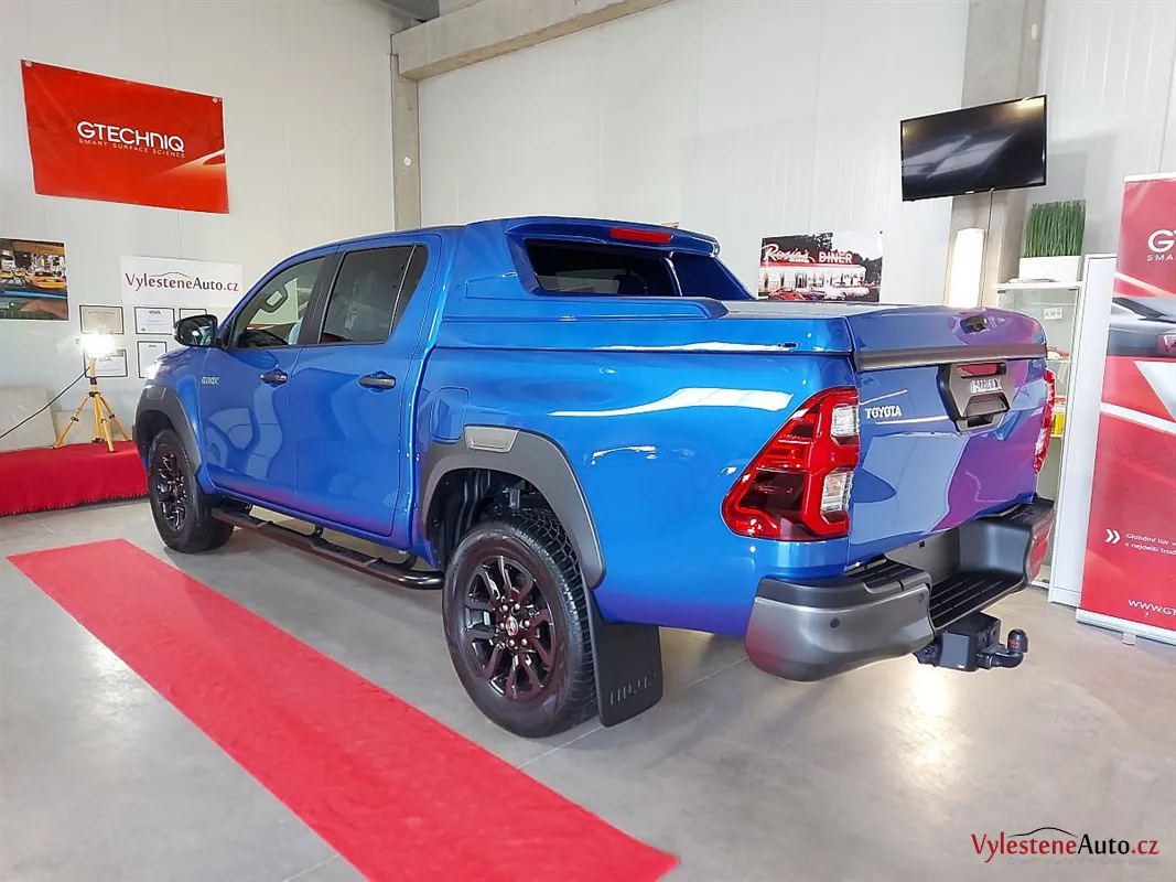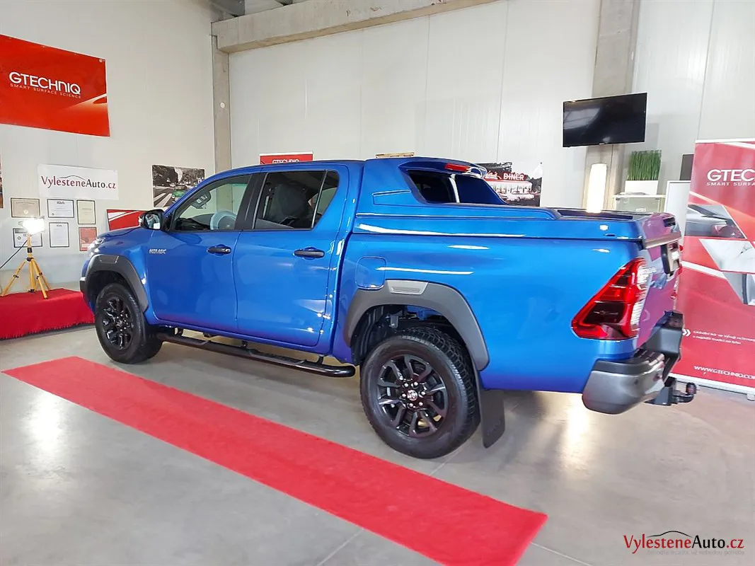 Opravdu hodně modrá Toyota Hilux po pečlivé dekontaminaci, vícekrokové renovaci laku a ochraně špičkovou kompozitní nanokeramikou Gtechniq, určenou pouze pro certifikovaná detailingová centra.
